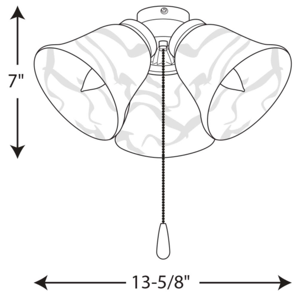 Progress Lighting-P2642-30WB-Collection: Airpro, Material: Steel, Finish Color: White, Lamping Type: LED, Cri: 90, Color Temperature: 3000 Kelvin, Wet Location: Dry Rated, Desc: Three-light universal fan light kit features alabaster style glass shades beautiful in design. Brushed Nickel finish corresponds with a Chrome pull-chain and maple fob. Universal style for use with fans that accept an accessory light comes with quick-connect wiring. Includes three 3000K, 800 lumen each (source), Title 24 certified LED bulbs. Shade Included: Yes / Shade Dimensions: 5.38 x 4.88 . ,-AirPro – 3 Light Ceiling Fan Light Kit in Transitional style – 13.63 Inches wide by 7 Inches high-White Finish