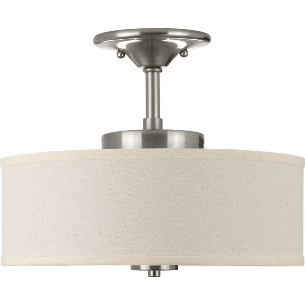 Progress Lighting Inspire 1-Light LED Semi-Flush Mount, Brushed Nickel, Linen Shade