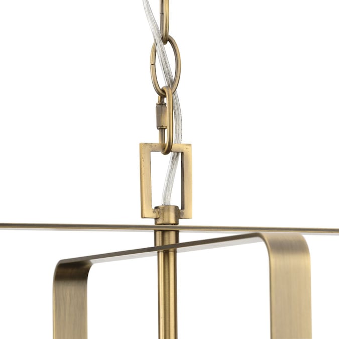 The McColl Collection Foyer Light delivers an ethereal quality expressed by its rectangular silhouette and open cage design. Glowing with ambient illumination, McColl adds an ethereal presence to hallways and foyers in transitional settings. Its softly rounded form is coated in a mellow vintage brass finish.