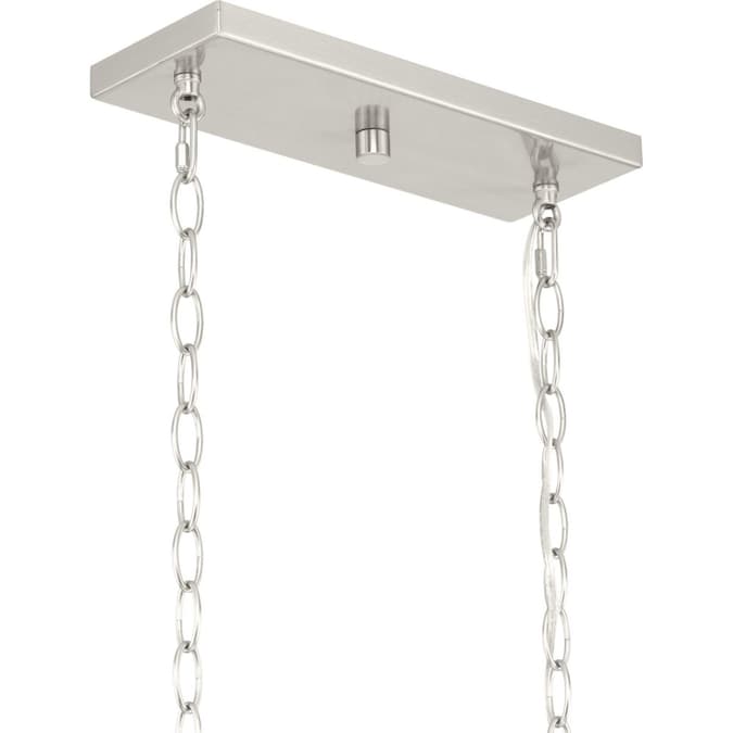 The McColl Collection Linear Chandelier delivers an ethereal quality expressed by its linear silhouette and open cage design. Glowing with ambient illumination, McColl adds an ethereal presence to dining room tables and kitchen islands in transitional settings. Its softly rounded form is coated in a subtle brushed nickel finish.