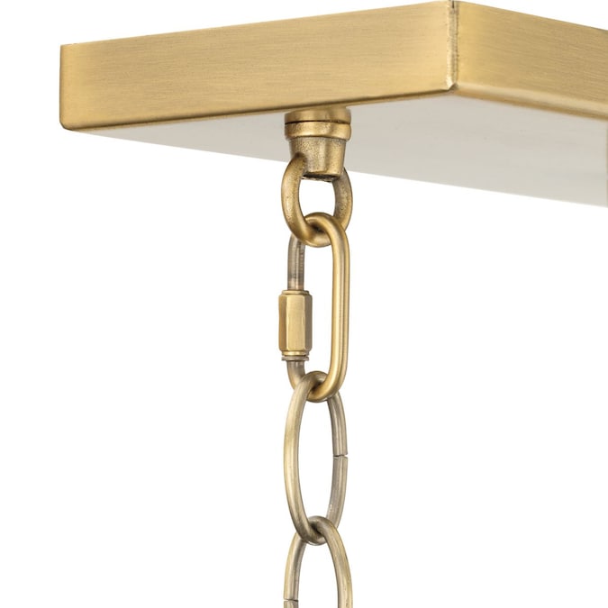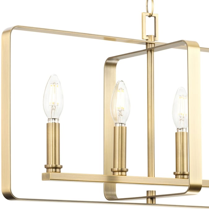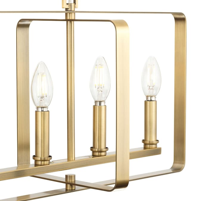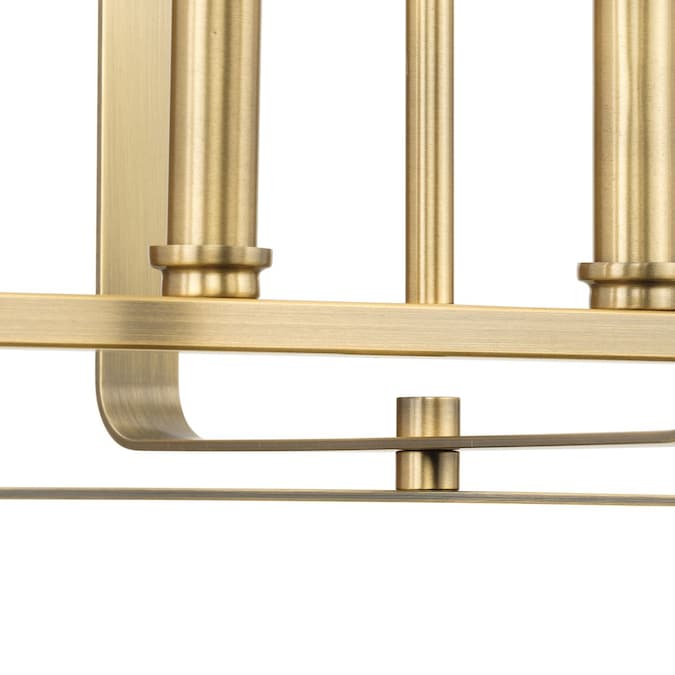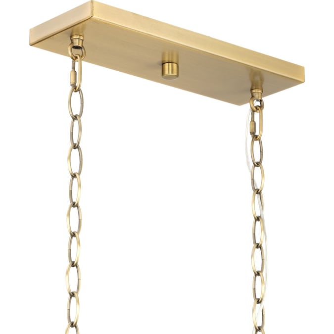 The McColl Collection Linear Chandelier delivers an ethereal quality expressed by its linear silhouette and open cage design. Glowing with ambient illumination, McColl adds an ethereal presence to dining room tables and kitchen islands in transitional settings. Its softly rounded form is coated in a mellow vintage brass finish.