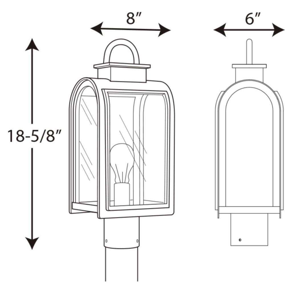 Progress Lighting-P6431-108-Collection: Refuge, Material: Porcelain, Finish Color: Oil Rubbed Bronze, Width: 8″, Height: 18.63″, Length: 8″, Depth: 6″, Fitter Size: 3 Inch”, Lamping Type: Incandescent, Number Of Bulbs: 1, Wattage: 100 Watts, Moisture Rating: Wet Rated, Desc: One-light post lantern in a Cape Cod-inspired frame pays homage to a classic nautical style. Light output and geometric forms offer visual interest to outdoor exteriors. Clear glass windows provides a beautiful effect when illuminated. Back Plate Height: 3.00 / Back Plate Width: 3.31 / Shade Included: Yes / Shade Dimensions: 6.56 x 10.81 . ,-Refuge – Outdoor Light – 1 Light in Coastal style – 8 Inches wide by 18.63 Inches high