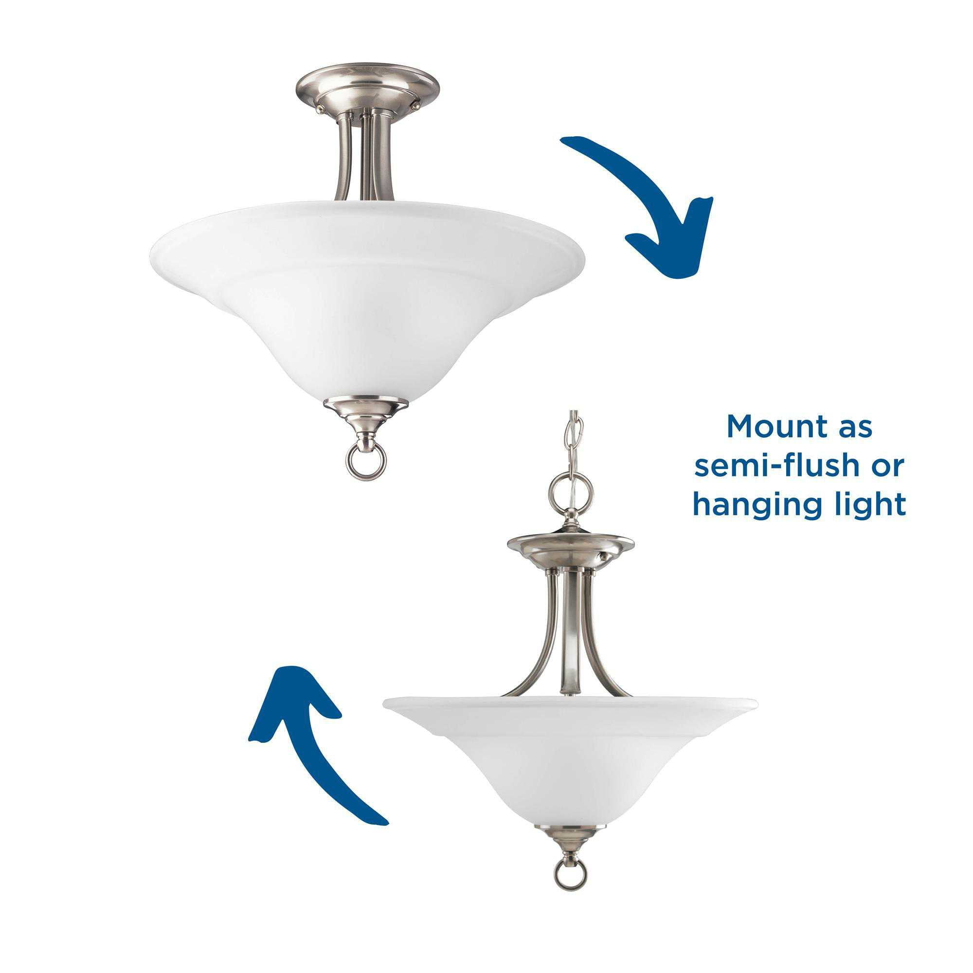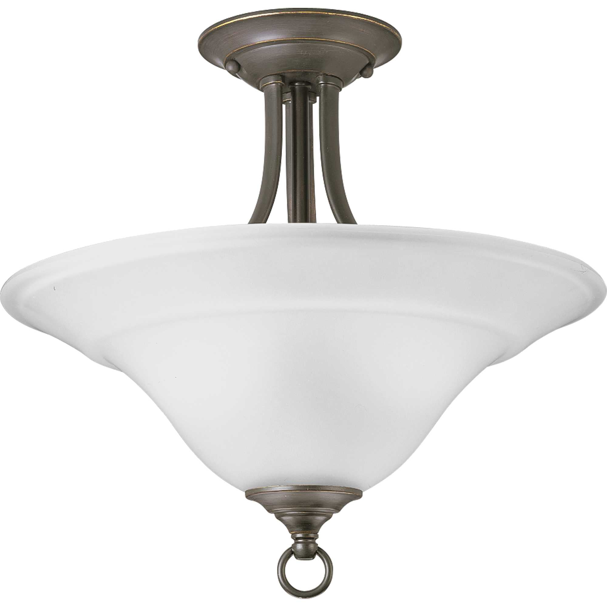 Progress Lighting-P3473-20-Collection: Trinity, Material: Steel, Finish Color: Antique Bronze, Width: 16″, Height: 15″, Lamping Type: Incandescent, Number Of Bulbs: 2, Wattage: 100 Watts, Moisture Rating: Dry Rated, Desc: Two-light semi-flush close-to-ceiling fixture featuring soft angles, curving lines and etched glass shades. Gracefully exotic, the Trinity Collection offers classic sophistication for transitional interiors. Sculptural forms of metal and glass are enhanced by a classic finish. This transitional style can transform a room or your whole home with its charming versatility. Brushed Nickel finish. Canopy Included: Yes / Canopy Diameter: 5.5 / Chain Length: 72.00 / Shade Included: Yes / Shade Dimensions: 18 x 6.25 . ,-Trinity – Close-to-Ceiling Light – 2 Light in Transitional and Traditional style – 16 Inches wide by 15 Inches high-Antique Bronze Finish