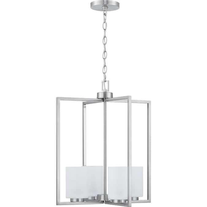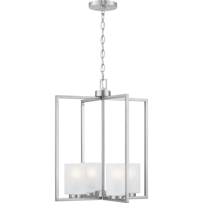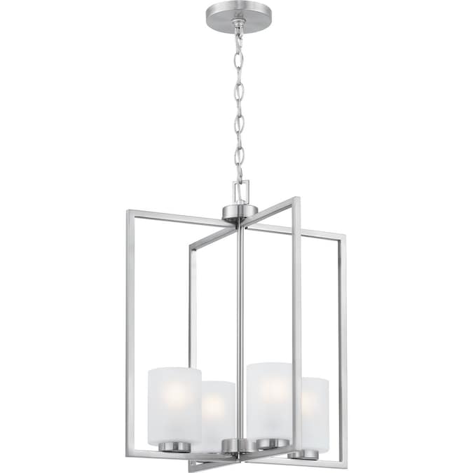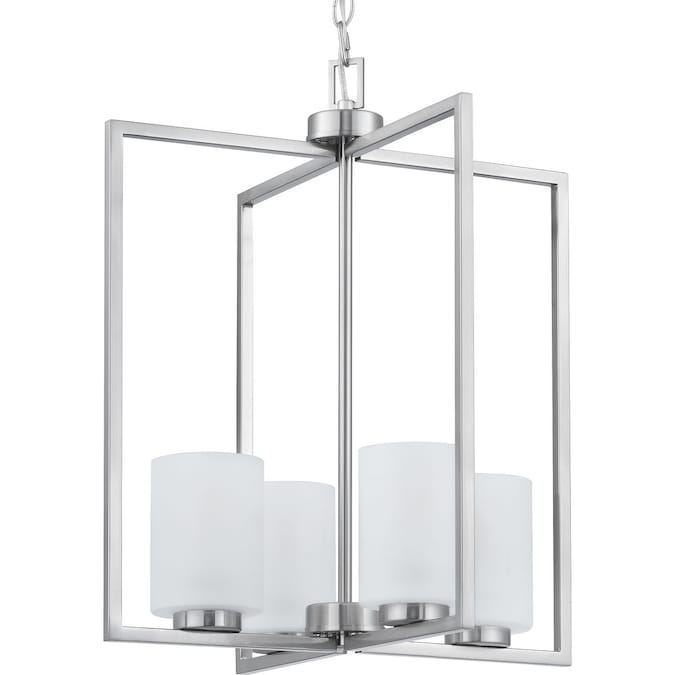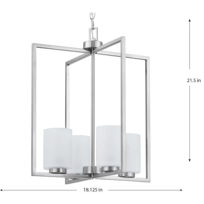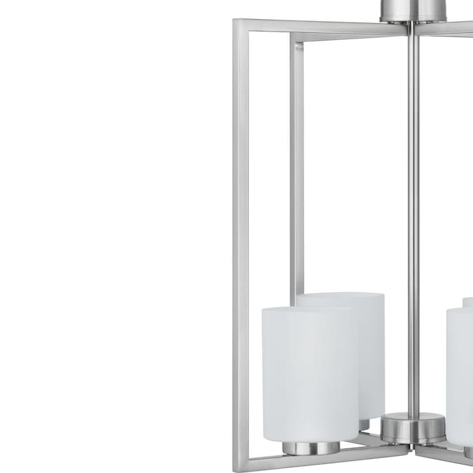 A clean modern design distinguishes the Rexington Collection. The pendant features a clean square profile elongated frame displays four etched glass shades perched inside to softly illuminate the surrounding space. A brushed nickel finish adds a timeless touch.