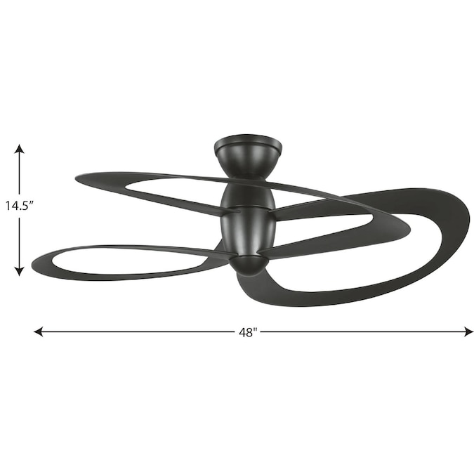 Create a striking focal point with the Willacy Collection 3-Blade Black 48-Inch DC Motor Contemporary Ceiling Fan. Swirling, ribbon-like blades and a gleaming center hub are coated in a classic matte black finish. The blades are crafted from a strong, all-weathered ABS material to prevent warping. Includes Wi-Fi smart control that is compatible with most tablets, smartphones, or voice assistants. A full-function 6-speed remote control with batteries is also included so you can adjust full-range dimming and fan speed without breaking a sweat. The ceiling fan’s flowing design is ideal for any living room in contemporary style settings. It’s time to breathe new life into the mundane every day with timeless and truly transformative lighting. Make your purchase today to begin your journey to a whole new lighting experience. Progress Lighting products are designed for exceptional quality, reliability, and functionality.