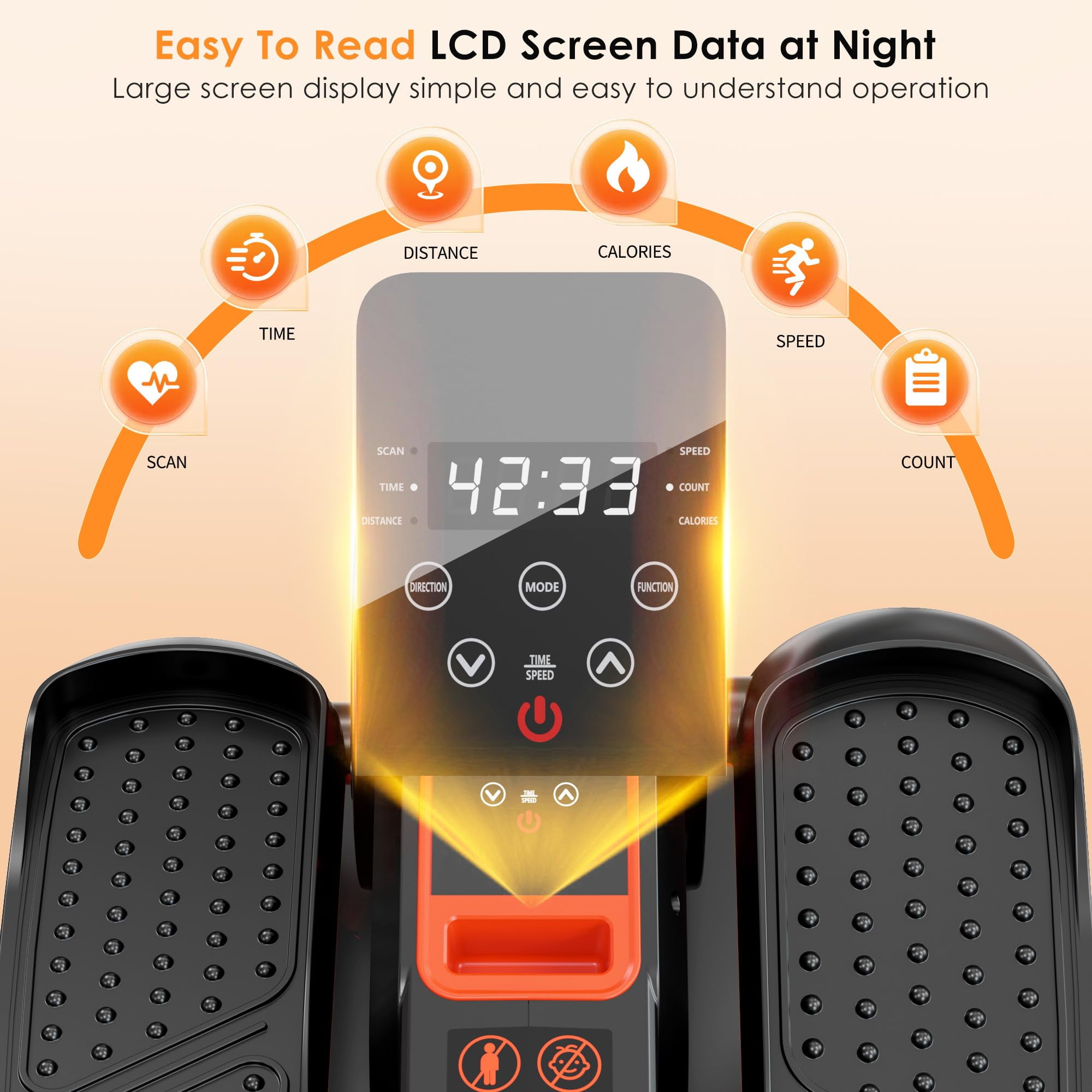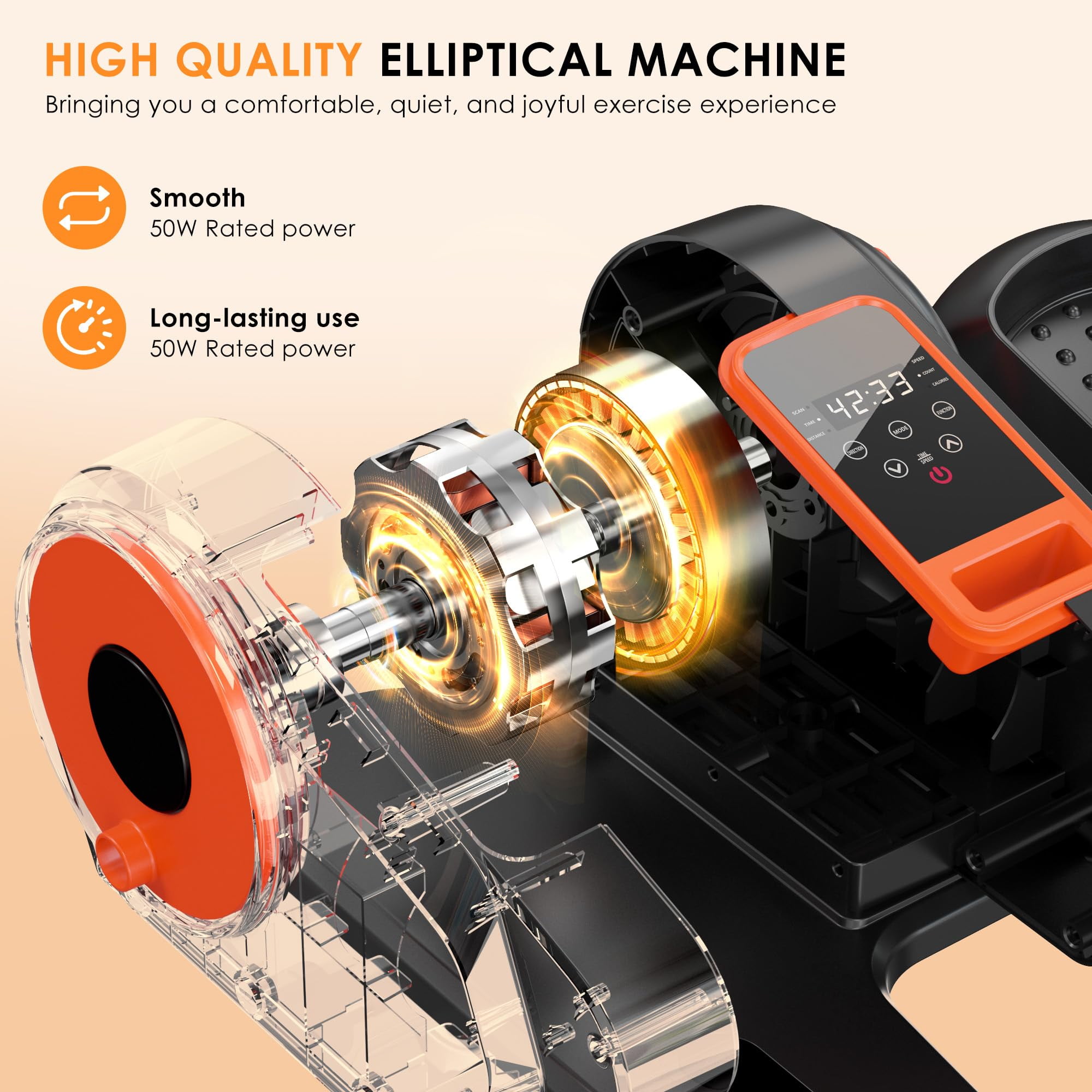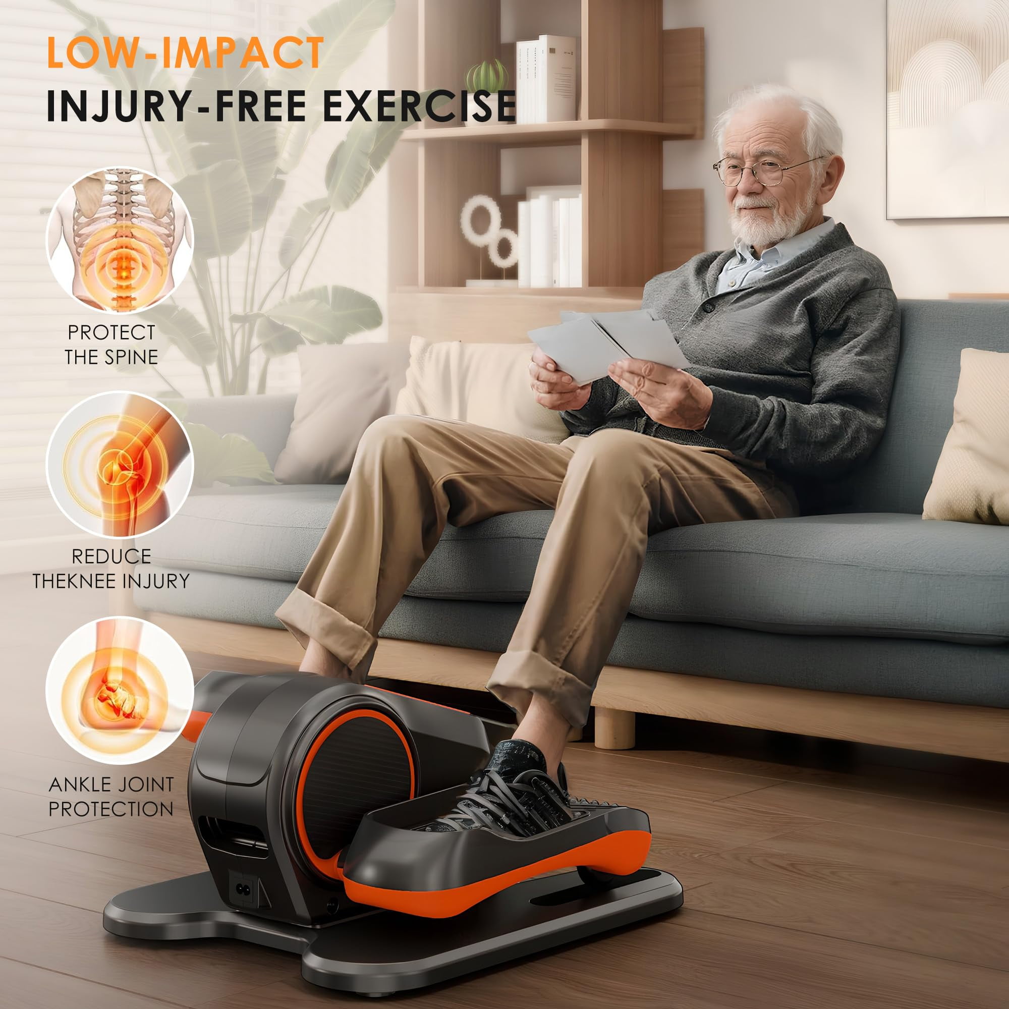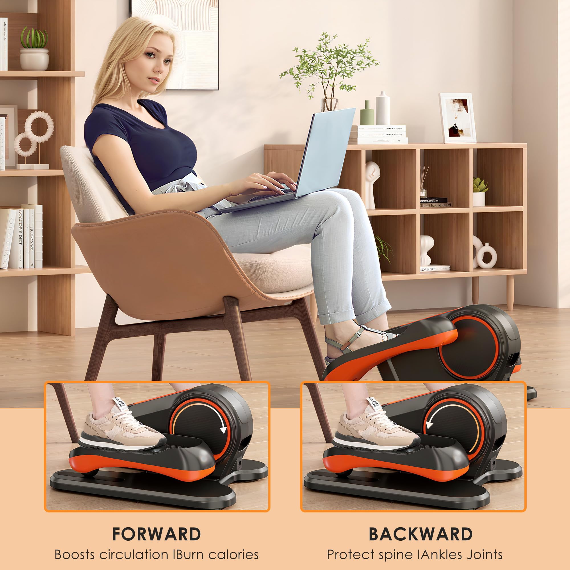 PROHIKER Under Desk Elliptical is a compact and versatile exercise equipment designed to be used while in your home, office, apartment, rehabilitation center, etc. It provides a low impact aerobic exercise method by mimicking the movement of walking or running in place, with a smooth and scientific elliptical motion trajectory. This ellipse leg exerciser features adjustable speed levels to accommodate different fitness levels and goals, and they are compact enough to fit under desks, making them ideal for use in offices or homes where space is limited. Our elliptical exercise machine offers a convenient way to incorporate physical activity into a sedentary lifestyle, promoting circulation, calorie burning, and overall fitness, while also being able to work or engage in other activities.