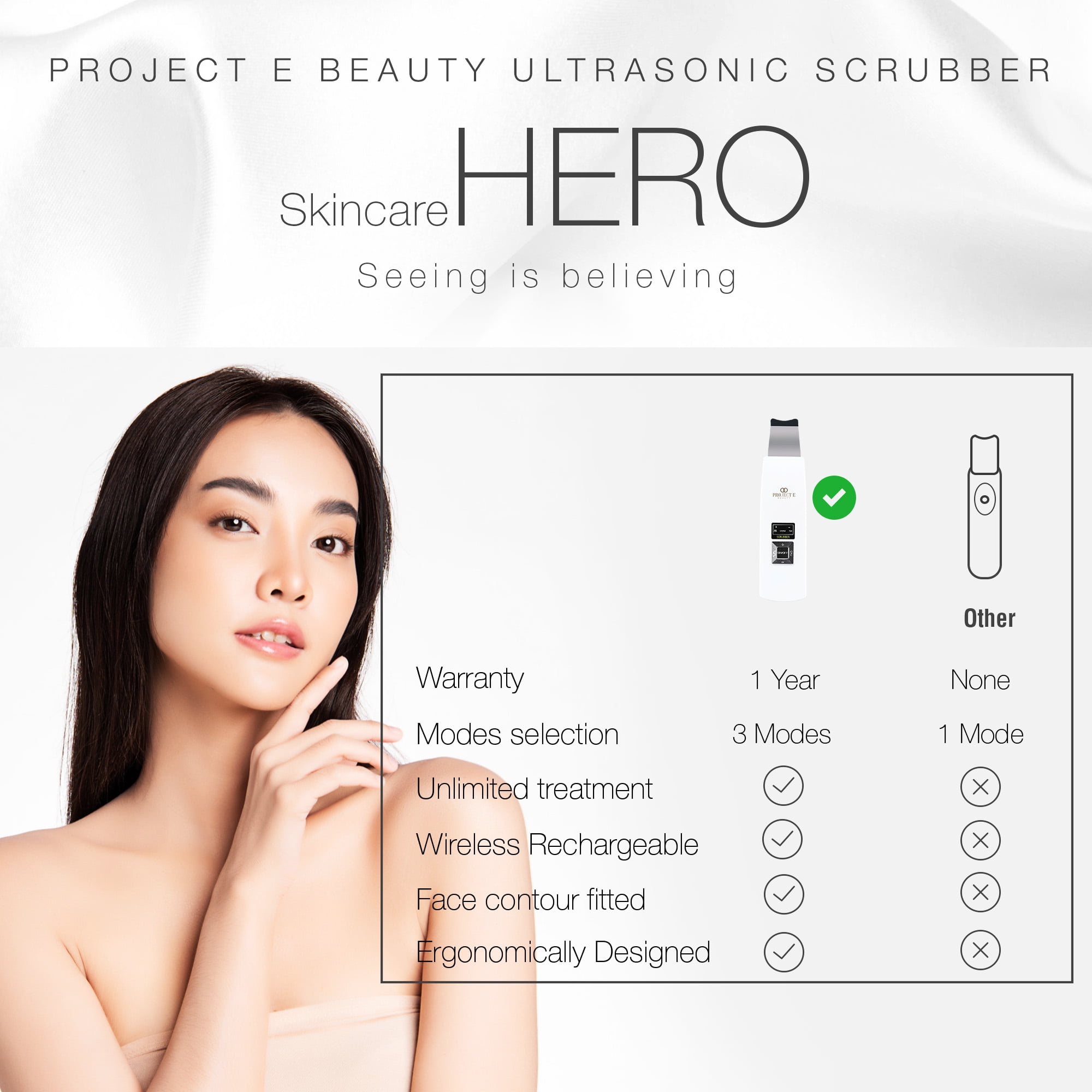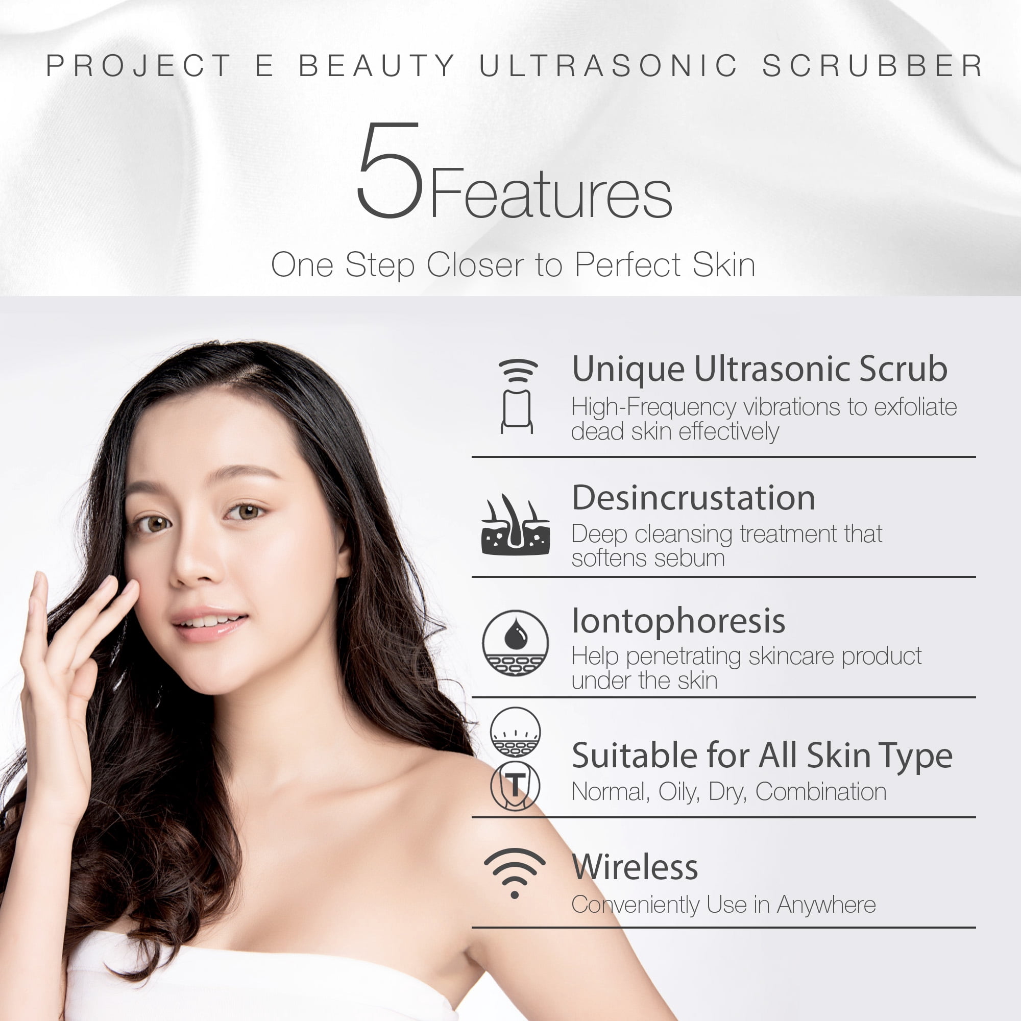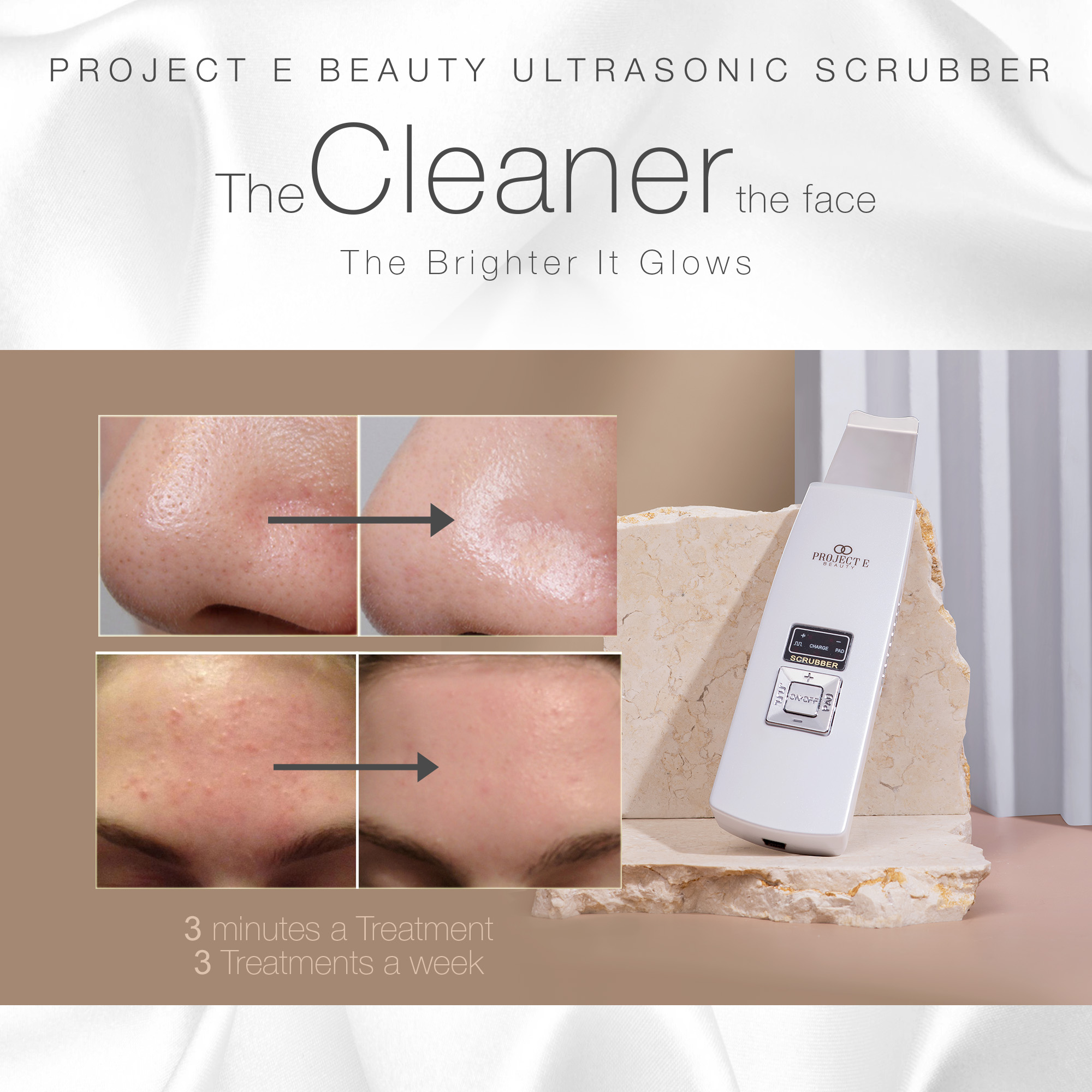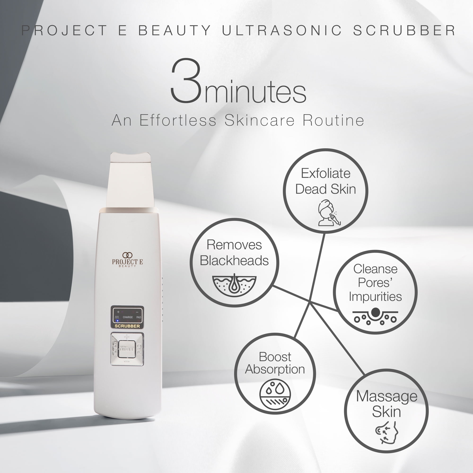 Project E Beauty UltraGlow | Ultrasonic Skin Scrubber | for Gentle Exfoliation | Blackhead Removal