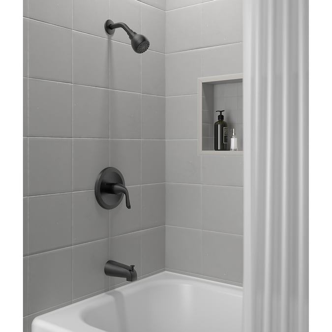 The Dover 1 Handle Tub and Shower Faucet by Project Source offers a versatile transitional design that complements any bathroom décor and includes sink faucets, a tub and shower trim faucet, and a roman tub faucet. The ceramic disc valves assure smooth handle operation and drip-free performance. The Versitech shower valve features superior pressure balance technology to prevent scalding and solid brass construction for maximum reliability. The product also comes with a shower plug for shower-only installations for application customization.