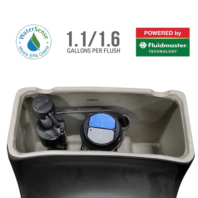 - Dual-flush with high performance 1.1/1.6 GPF powered by Fluidmaster