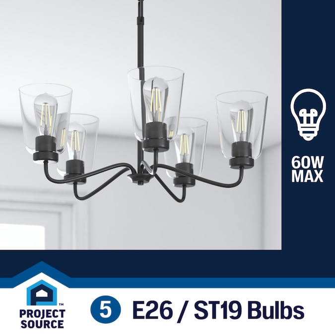 - Uses 5 x E26, 60-watt max bulbs (sold separately)