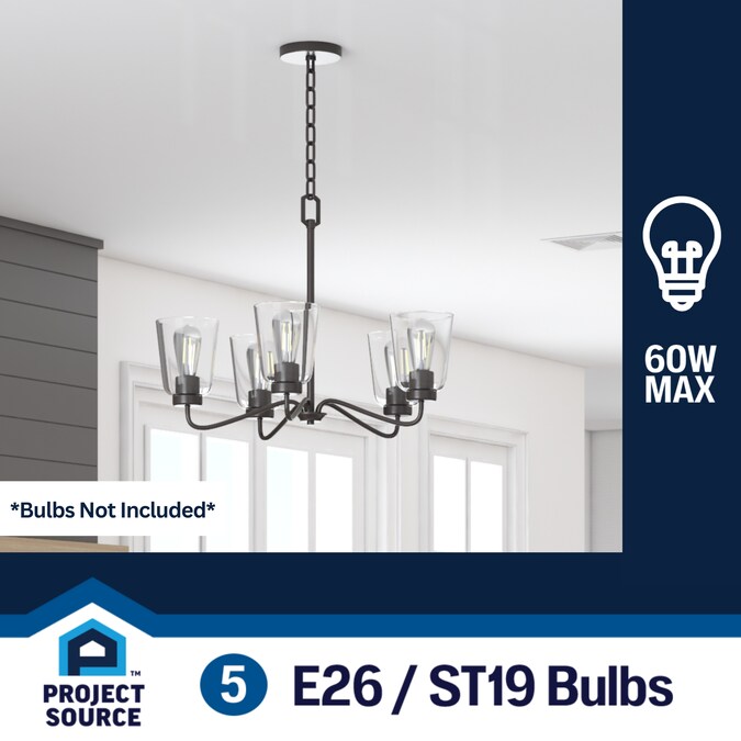 - Uses 5 x E26, 60-watt max bulbs (sold separately)