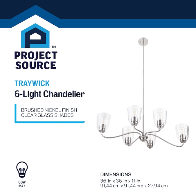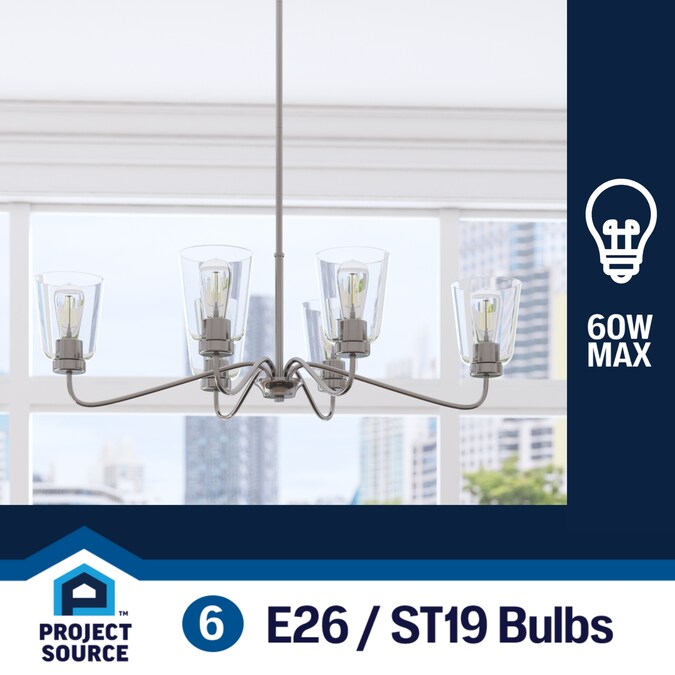 - Uses 6 x E26, 60-watt max bulbs (sold separately)