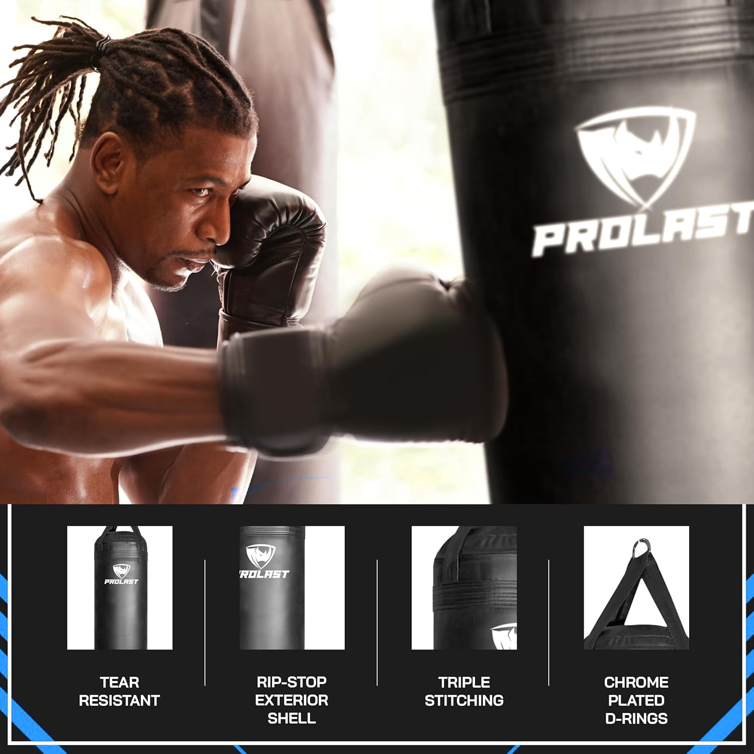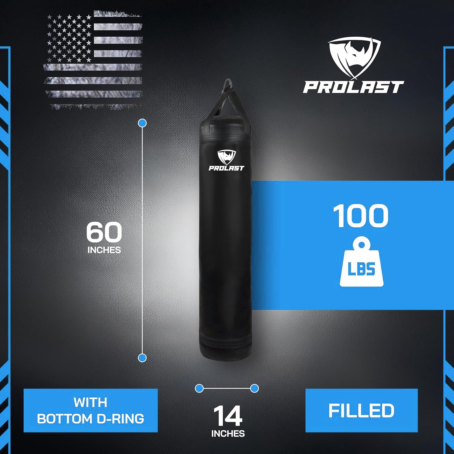 PROLAST Unfilled Heavy Punching Bag, Black Designed for extreme training and workouts Made with PROLAST RIP-PROOF Technology for superior durability Unfilled design for customizable weight 5FT in length, suitable for various training styles No chains required for easy setup and use