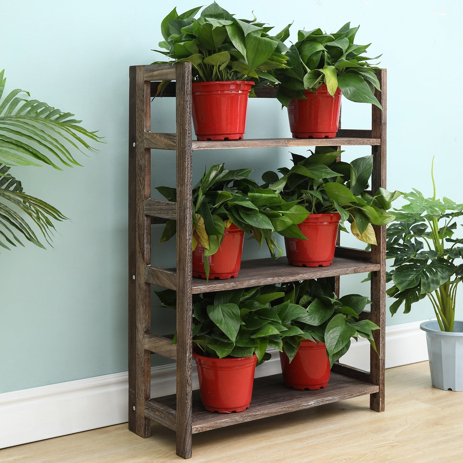 3 Tiers Product Dimensions24″ W x 10″ D x 34.5″ H 4 Tiers Product Dimensions24″ W x 10″ D x 48″ H DurableConstructed from high quality Paulownia Wood. It is build for daily use.