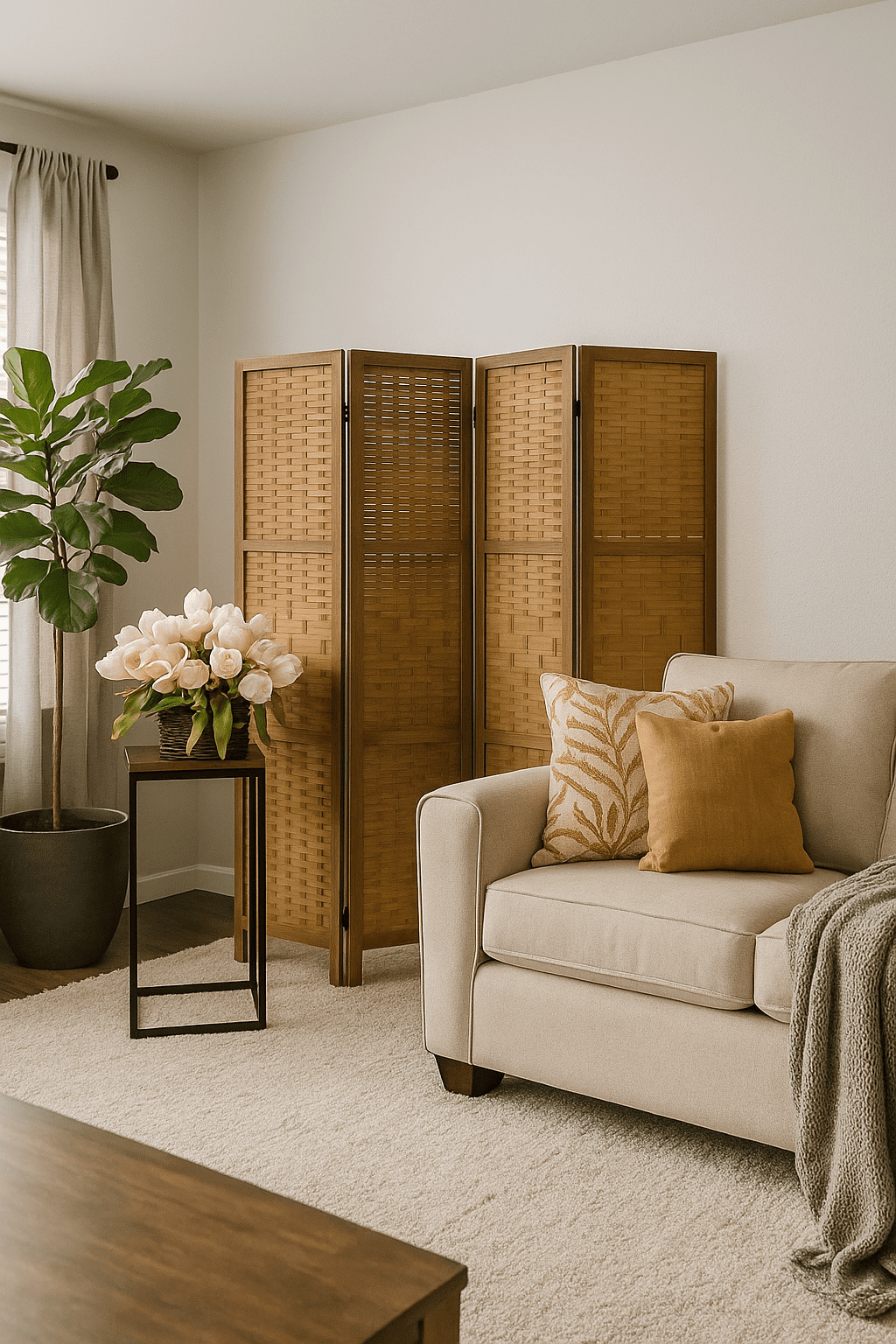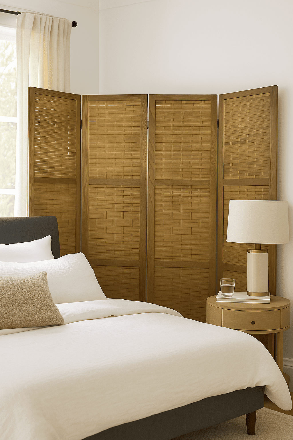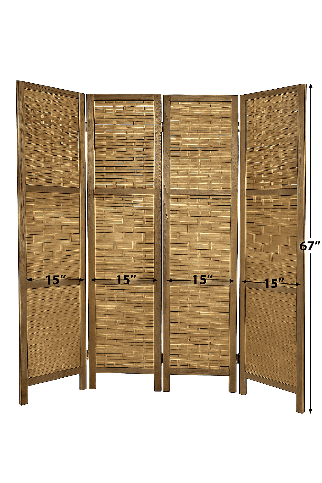 Dimensions (Max Extends) 60″ W x 1″ D x 67″ H, Dimensions (Per Panel) 15″ W x 67″ H It serves as a room divider, decorating partition, privacy separator, interior partition for home or business A decorating piece of furniture by it self, perfect for a home that needs to create a separate space for instant or permanente privacy Can be easily folded away to store when not in use