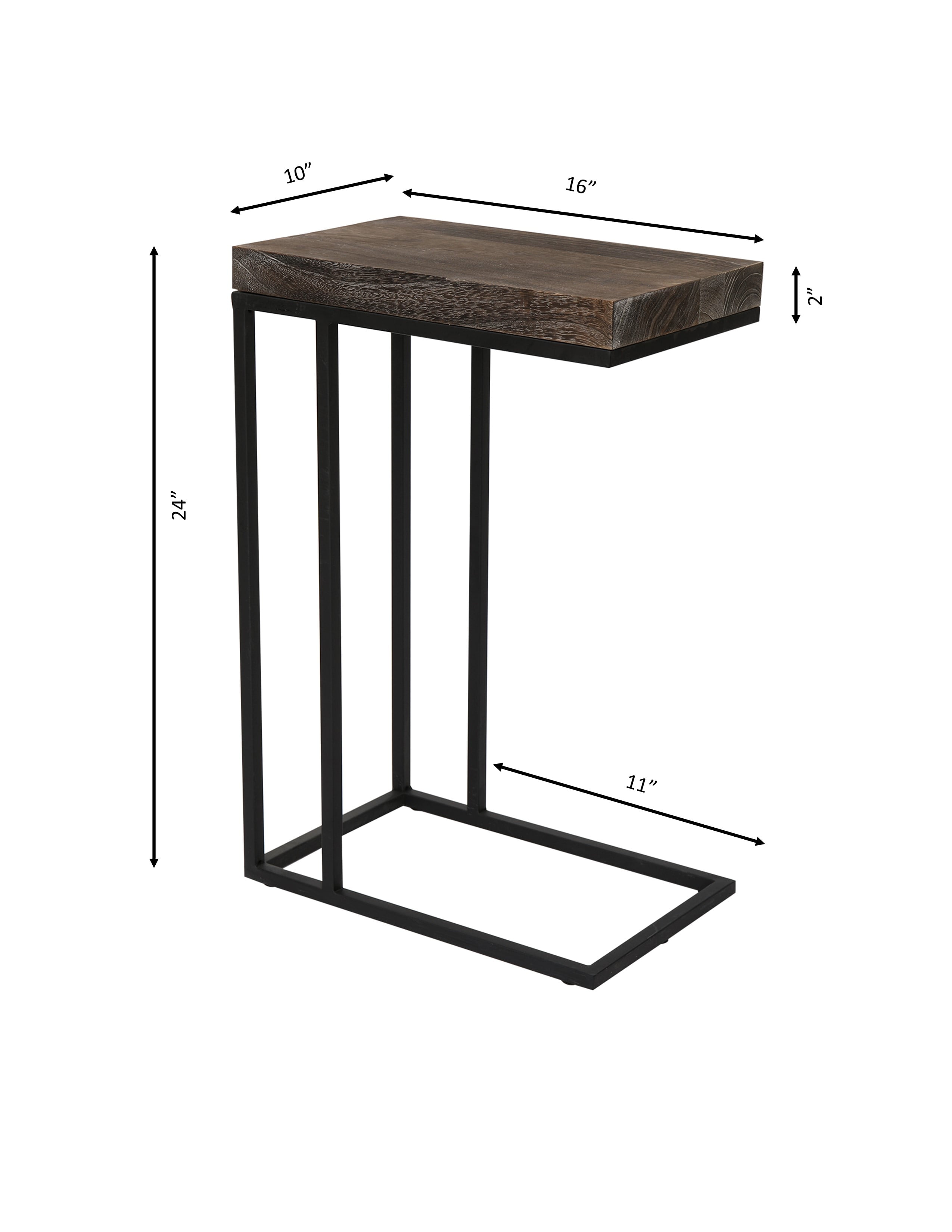 【High Quality Material】Solid wood table top and steel base for durability. 【Elegant Antique Design】The C-shaped table boasts a torch carbon-finished tabletop, blending rustic charm with modern sophistication for a timeless, eye-catching centerpiece. 【Space-Saving C-Shaped Design】 Featuring an ergonomic C-shaped curve, this table effortlessly slides over beds, sofas, recliners, and more. Its snug, secure fit ensures stability during use while maximizing space efficiency—ideal for keeping snacks, devices, or books within easy reach. 【Lightweight & Portable Design】 Effortlessly move and reposition the C-shaped table between rooms or workspaces, offering flexibility for dynamic layouts and everyday convenience. 【No Assembly Required】The table is pre-assembled. Just open the box and the table is ready to used.