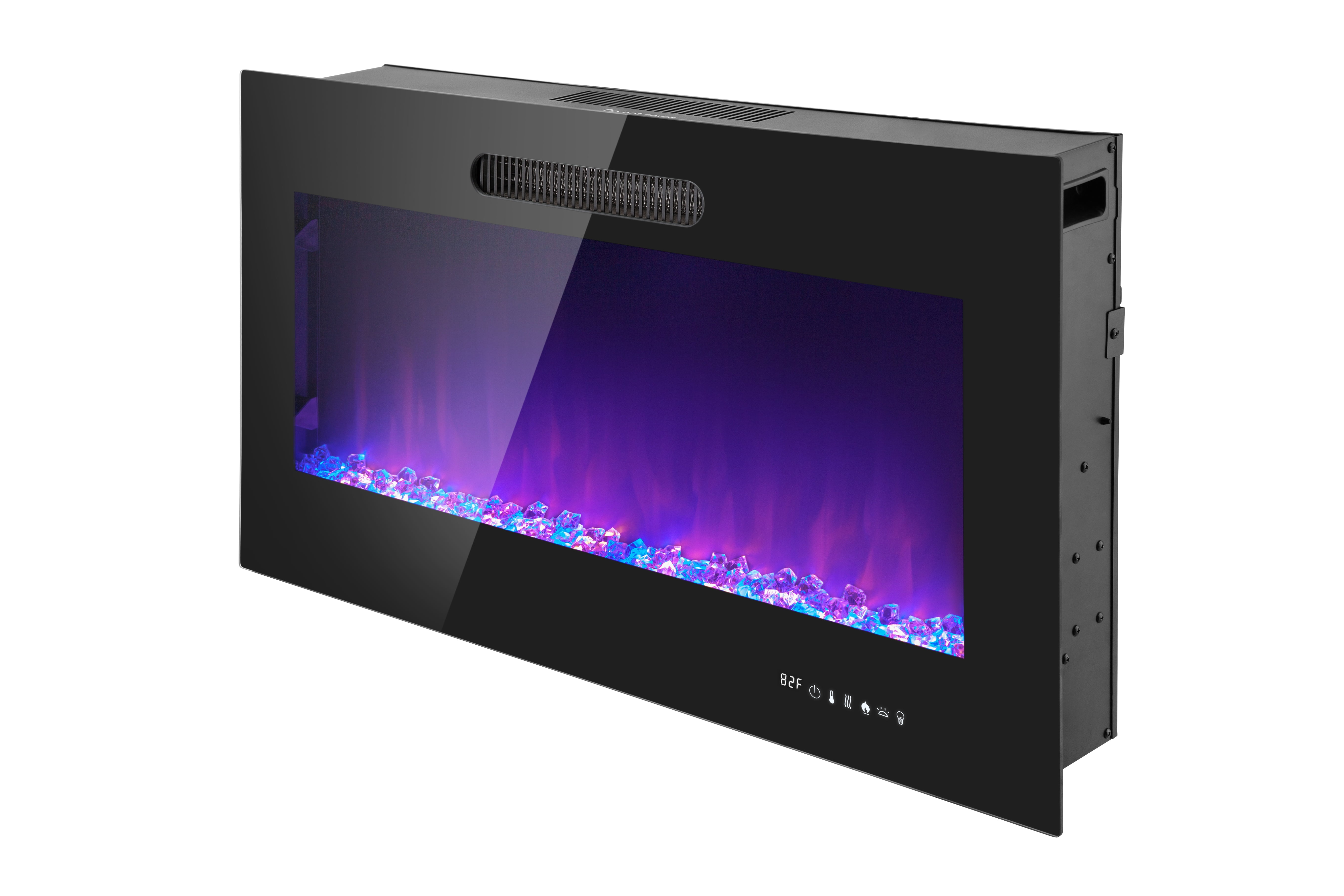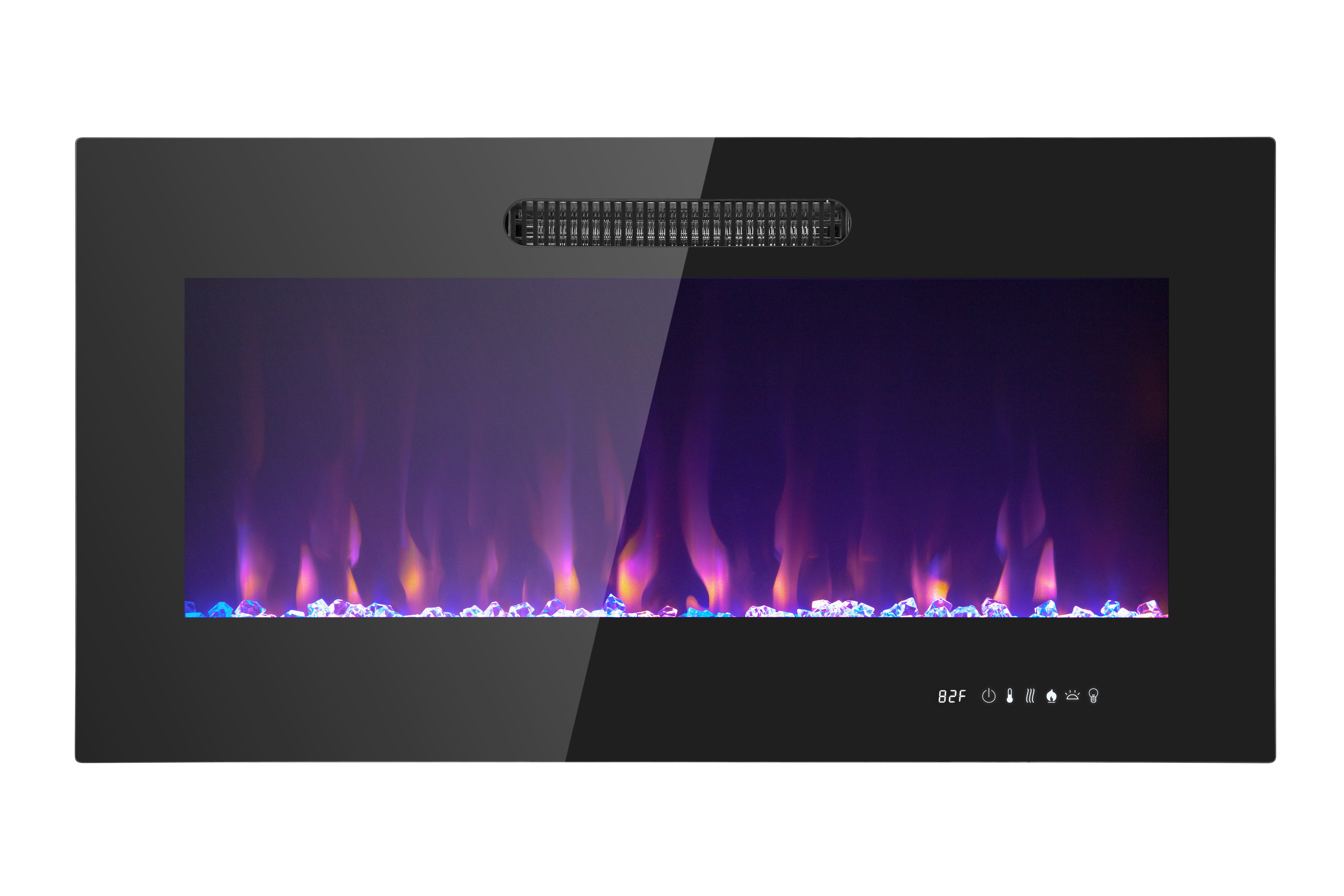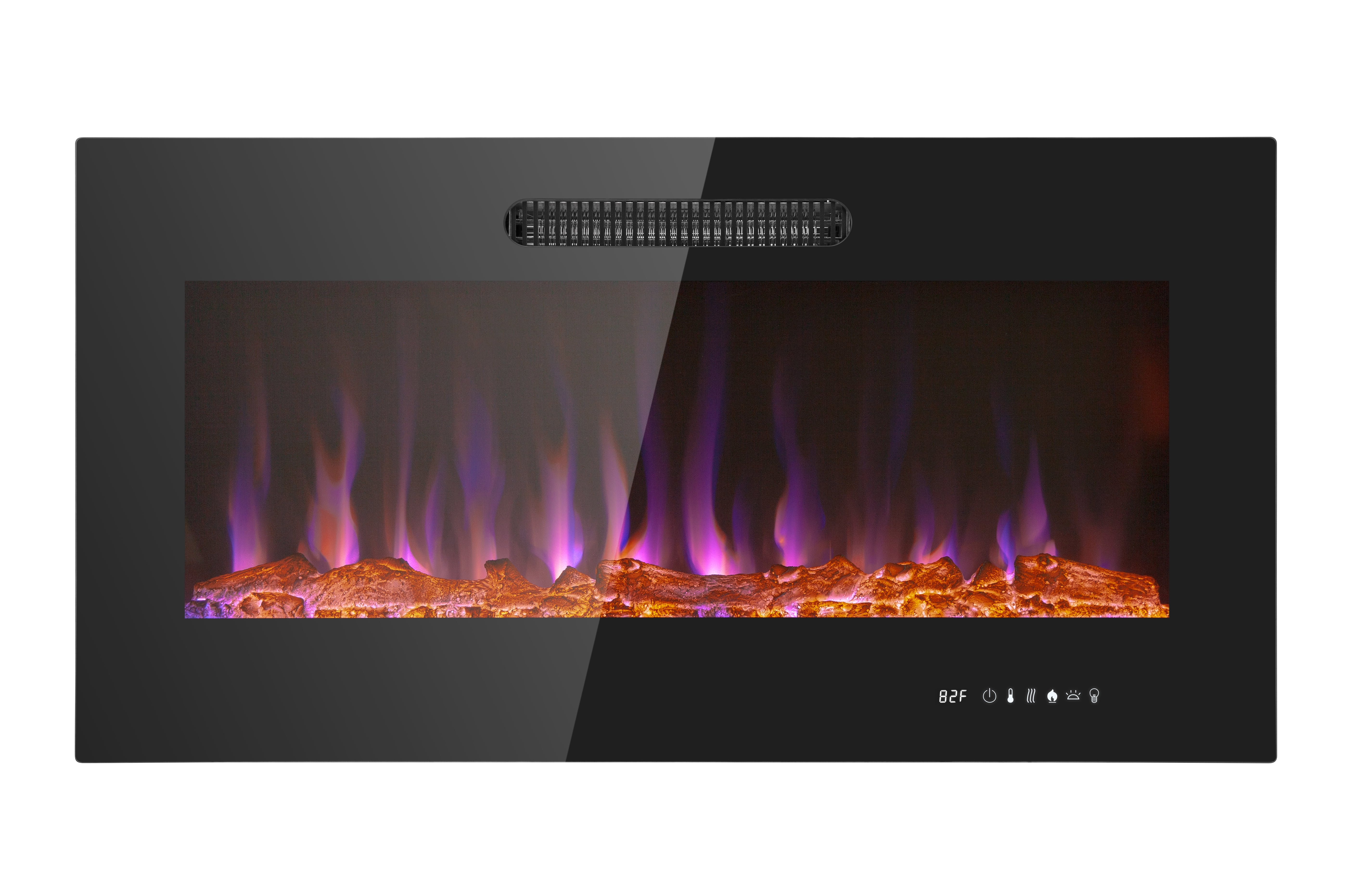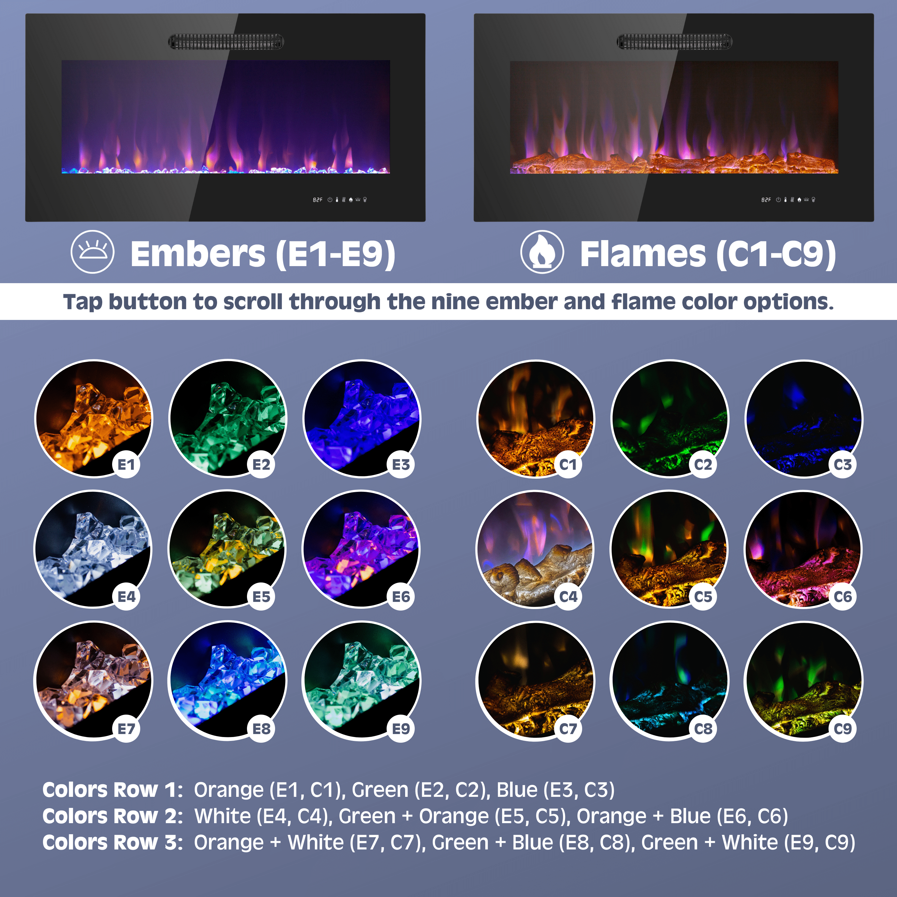 DUAL-MOUNT FIREPLACE OPTION: This electric fireplace can be recessed in the wall or be wall-mounted. Our fireplace comes with easy-to-follow instructions to help homeowners install the unit exactly as they want it for a functional and decorative home heating look. SLEEK FUNCTIONAL HOME HEATING DESIGN: With the low profile black stainless steel frame air intake above the fireplace allows for safe hanging of TV’s or Photos while still offering adjustable heating temperature from 0℉ to 158℉ (5050 BTU / 1500 Watts / 12 Amps) for ambient heating. REALISTIC FLAME: High intensity LED lights provide a warm, bright and lifelike flame effect. Choose from 9 flame colors and 9 ember effects top ranging from a quiet glow to a raging blaze. Both the heat and flame settings can be operated through remote control. COMES WITH TWO EMBER OPTIONS: Equipped with faux fire logs and glass crystals that resemble burning coals, replicating the look and feel of a traditional fireplace. Toggle between ember and flame colors to match your mood for the ideal look at any family gathering in your home. SAFETY: ETL Certificate approved for over-heat protection and comes with a timer from 0-12 hours. Shop with confidence when you buy from Prominence home with our limited lifetime warranty.