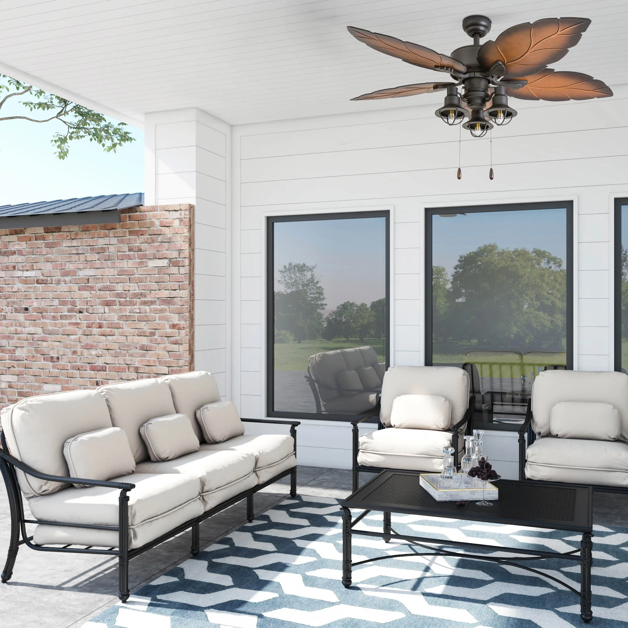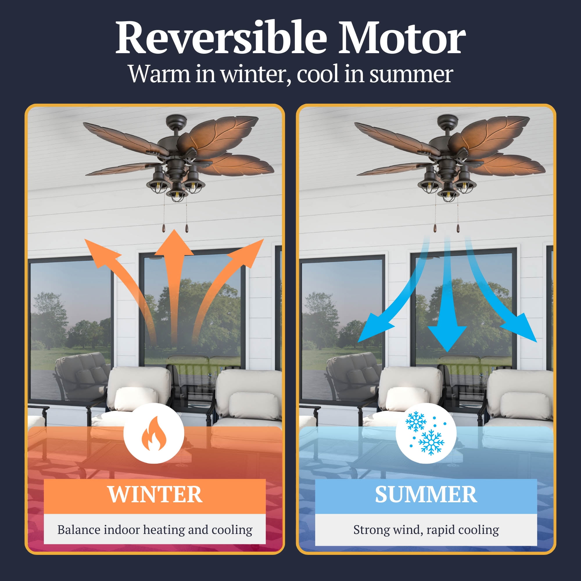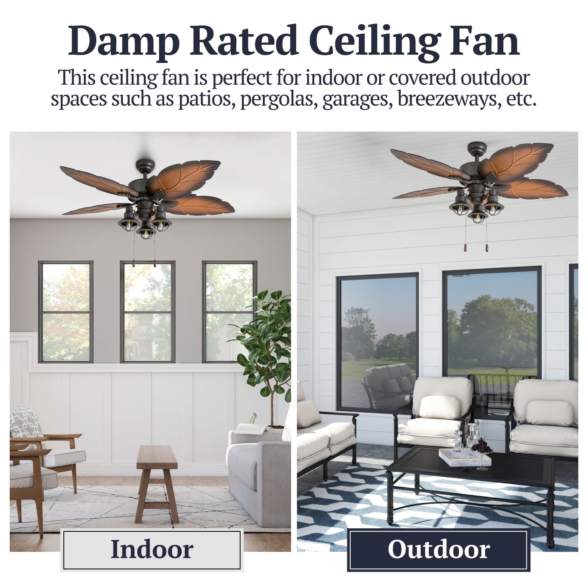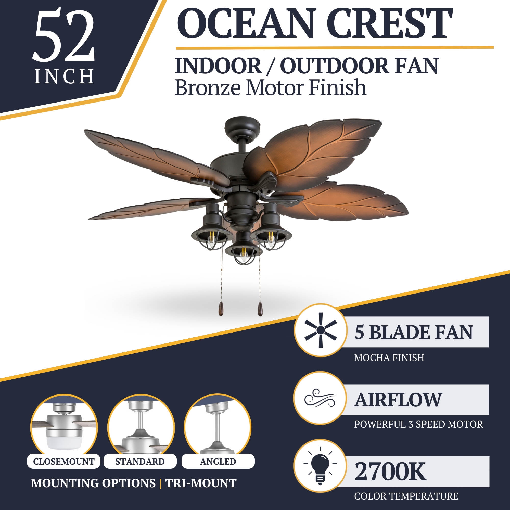 Prominence Home 50653-35 Ocean Crest Tropical 52-Inch Tropical Bronze Indoor Ceiling Fan, Lantern LED Multi-Arm Mocha Blades HIGH AIR-FLOW: Enjoy the cool breeze created by a ceiling fan! Three speeds allow for the perfect setting for your space. QUIET, REVERSIBLE MOTOR: Conveniently quiet, reversible motor. Can be run in the winter to aid in rotating warm air and cutting down on energy costs. MEDIUM SIZED ROOMS: Perfect for rooms around 350 square feet such as living rooms, bedrooms, dining rooms or family rooms. TWO-BLADE FINISHES: Get the perfect finish match with our reversible ceiling fan blades. Each side has a unique finish to compliment your space. Our fans offer the ultimate in comfort.