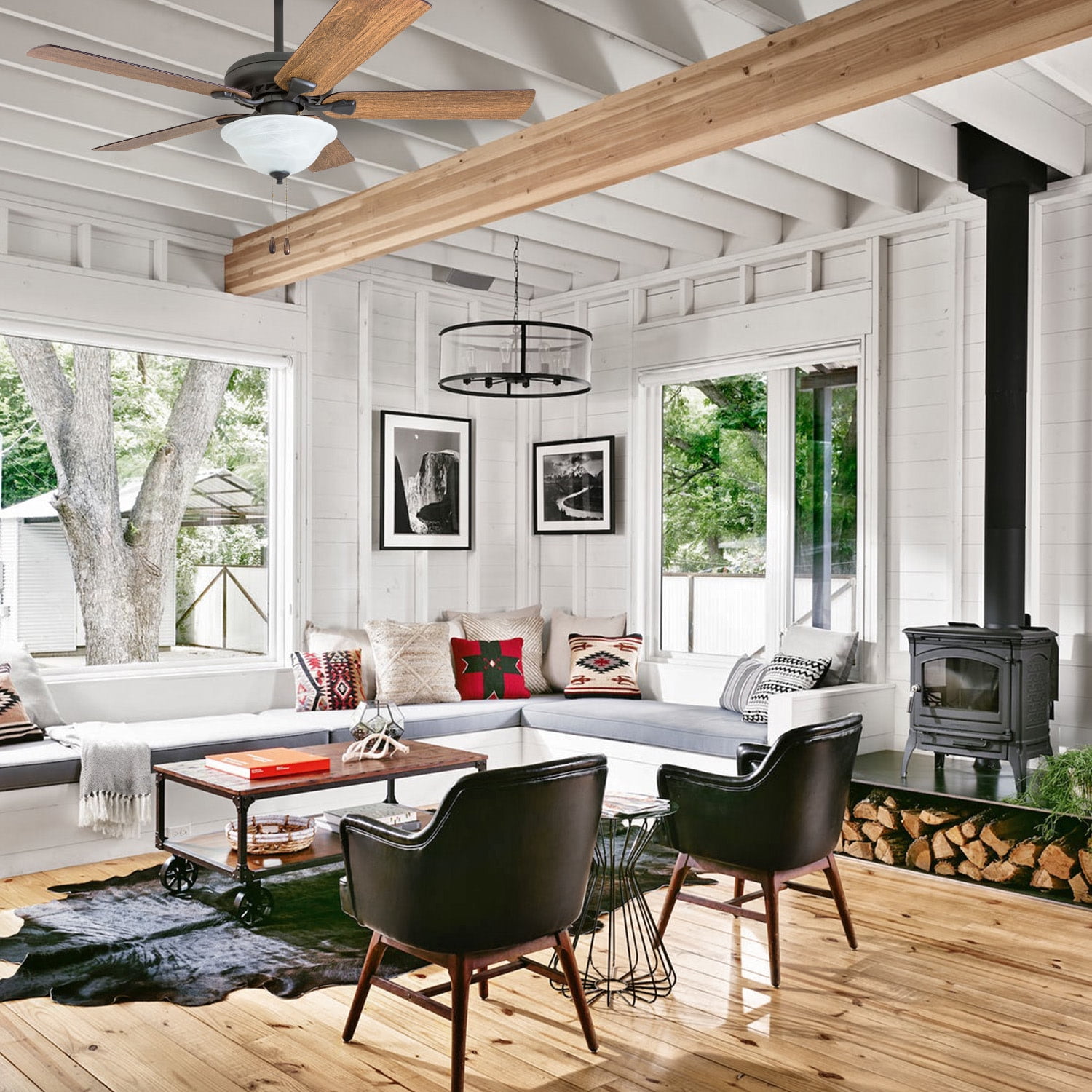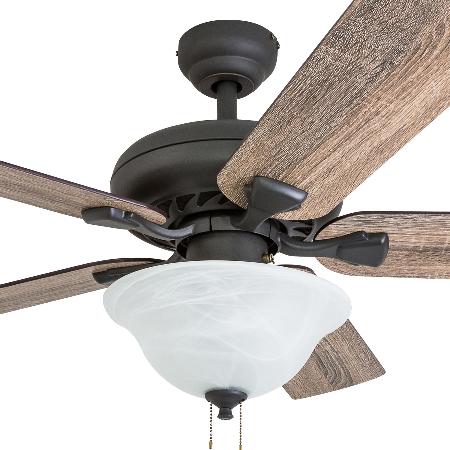 Prominence Home 50658-35 Boulder Ridge Farmhouse 52-Inch Aged Bronze Indoor Ceiling Fan, LED Bowl Light with Barnwood/Tumbleweed Blades HIGH AIR-FLOW: Enjoy the cool breeze created by a ceiling fan! Three speeds allow for the perfect setting for your space.QUIET, REVERSIBLE MOTOR: Conveniently quiet, reversible motor. Can be run in the winter to aid in rotating warm air and cutting down on energy costs.MEDIUM SIZED ROOMS: Perfect for rooms around 350 square feet such as living rooms, bedrooms, dining rooms or family rooms.TWO-BLADE FINISHES: Get the perfect finish match with our reversible ceiling fan blades. Each side has a unique finish to compliment your space.100% SATISFACTION GUARANTEED: Limited manufacturer’s warranty. You’ll love this ceiling fan!