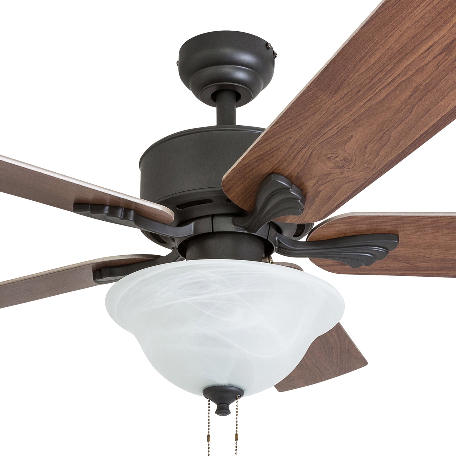Prominence Home 50668-35 Berclair Traditional 52-Inch Aged Bronze Indoor Ceiling Fan, LED Bowl Light with Chilled Gray / Chocolate Maple Blades HIGH AIR-FLOW: Enjoy the cool breeze created by a ceiling fan! Three speeds allow for the perfect setting for your space.QUIET, REVERSIBLE MOTOR: Conveniently quiet, reversible motor. Can be run in the winter to aid in rotating warm air and cutting down on energy costs.MEDIUM SIZED ROOMS: Perfect for rooms around 350 square feet such as living rooms, bedrooms, dining rooms or family rooms.TWO-BLADE FINISHES: Get the perfect finish match with our reversible ceiling fan blades. Each side has a unique finish to compliment your space.100% SATISFACTION GUARANTEED: Limited manufacturer’s warranty. You’ll love this ceiling fan!