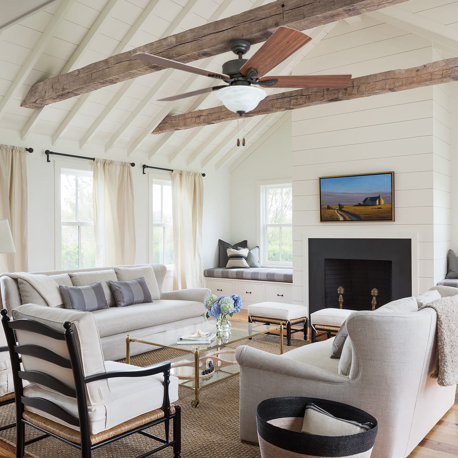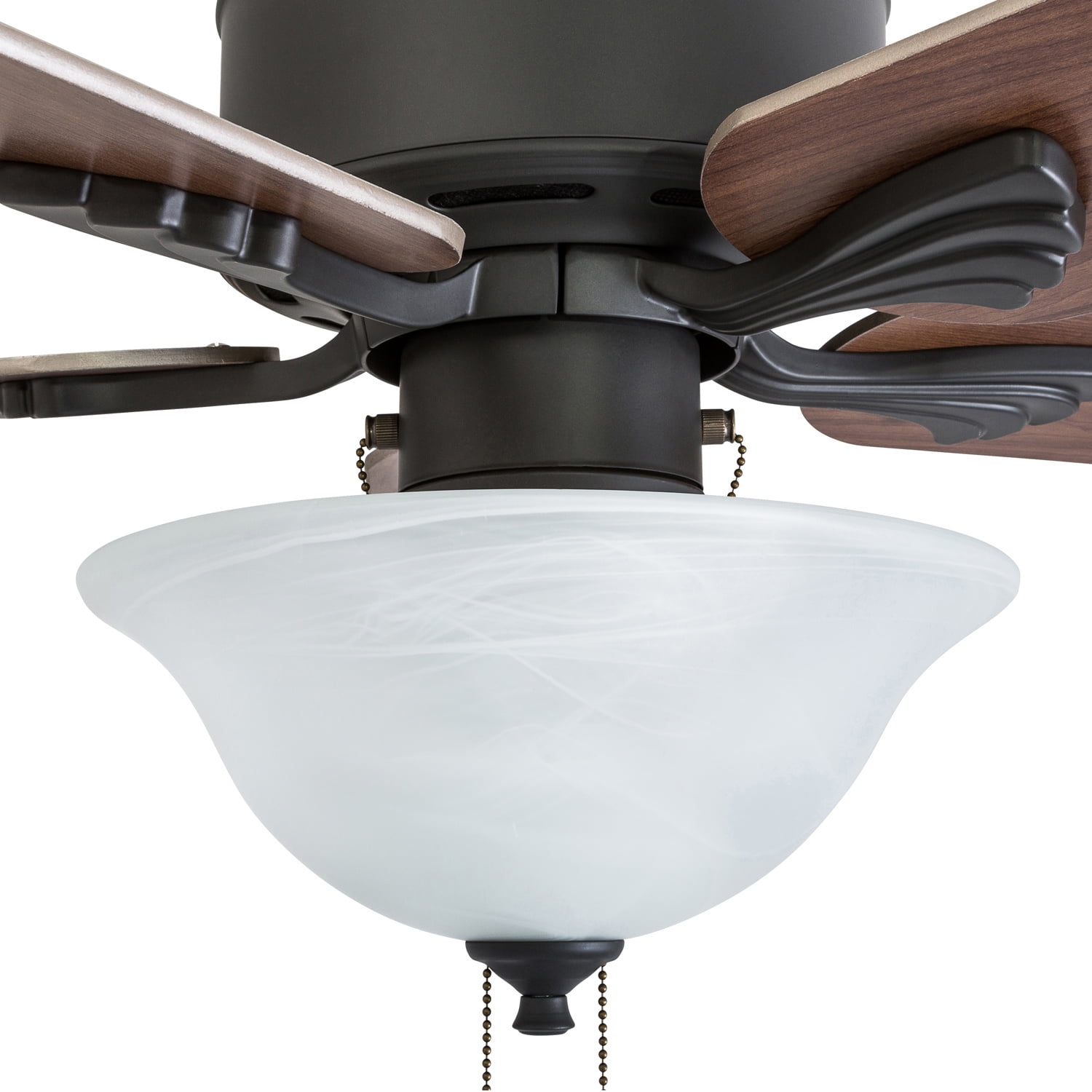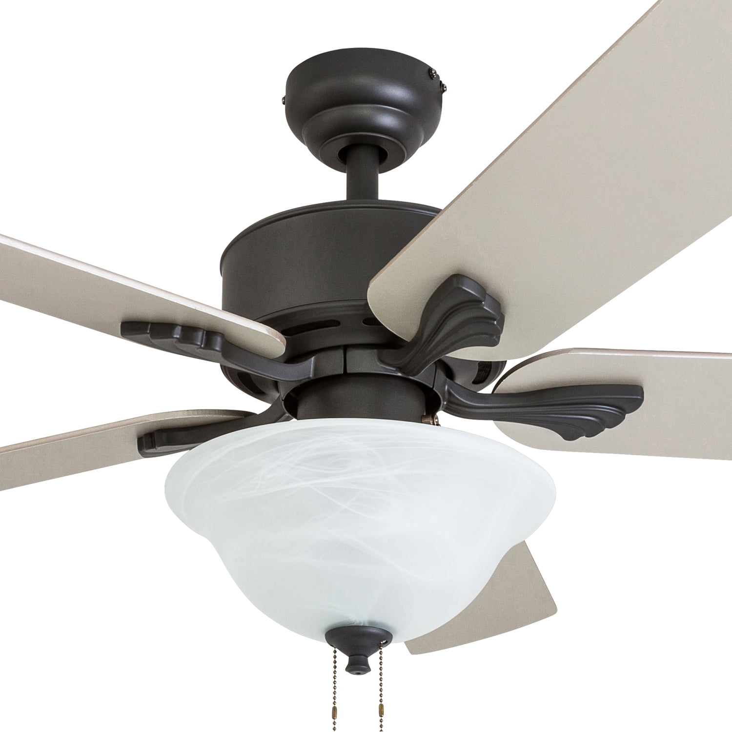 Prominence Home 50774-35 Berclair Traditional 52-Inch Aged Bronze Indoor Ceiling Fan, LED Bowl Light with Chilled Gray / Chocolate Maple Blades and 3 speed remote HIGH AIR-FLOW: Enjoy the cool breeze created by a ceiling fan! Three speeds allow for the perfect setting for your space.QUIET, REVERSIBLE MOTOR: Conveniently quiet, reversible motor. Can be run in the winter to aid in rotating warm air and cutting down on energy costs.MEDIUM SIZED ROOMS: Perfect for rooms around 350 square feet such as living rooms, bedrooms, dining rooms or family rooms.TWO-BLADE FINISHES: Get the perfect finish match with our reversible ceiling fan blades. Each side has a unique finish to compliment your space.100% SATISFACTION GUARANTEED: Limited manufacturer’s warranty. You’ll love this ceiling fan!