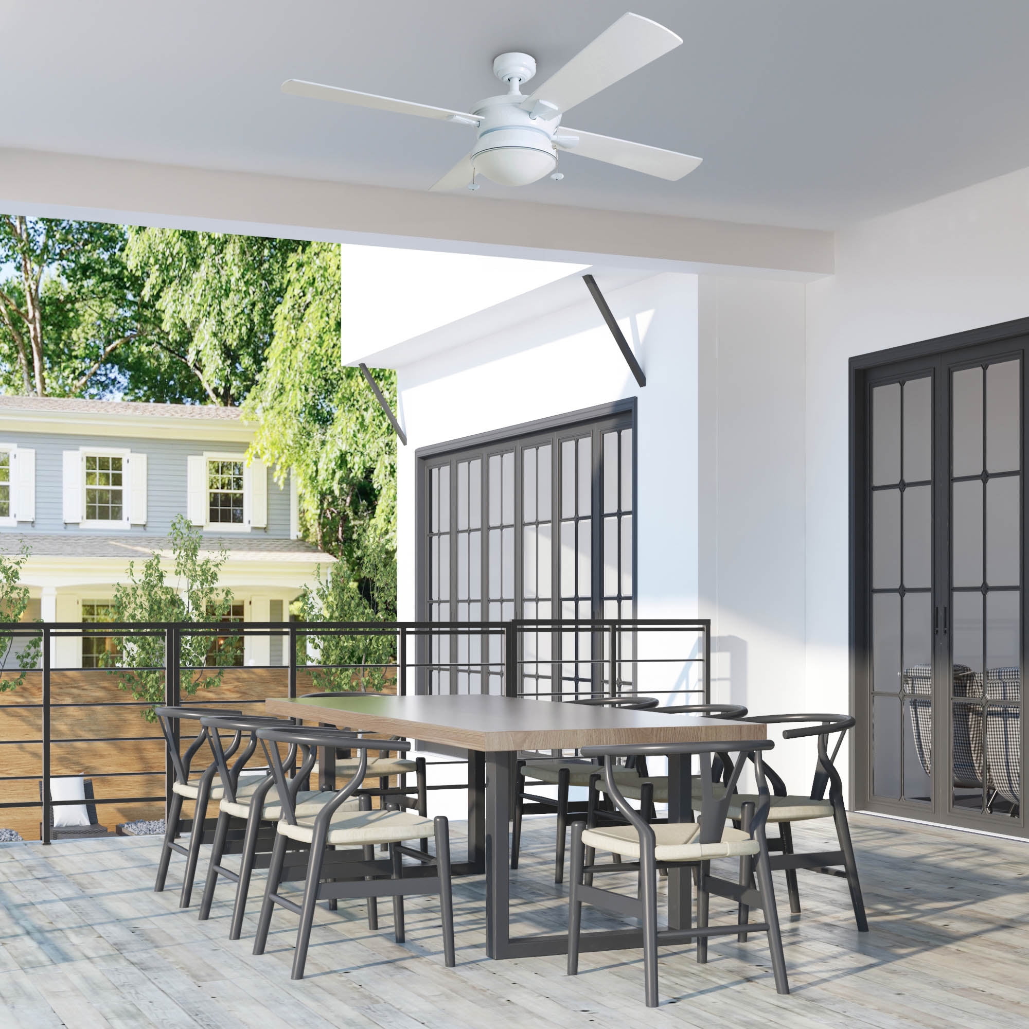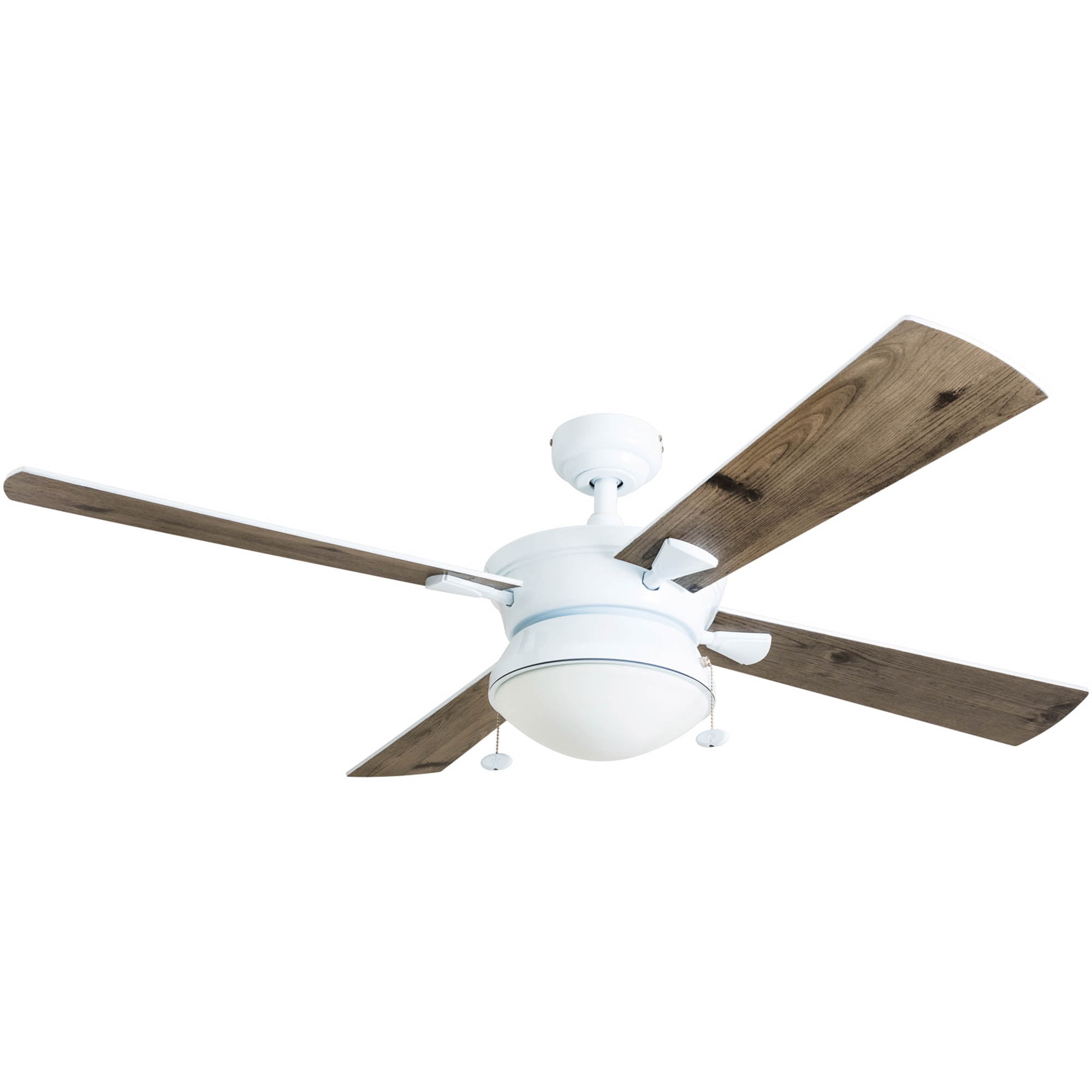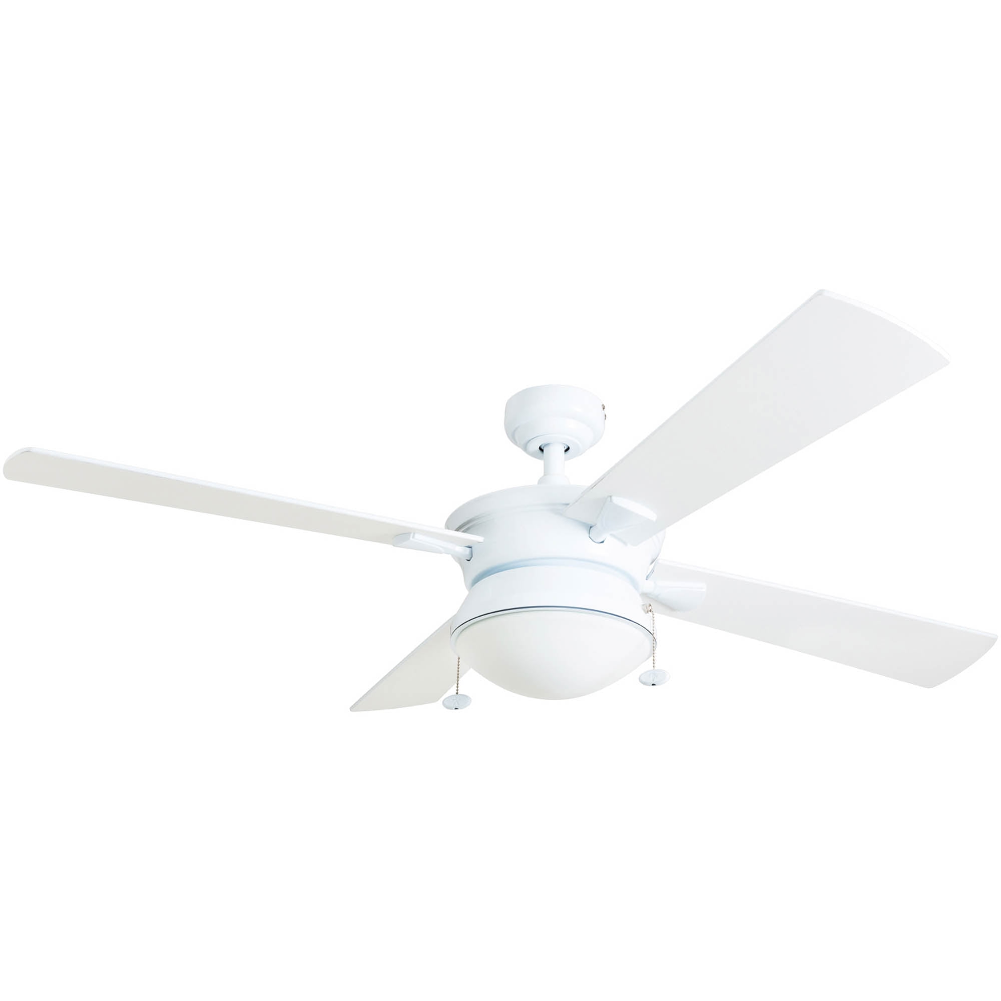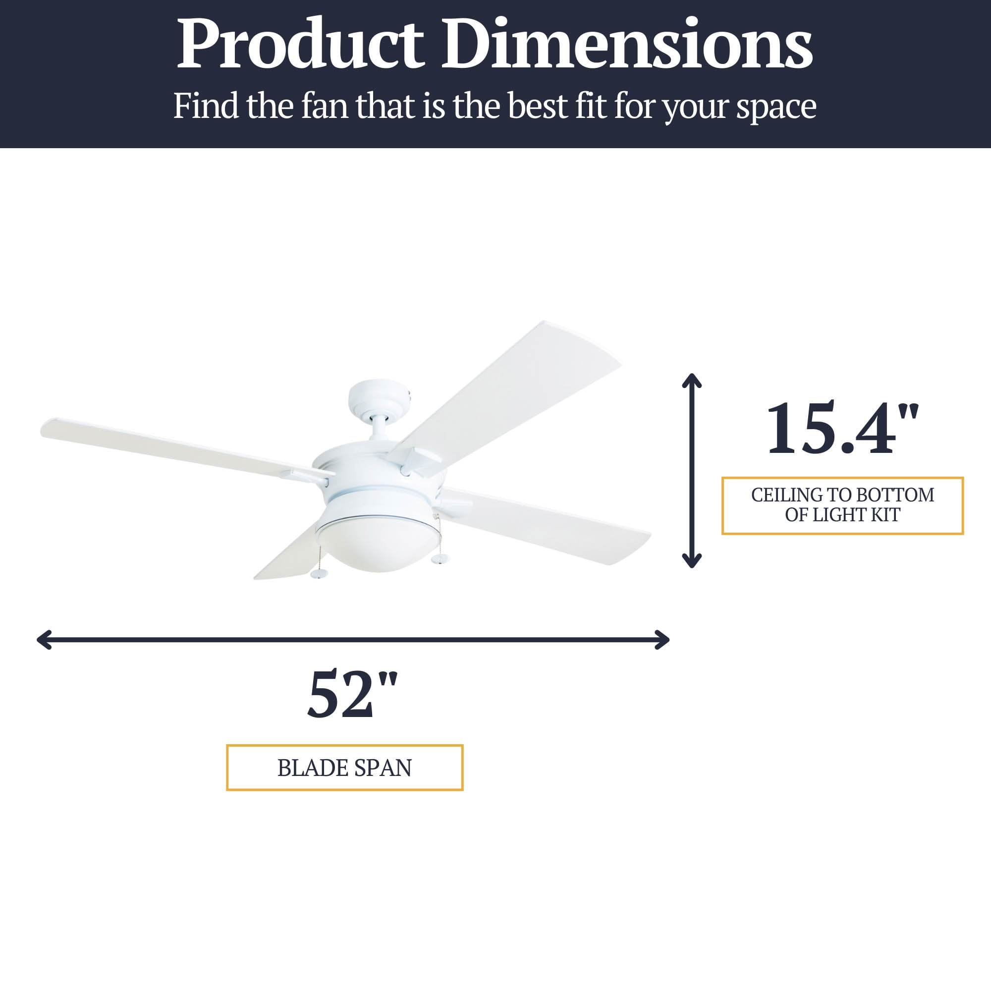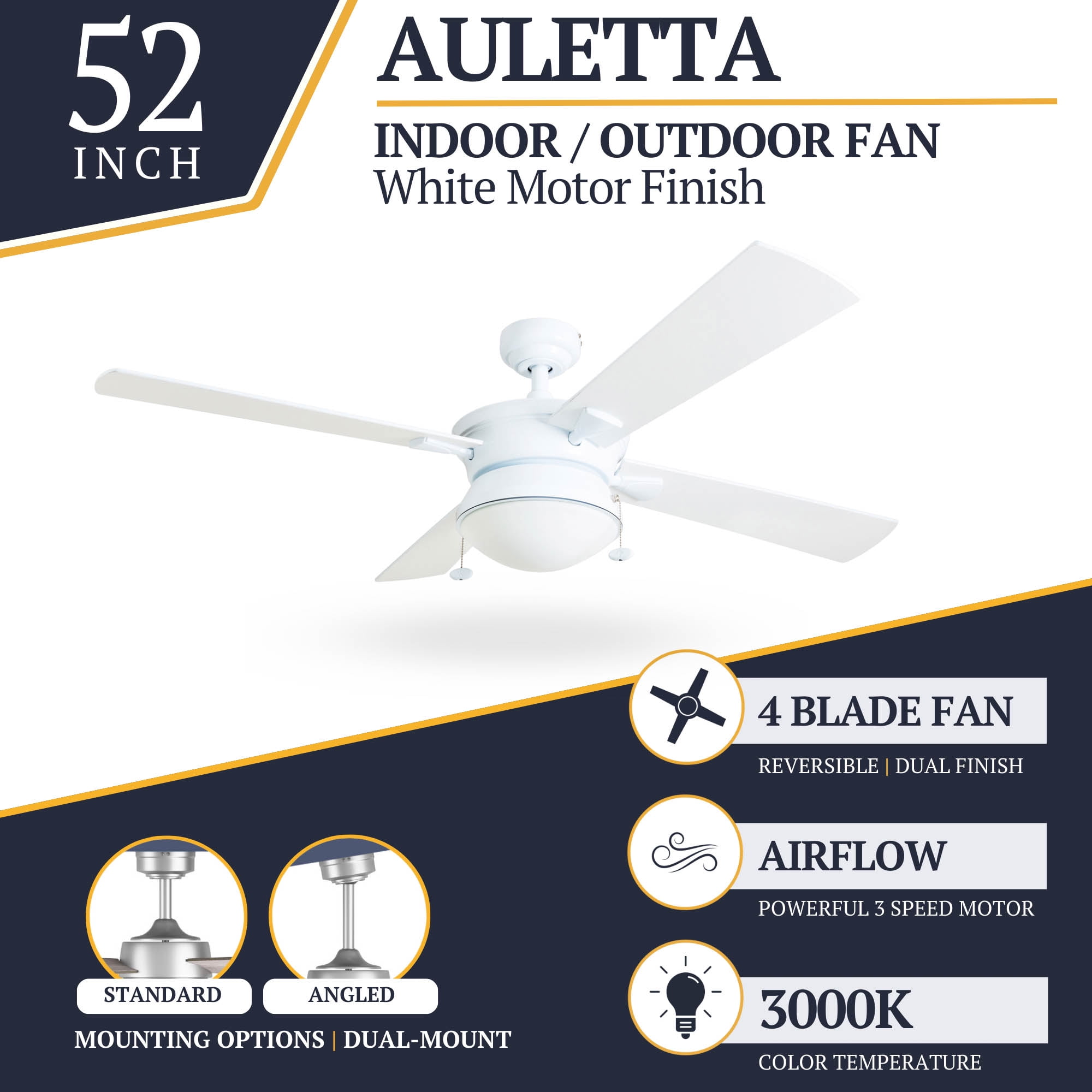 Prominence Home Auletta 52″ White Indoor/Outdoor Ceiling Fan with 4 Blades, Light Kit, Pull Chains & Reverse Airflow