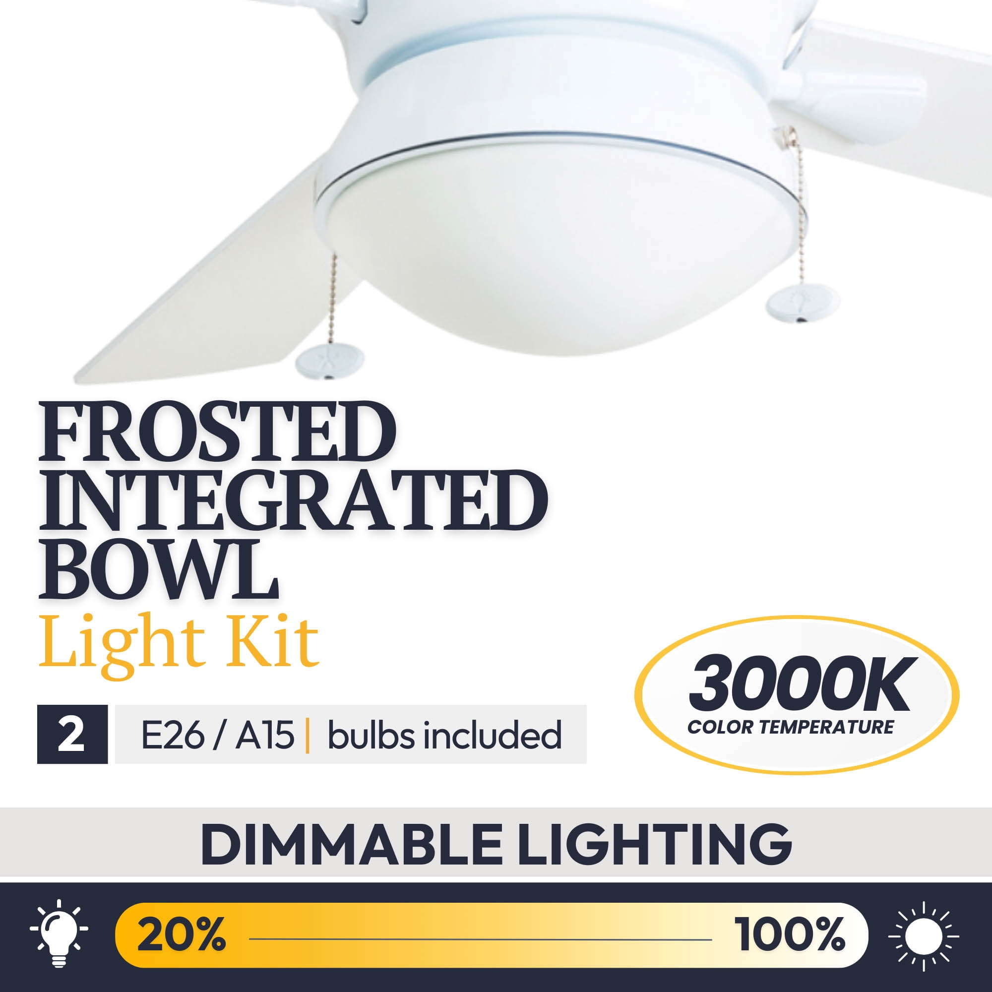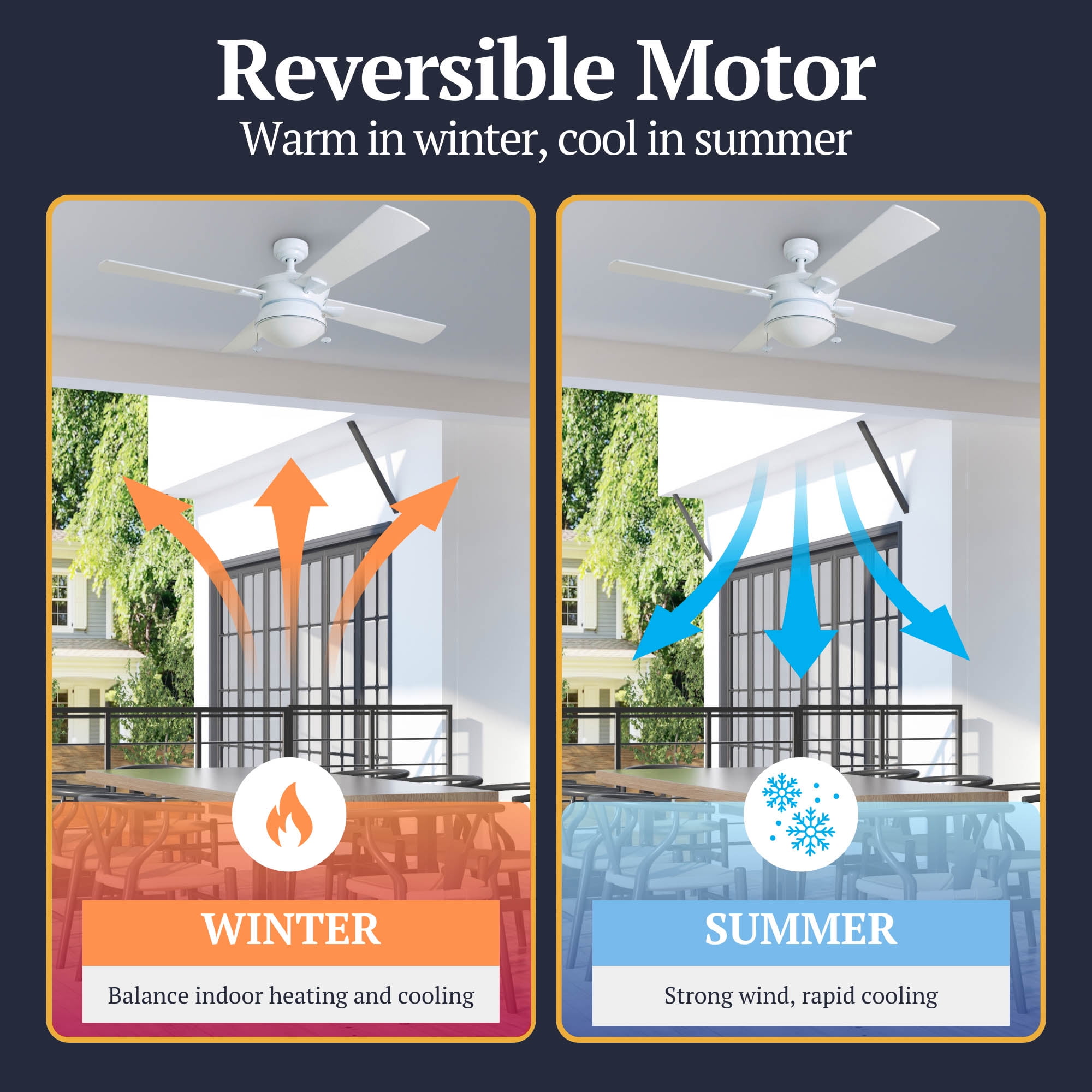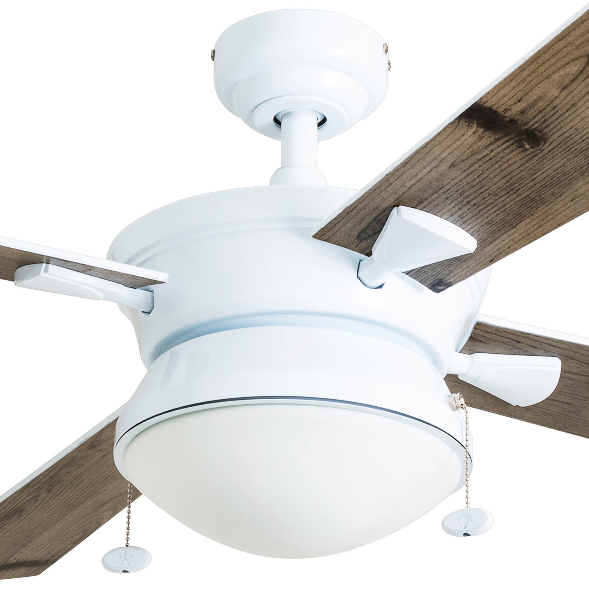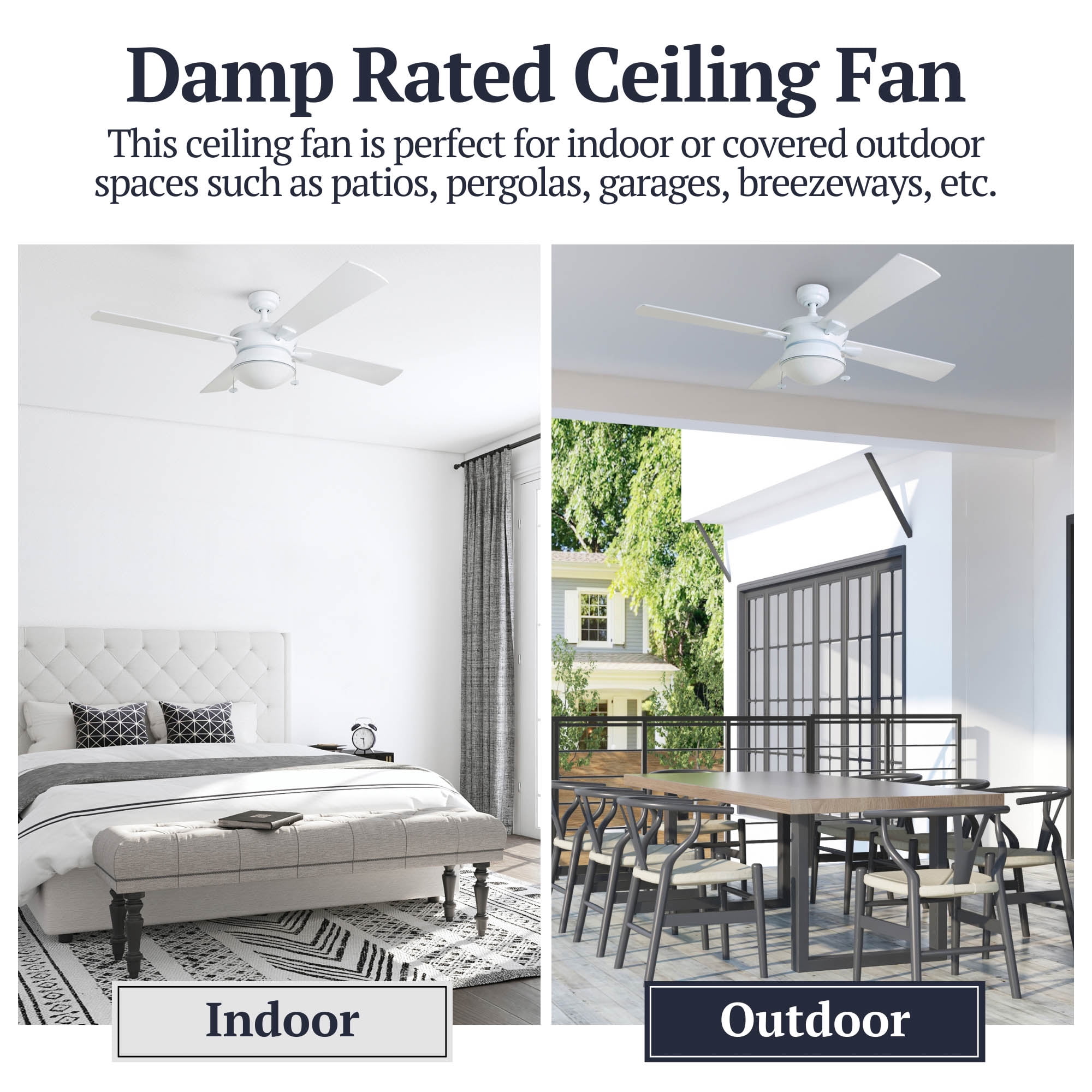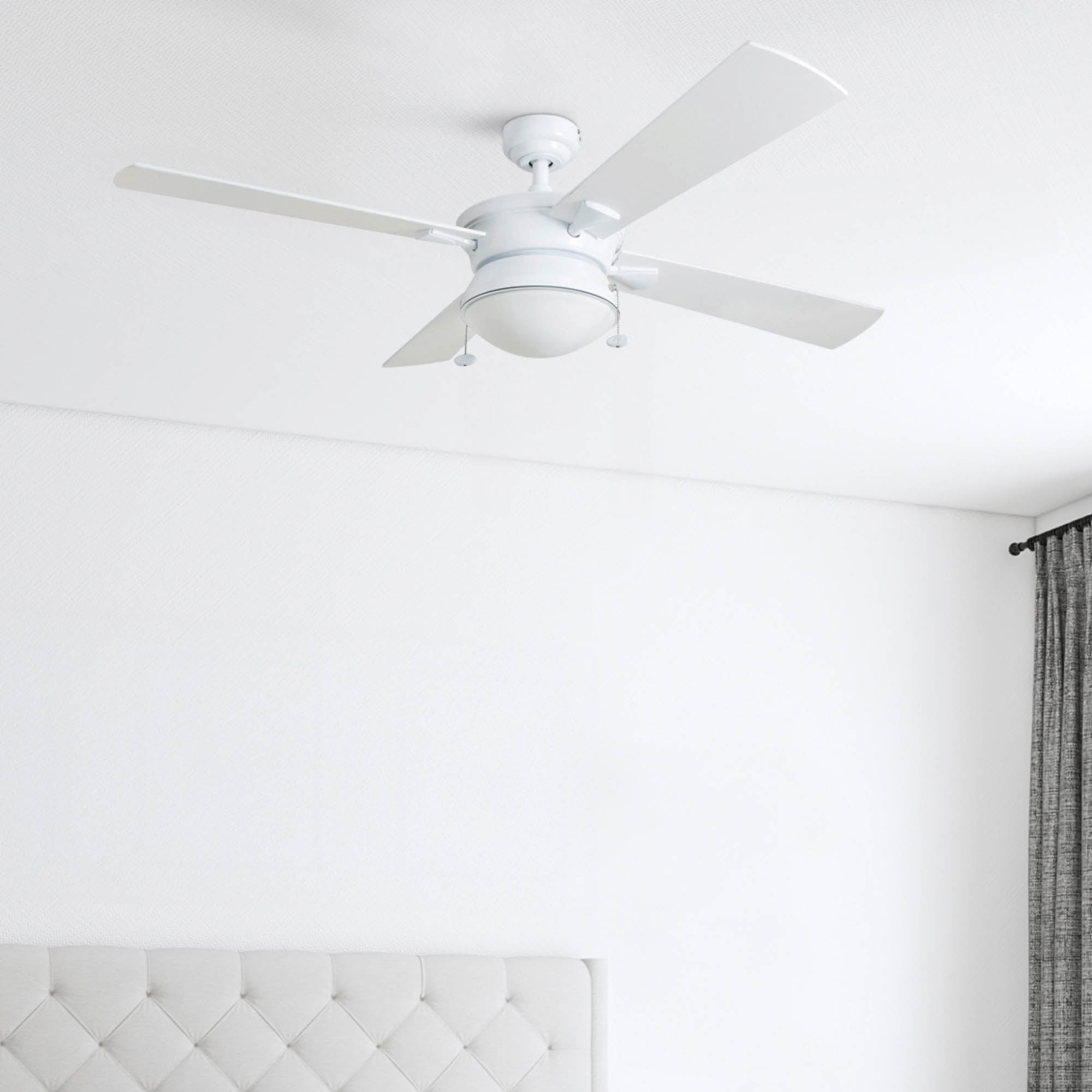 Prominence Home Auletta 52″ White Indoor/Outdoor Ceiling Fan with 4 Blades, Light Kit, Pull Chains & Reverse Airflow