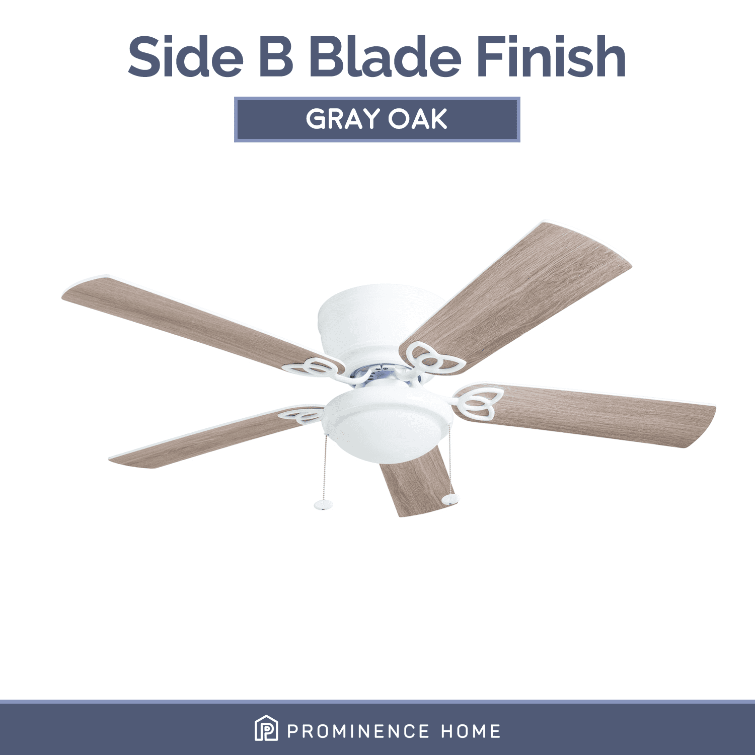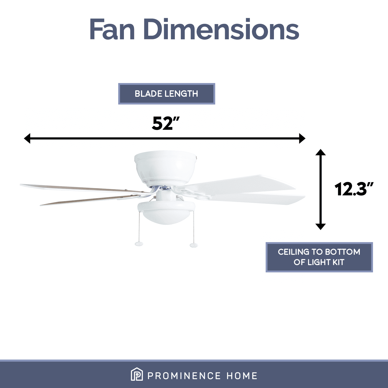 Get the look you’ve always wanted with a state-of-the-art, Prominence Home ceiling fan. Our ceiling fans are designed with our customers in mind. Each fan provides high quality with quiet performance. From the tip of the fan down to the center of to the glass, the Prominence Home Benton holds a very classic look that offers a nice compliment to your room without overpowering. The white finish blends nicely with coastal decor and the reversible blades easily transition into the inviting farmhouse decor. The reversible 3 speed motor adds year-round function and is conveniently quiet. This 52-inch ceiling fan is the perfect addition for your medium to large sized rooms and the low profile design is built for low ceilings where extra space is needed.