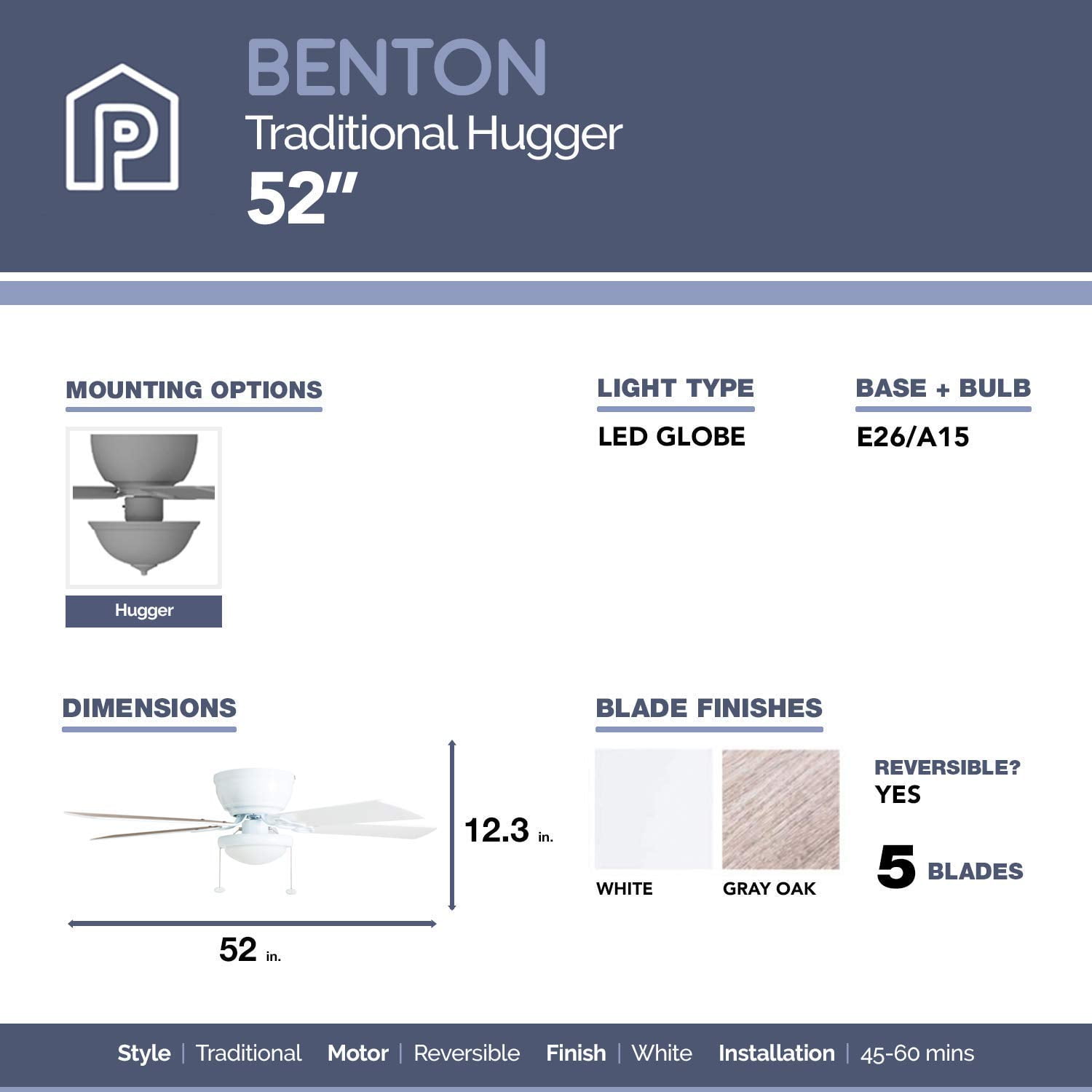 Prominence Home Benton 52″ White Low Profile Ceiling Fan with Light