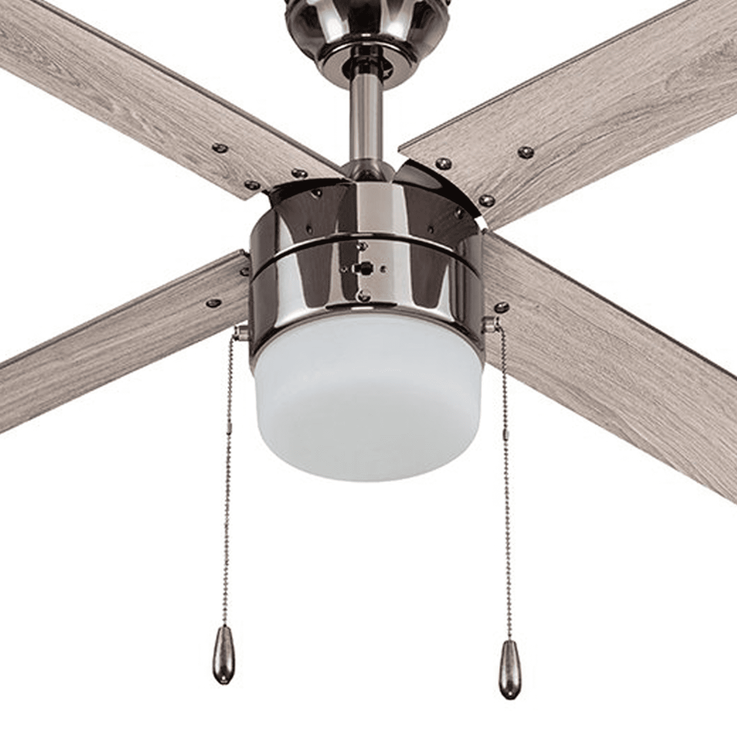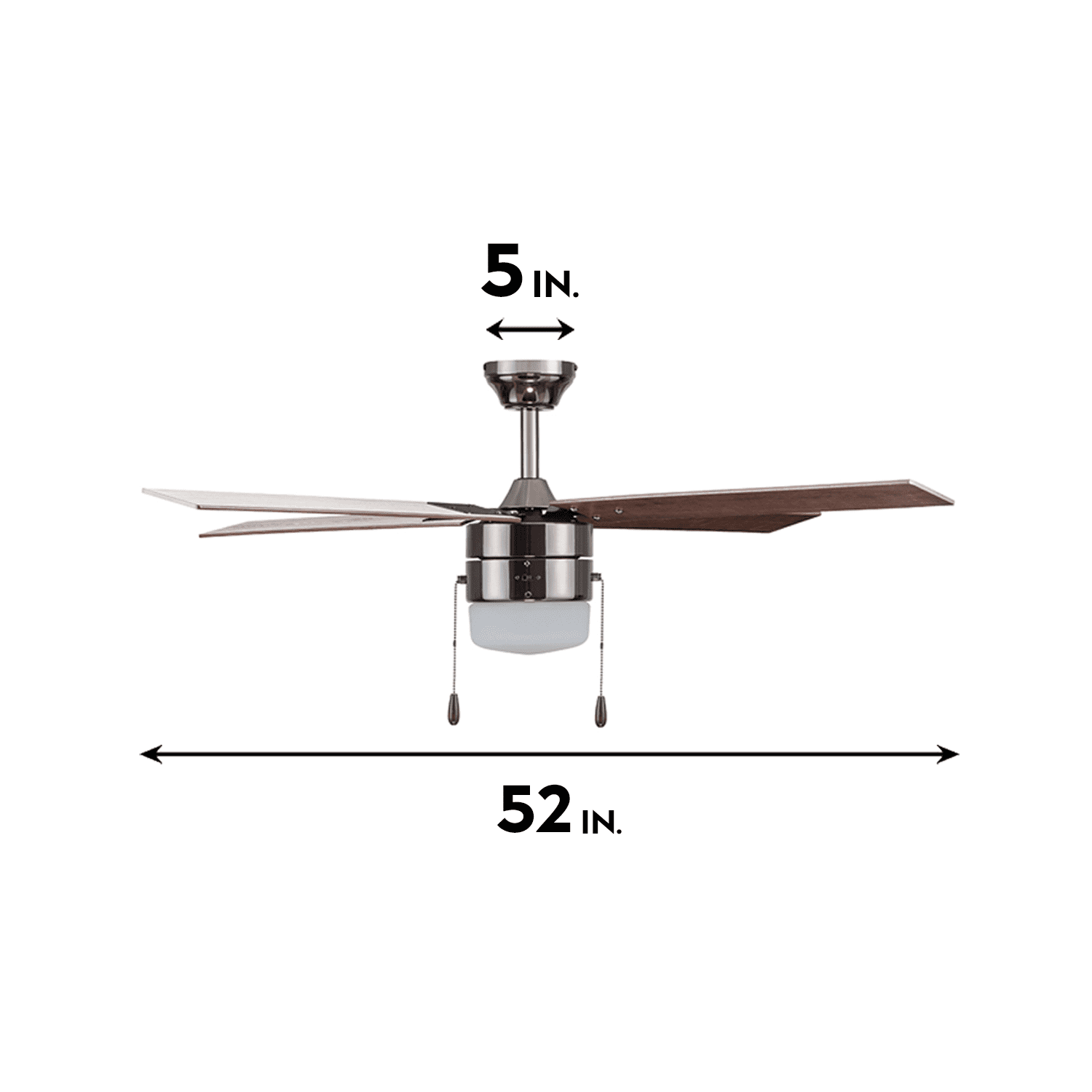 CONTEMPORARY/ RUSTIC INDUSTRIAL/FARMHOUSE: Available in Espresso Bronze, Gun Metal, or White, this modern ceiling fan will beautifully accent a variety of styles! Having a blade span of 52 inches, this ceiling fan is perfect for medium to large size rooms such as kitchens, bedrooms, living rooms and much more!! LIGHT FROSTED GLASS: This indoor ceiling fan features a light frosted glass bowl light kit housing 1 E26/Medium (Standard)/A15 bulbs(included). DUAL MOUNT COMPATIBLE: This fan can be hung by the standard downrod mount, 6″ downrod included, or on angled ceilings (angle bracket for angles greater than 17 degrees sold separately) DUAL-FINISH REVERSIBLE BLADES: The style is up to you! This ceiling fan comes with a different finish on each side of the blades. The Gun Metal finish showcases reversible Light Oak/Gray Oak blades . Pick the look that best fits your space! EASY TO USE: Pull Chains included for quick and easy on and off adjustments. This fan is also compatible with universal ceiling fan remote controls (sold separately) QUIET, REVERSIBLE MOTOR: Conveniently quiet, 3 speed – reversible motor. Run counter-clockwise in the summer to produce a cooling downdraft. Can be run clockwise in the winter to aid in circulating warm air and cutting down on energy costs. LIMITED LIFETIME WARRANTY: A Limited Lifetime warranty is offered on this product by the manufacturer.