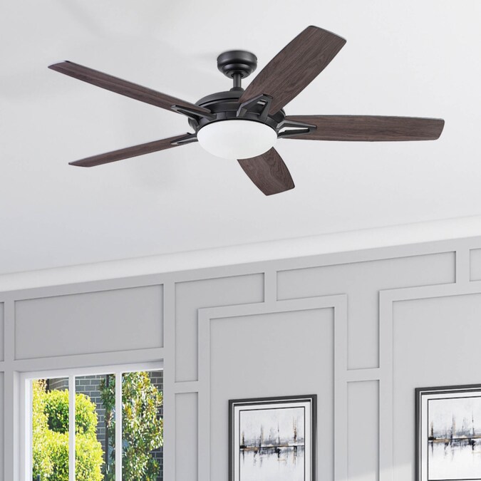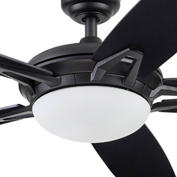 This 52-inch ceiling fan features a beautifully rounded integrated dome light which provides a perfect contrast to the sharp angles of the modern peep-hole blade arms creating a striking focal point. The deep matte black finish pairs with reversible matte black/ash blades. Each combination is expertly designed to add extra flair and perfectly accent a variety of different looks to have mass appeal. The powerful motor and design provides adjustable, reversible air movement that is ultra-efficient whether you want to cool down on those sweltering summer days or circulate warm air in the cold months of winter. The included remote controls the power, 3 speed settings of the fan, the reversible airflow and light as well for the ultimate convenience.