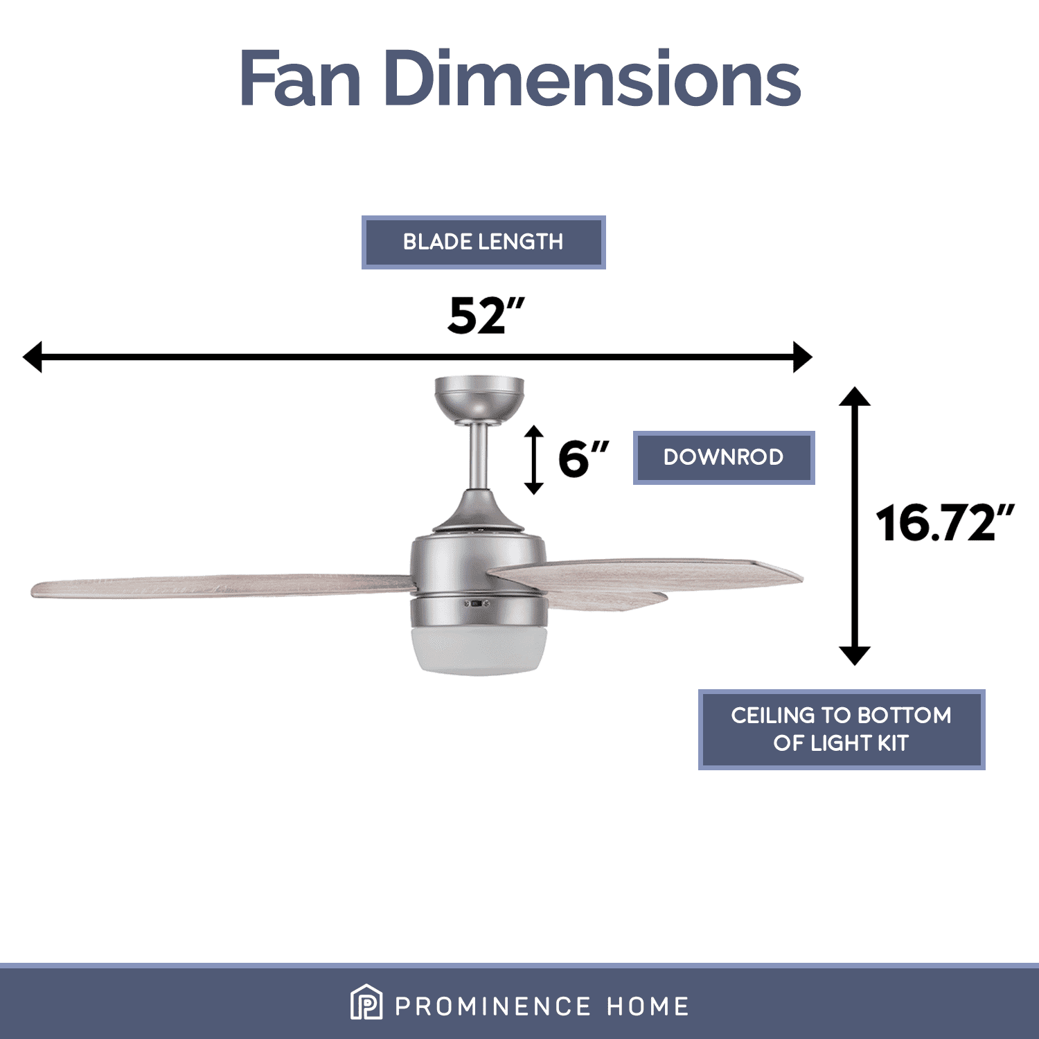 Prominence Home Enoki 52″ Pewter Indoor Ceiling Fan with Light, 3 Blades, Smart Remote & Reverse Airflow