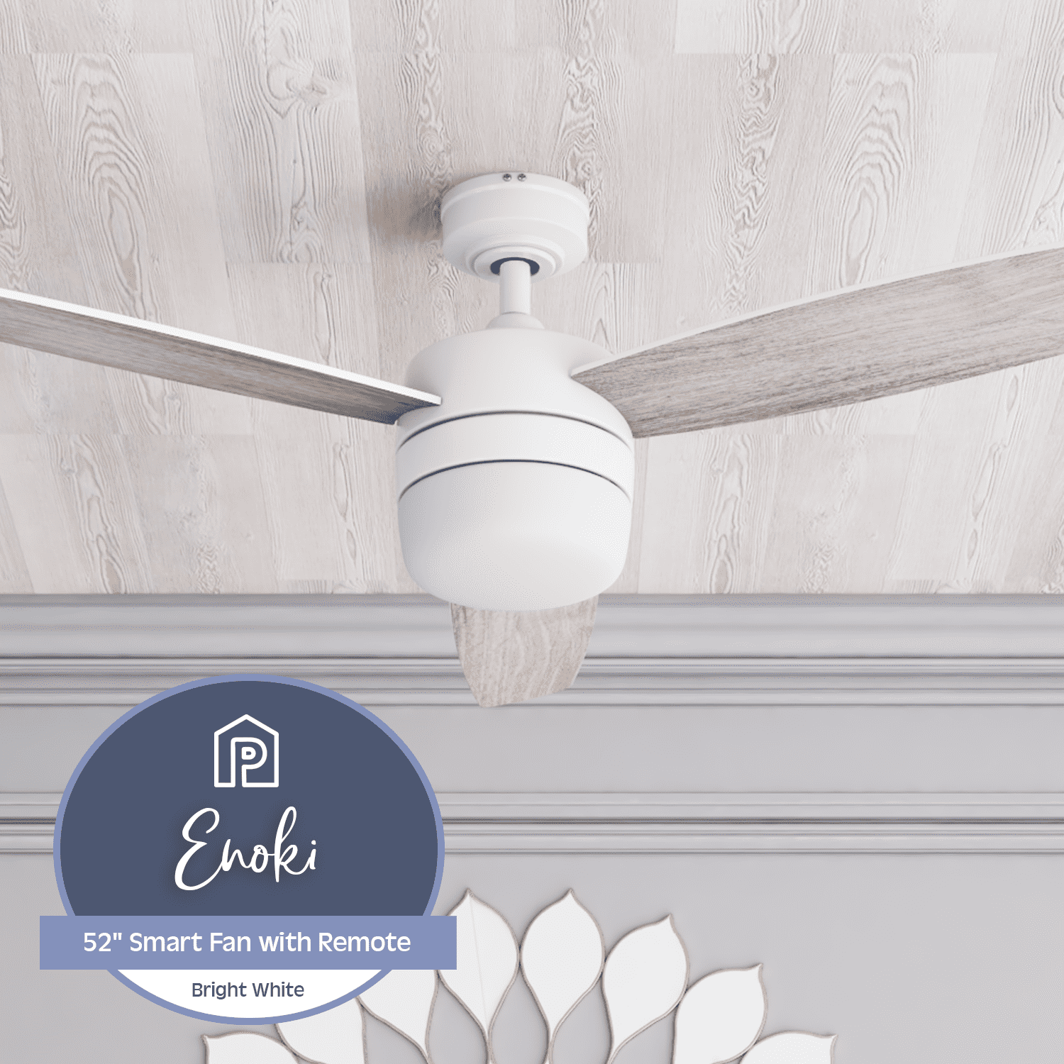 Prominence Home Enoki 52″ White Indoor Ceiling Fan with Light, 3 Blades, Smart Remote & Reverse Airflow