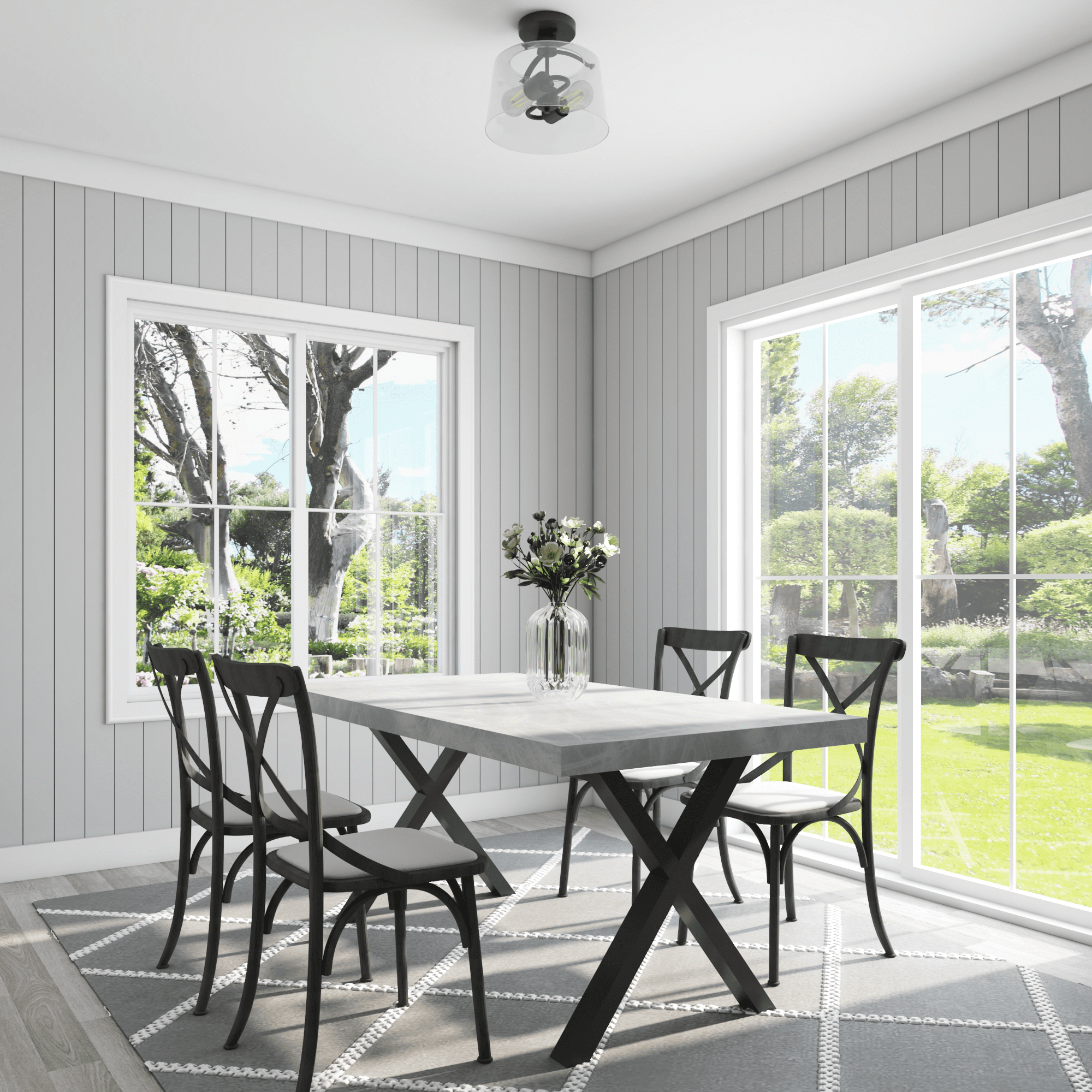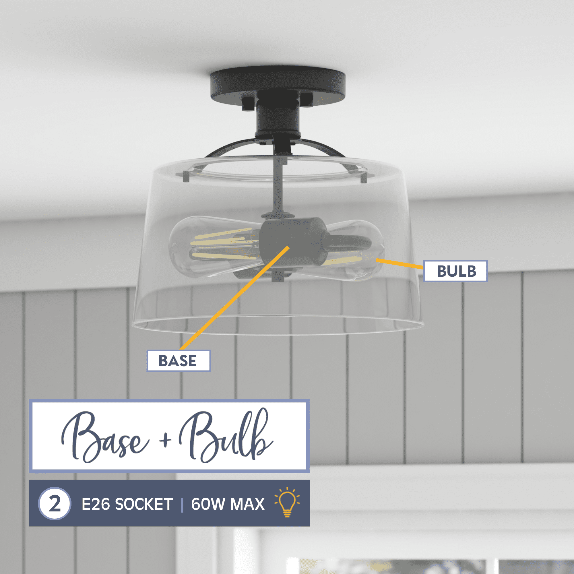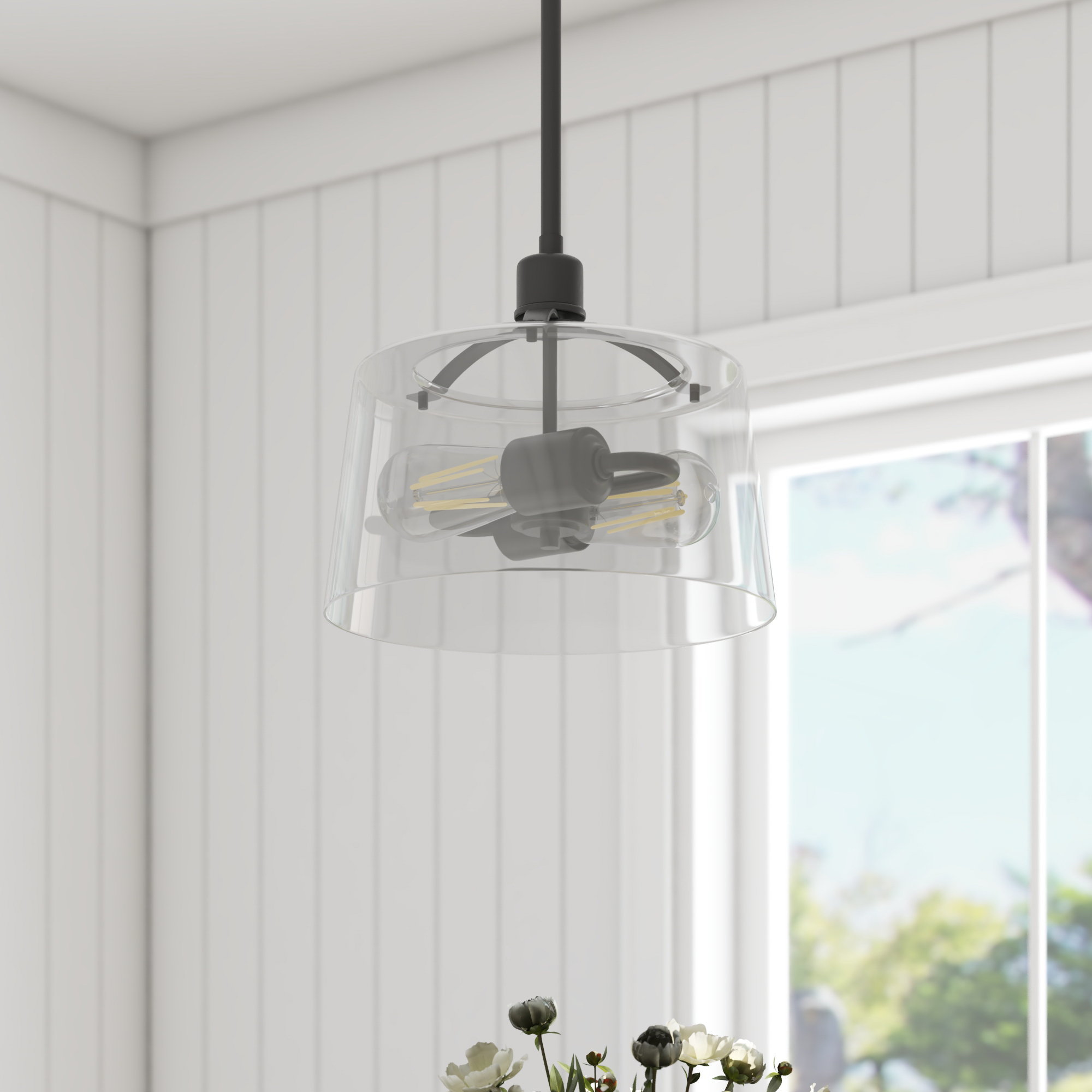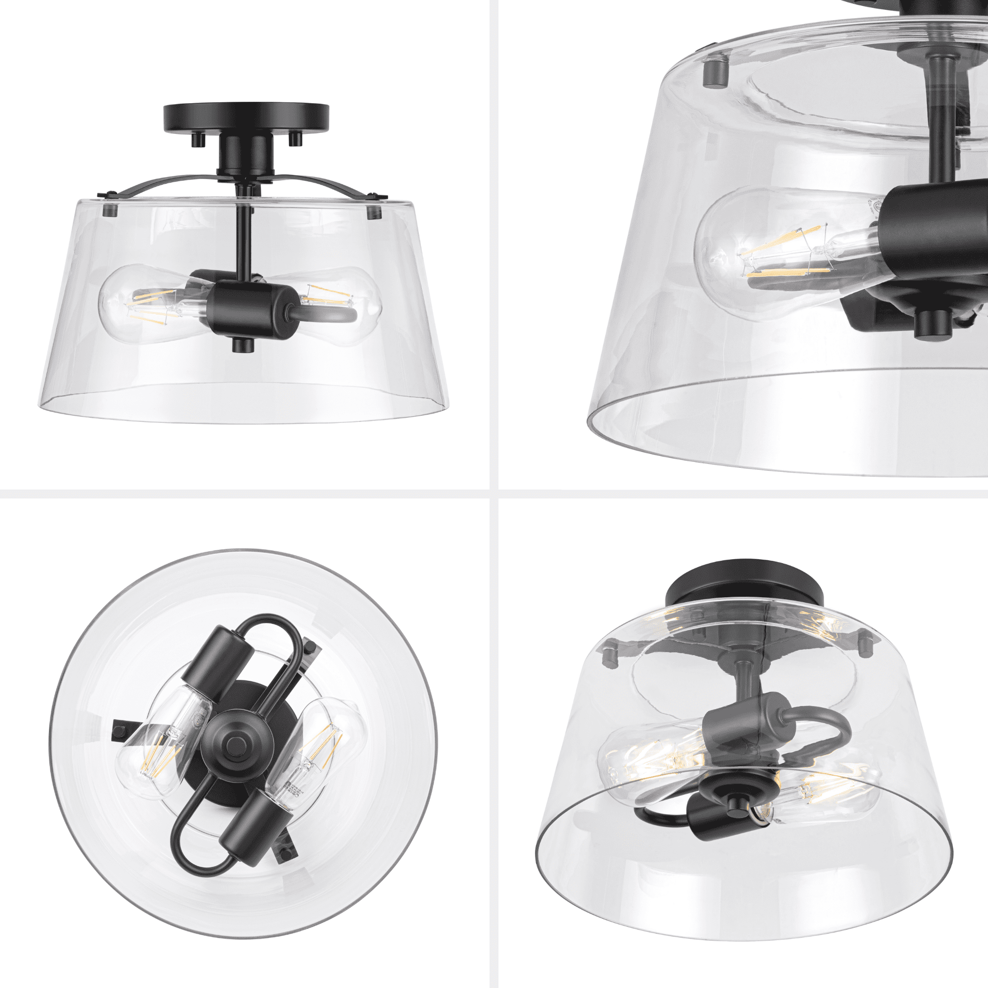 2-light convertible fixture can be installed as a pendant or semi-flush light Create a cohesive look in your home with coordinating fixtures from the Fairendale lighting collection Great as semi-flush in hallway, kitchen or bathroom and hanging over a kitchen island or an entryway Contemporary / modern styling in trending matte black finish with one large clear glass light cover 2-light convertible pendant / Semi-Flush mount uses medium base (E26) incandescent / LED (AC or DC) / CFL bulbs (not included) Measures 8-in H x 12-in W Includes (4) 12-in rods and (2) 6-in rods for customizable hanging length UL / CUL listed