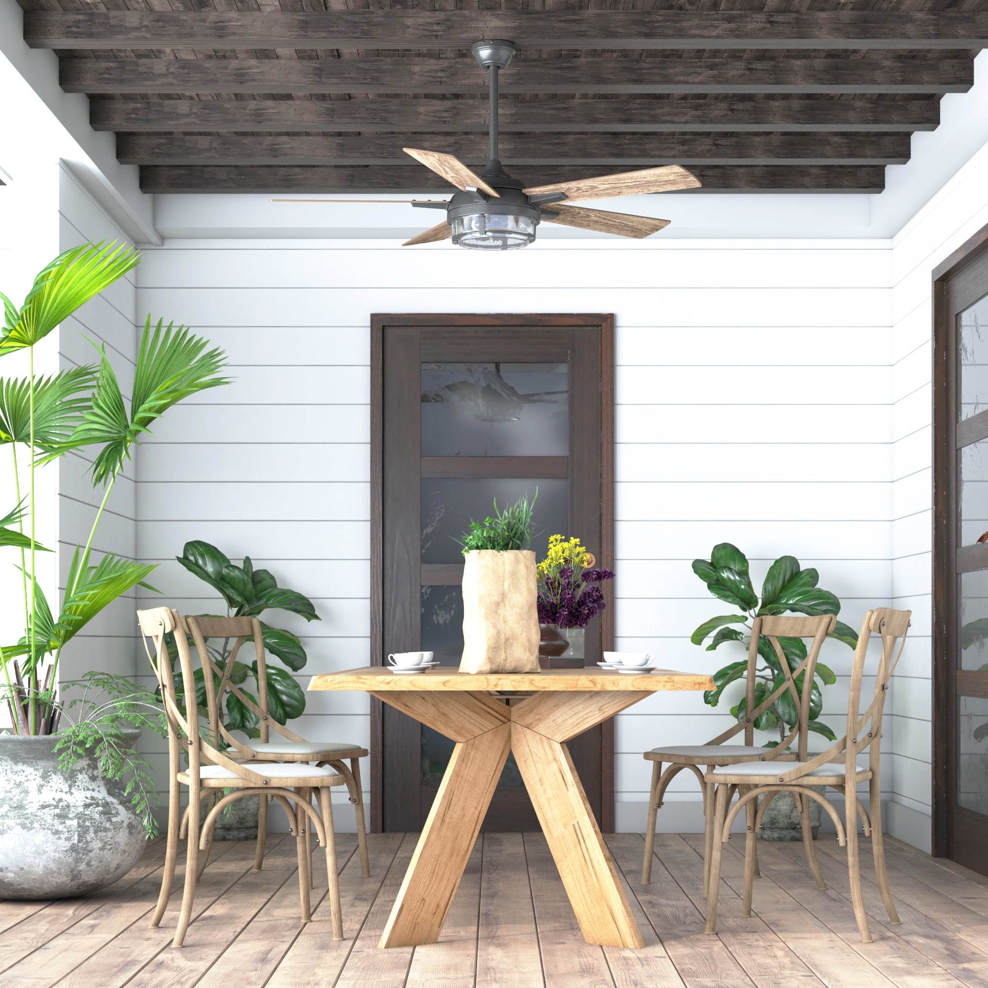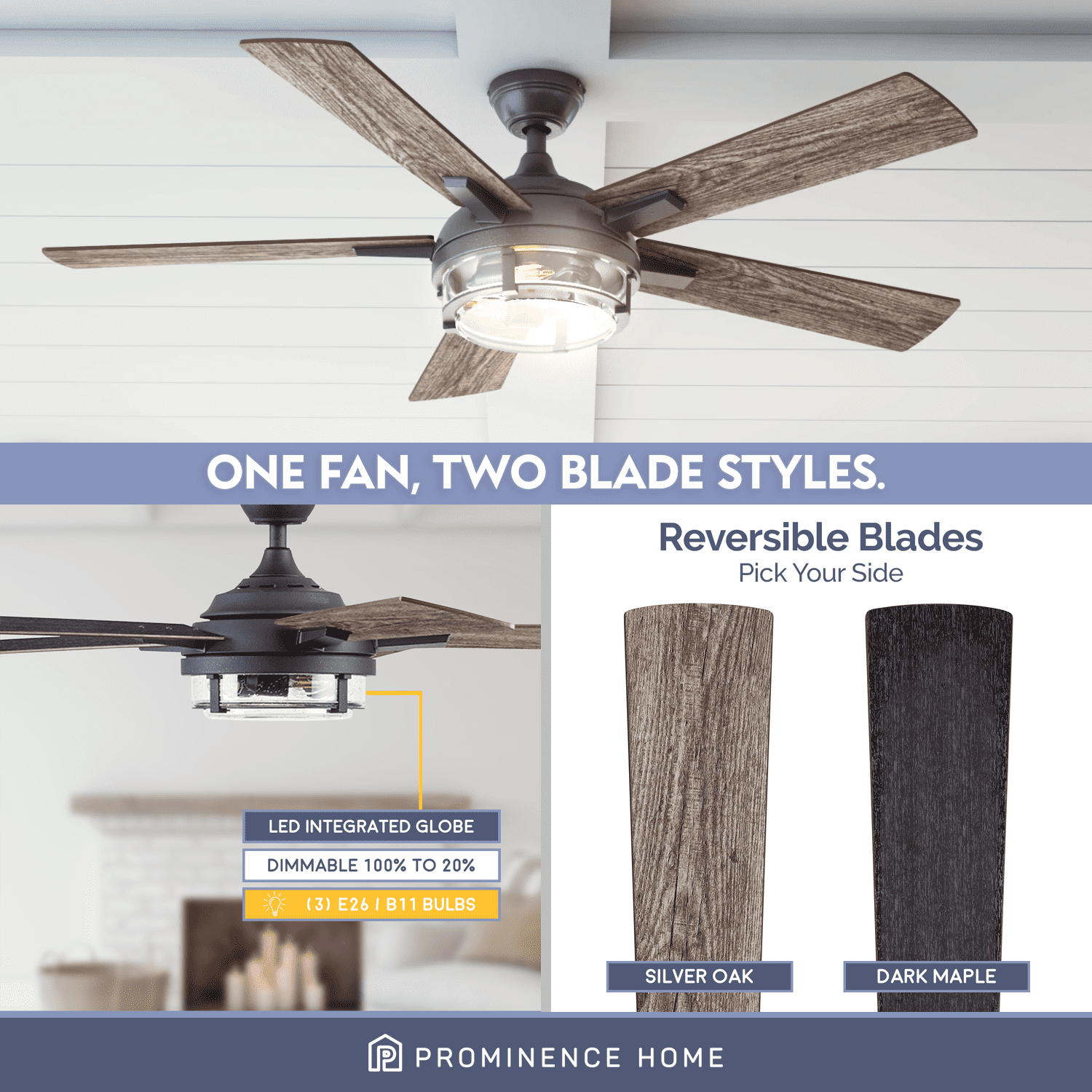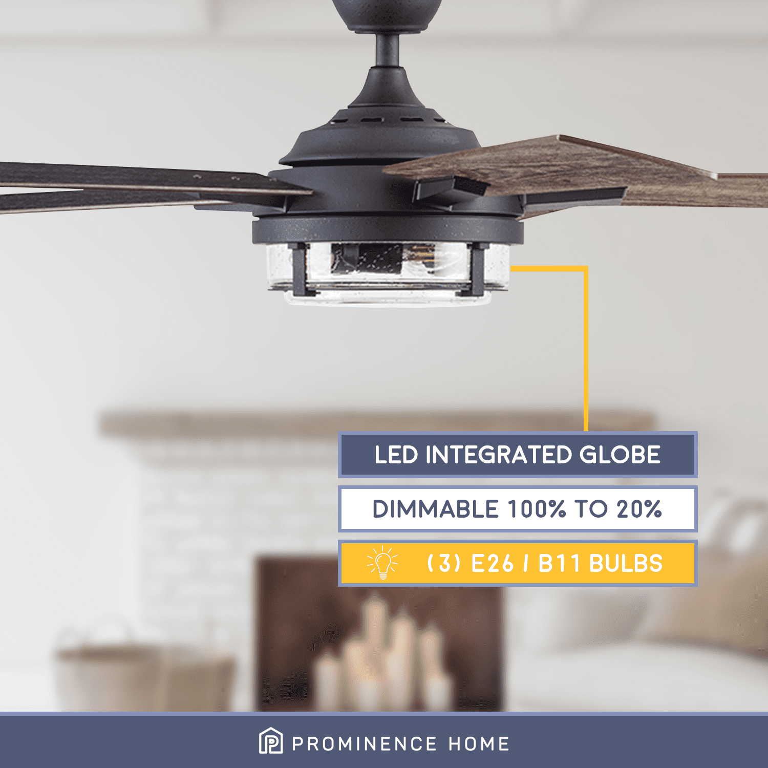 MISSION CRAFTSMAN: The Freyr features beautiful details and inspired design perfect to elevate your indoor and outdoor spaces. Having a blade span of 52 inches, this fan is perfect for medium to large rooms such as bedrooms, living rooms, dining rooms and much more! EDISON BULBS & CLEAR SEEDED GLASS: This beautiful lantern-inspired light has the power to light up an outdoor space but also dimmable to adjust to whatever suits your moods! This light kit features E26/B11 bulbs (included with purchase), 500 lumens and 5.5 watts and has a color temperature is 2700K – more than capable of lighting up your beautiful spaces. DUAL MOUNT COMPATIBLE: This fan can be hung by the standard downrod mount, 4” downrod included, or on angled ceilings (angle bracket for angles greater than 17 degrees sold separately)