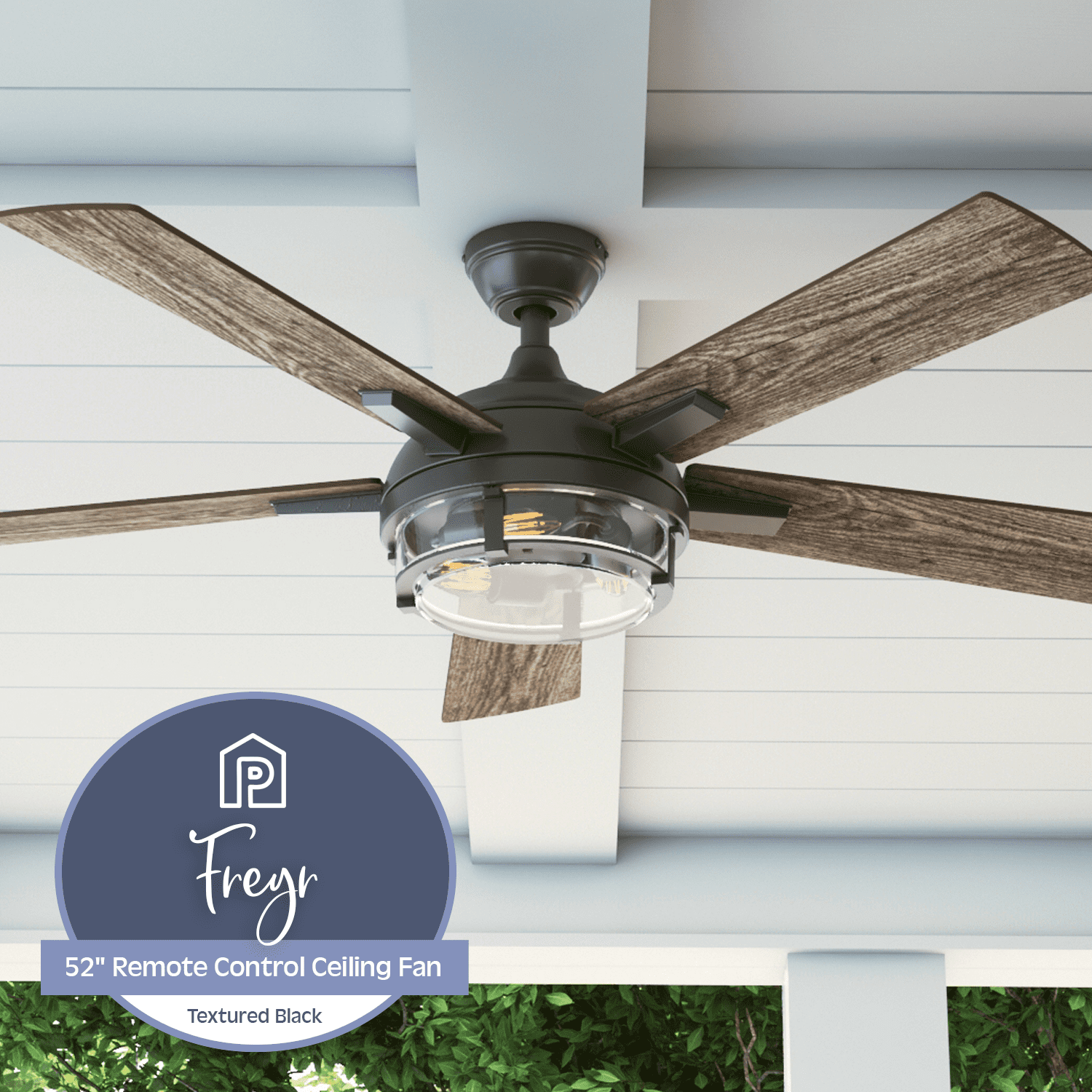 Prominence Home Freyr 52″ Black Indoor/Outdoor Ceiling Fan with Light, 5 Blades, Remote & Reverse Airflow