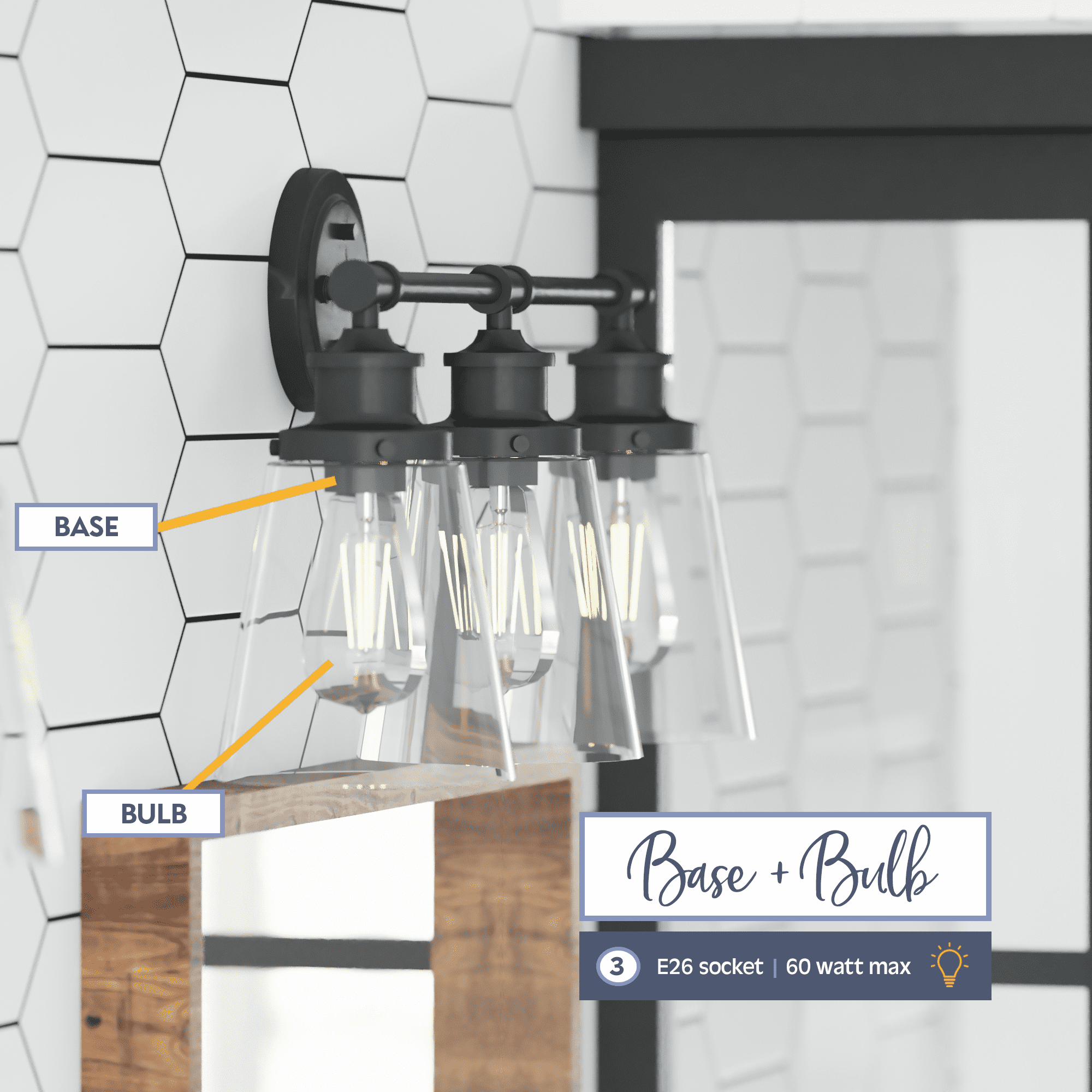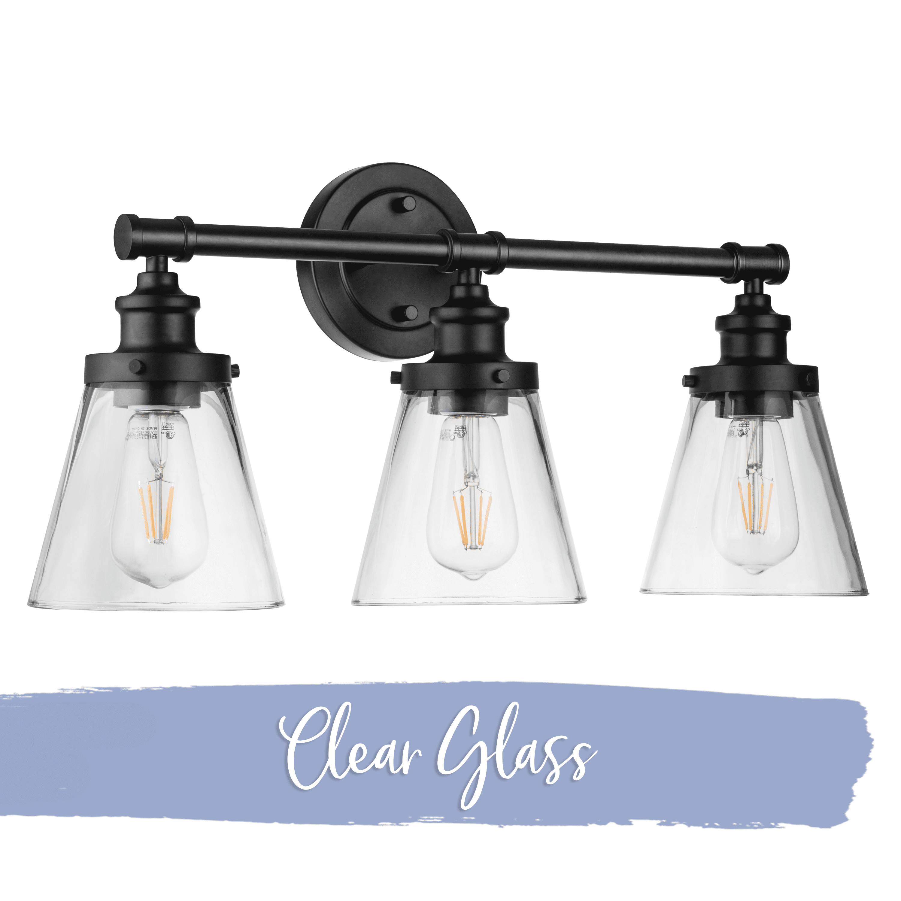 This matte black fixture with clear glass is compatible with a dimmer switch (not included), allowing you to adjust the light to fit your needs. This eye-catching light fixture is damp-rated and perfect for those high-moisture spaces. Bring modern style and beautiful illumination to your home. This fixture uses E26/Medium (Standard) bulbs (not included). The manufacturer recommends not to exceed 60w.