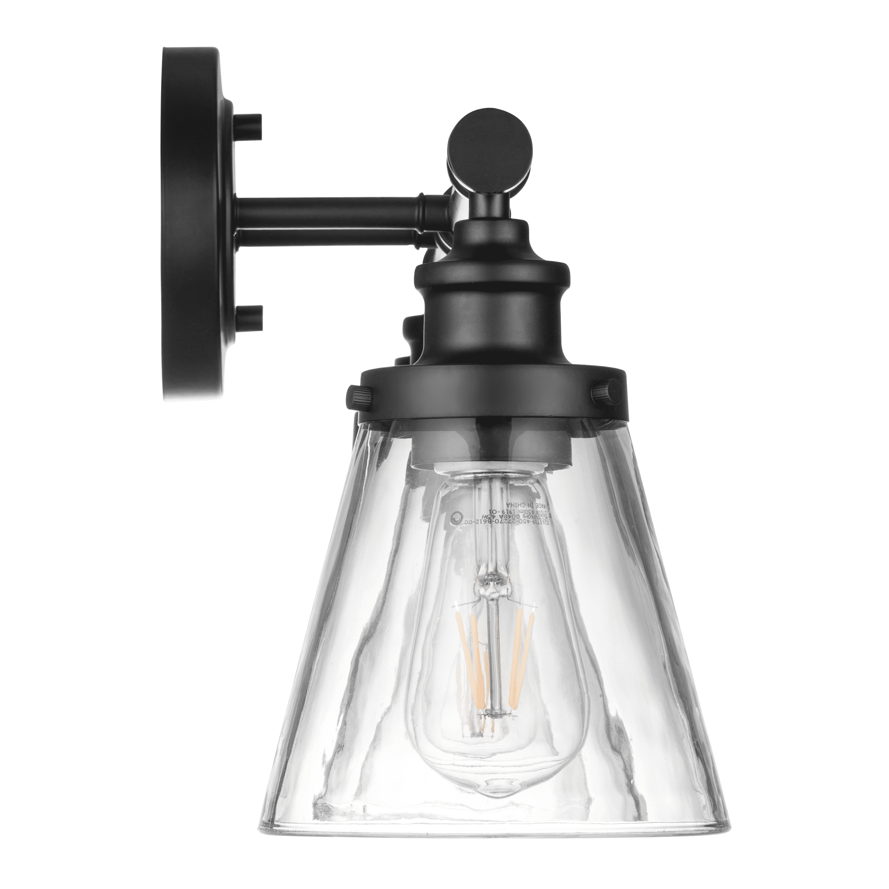 The Prominence Home Helenah is an eye-catching vanity light featuring a sleek circular metal wall mount and a clear, conical glass shade to provide bright light where you need it most. This steel crafted bath sconce allows for installation in both an upwards and downwards position, the choice is yours. It’s matte black finish and modern design is available in 3 different sizes, allowing you to provide your room with the perfect glow. Helenah bath light fixture comes with comprehensive instructions and a troubleshooting manual making it easy to have installed in no time!