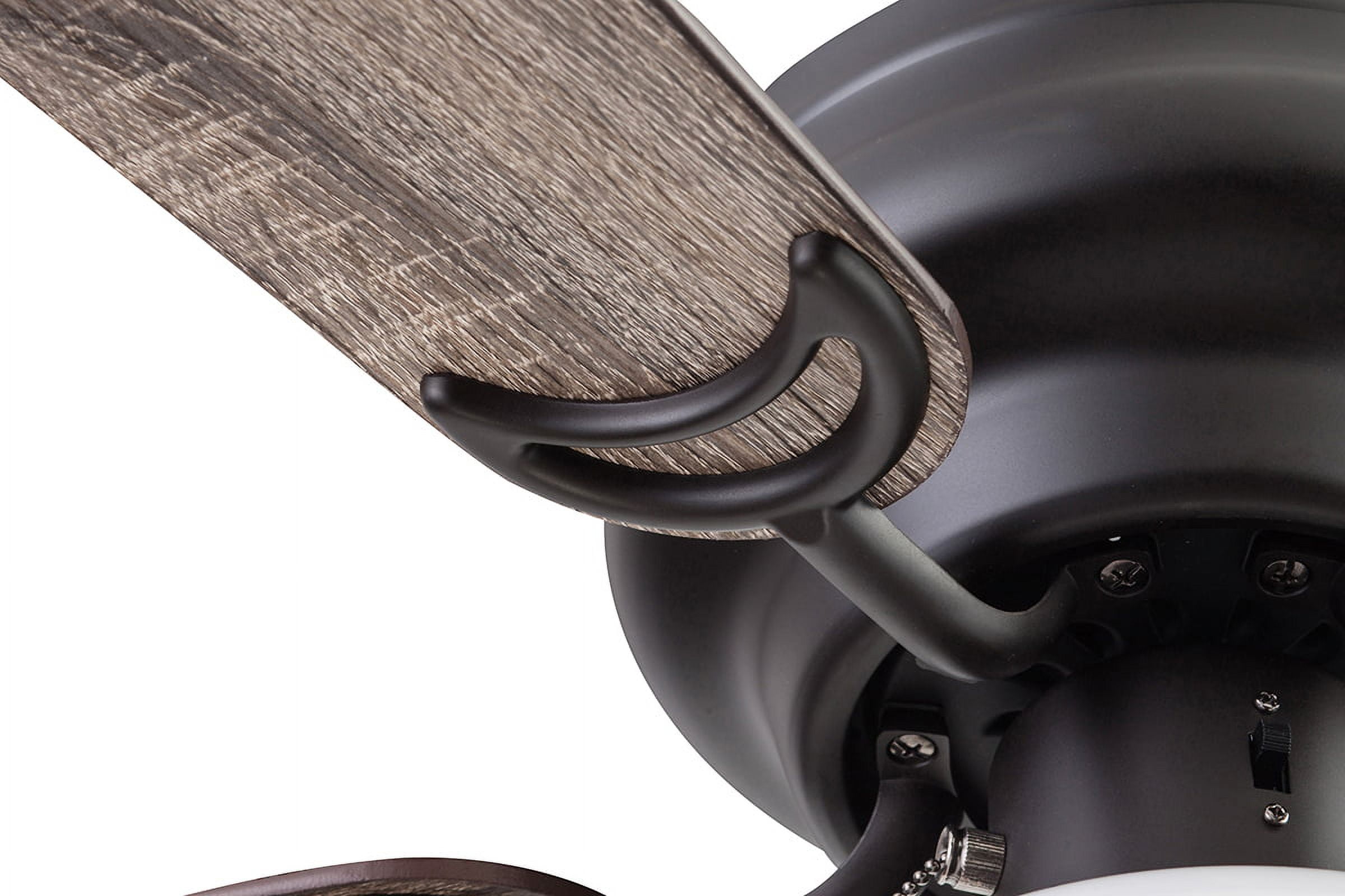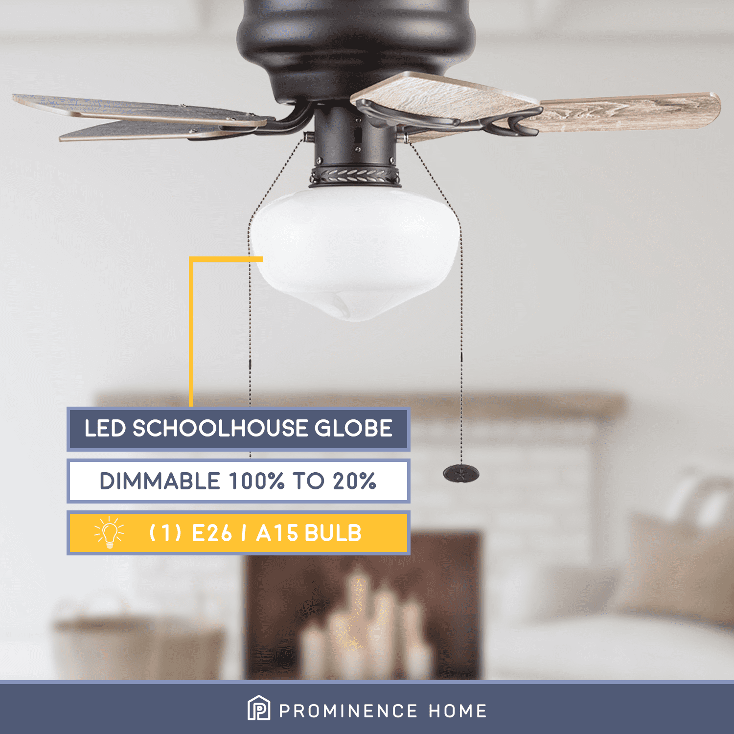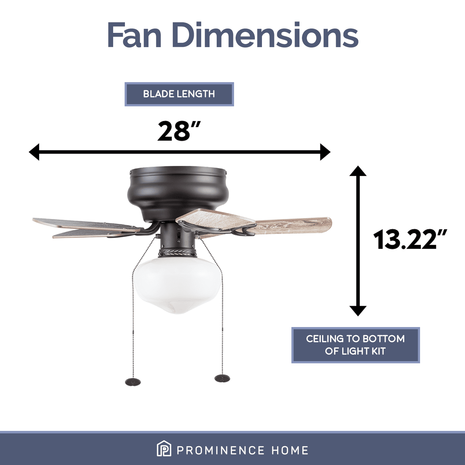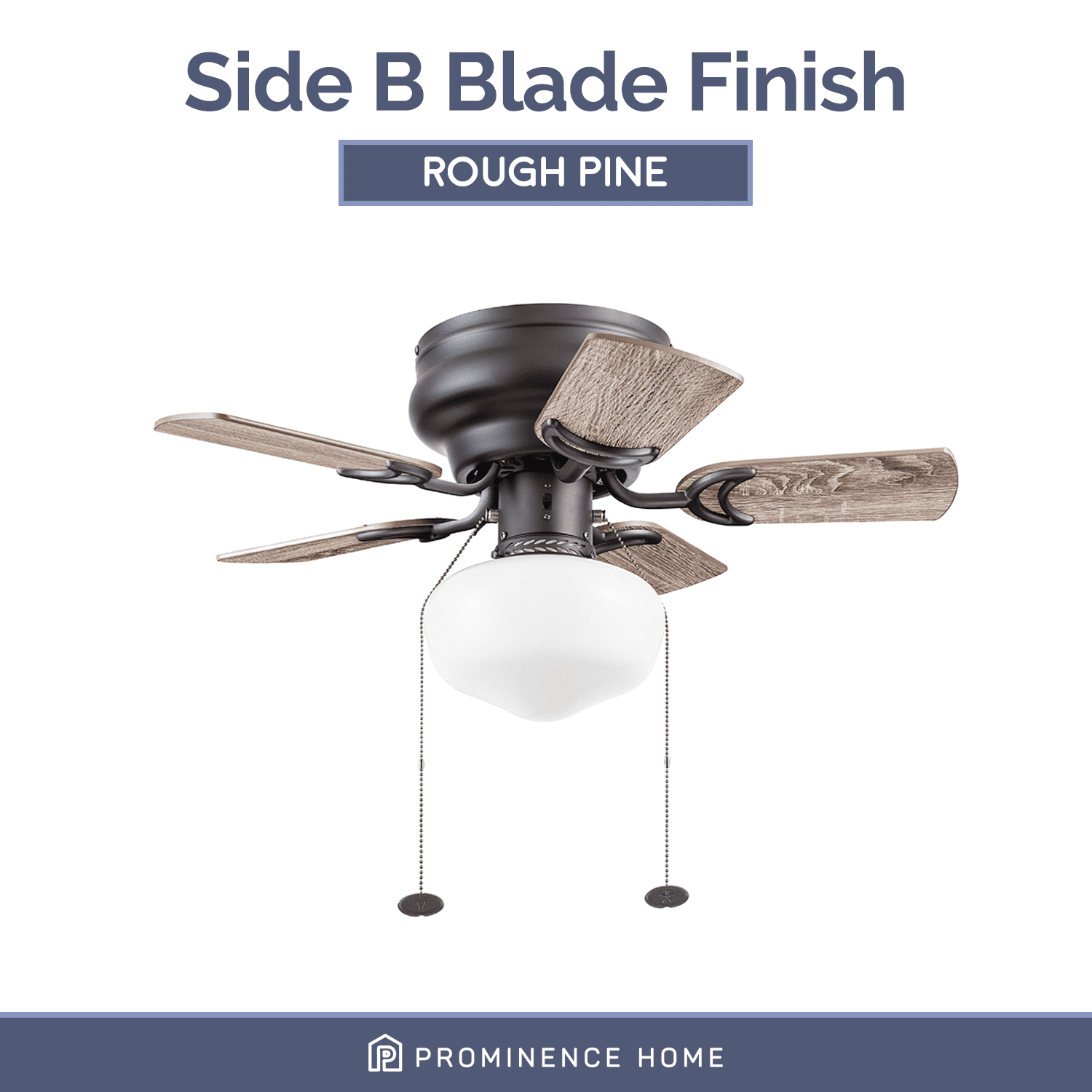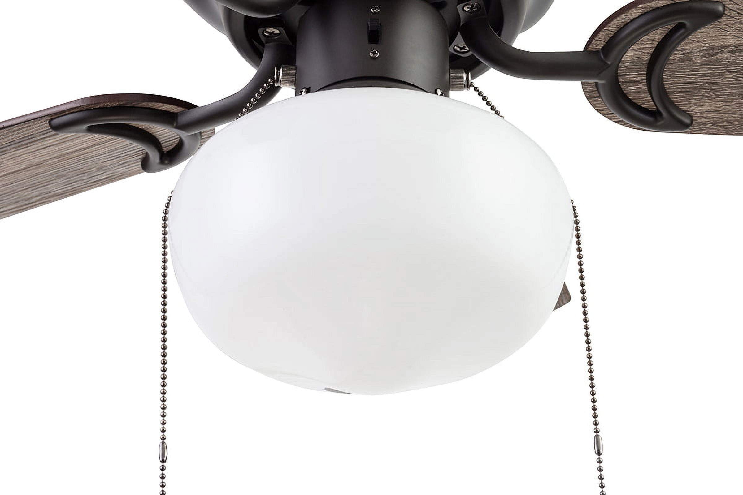 SMALL ROOM FAN: Having a fan diameter of 28 inches, this fan is perfect fit for small stylish rooms. SCHOOLHOUSE GLOBE LIGHT: Illuminate your space with the beautiful opal white glossy globe featuring E26/ A19 LED lighting (included with purchase). This ceiling fan is 800 lumens, 8.85 watts and 94 lumens per watt. The color temperature is 3000K and it is dimmable 20% to 100%. EASY TO USE: Pull Chains included for quick and easy on and off adjustments. LOW PROFILE DESIGN: Hugger ceiling fan, built for rooms where extra space is needed. REVERSIBLE BLADES: One side comes in a beautiful black pine finish, while the other side showcases a lovely rough pine finish.