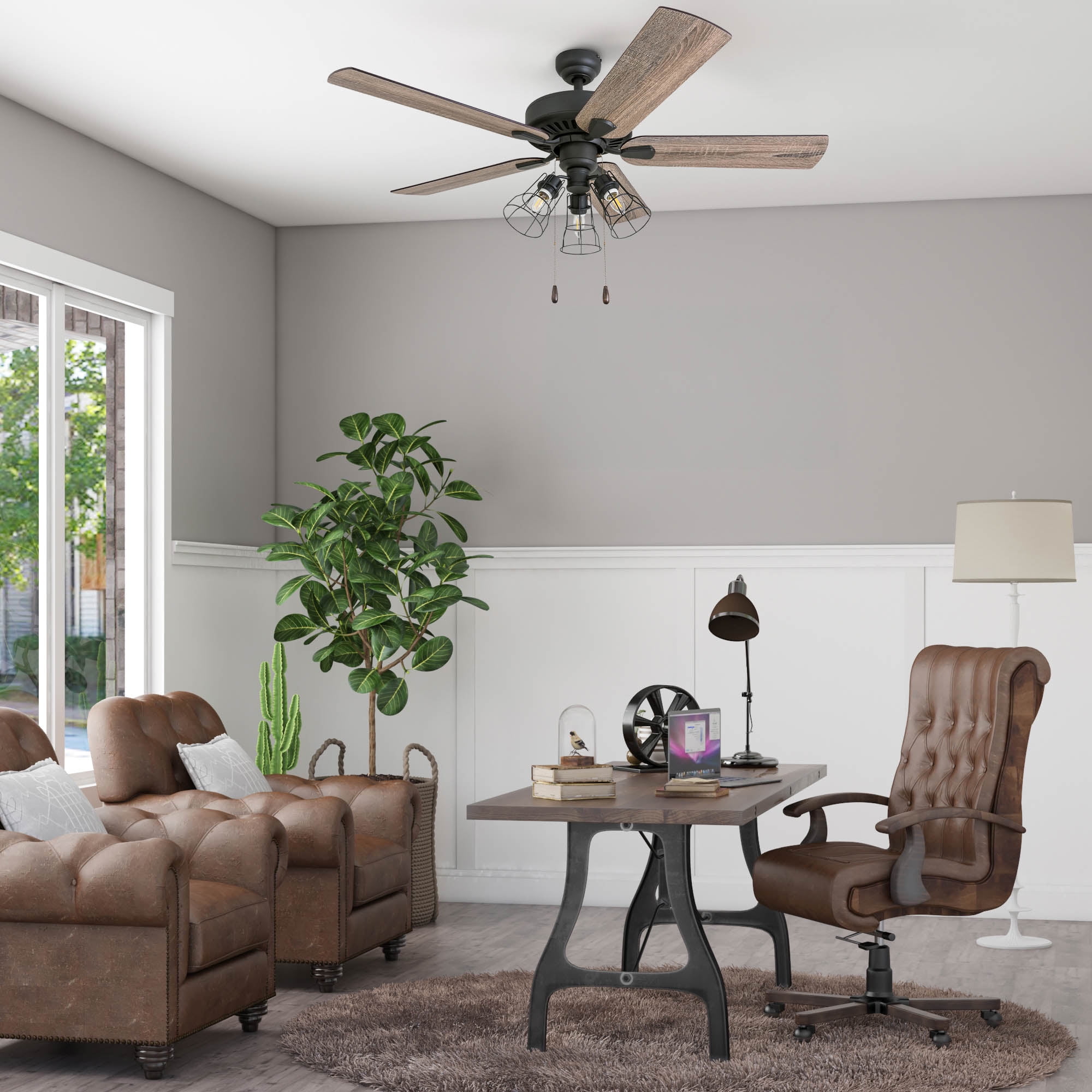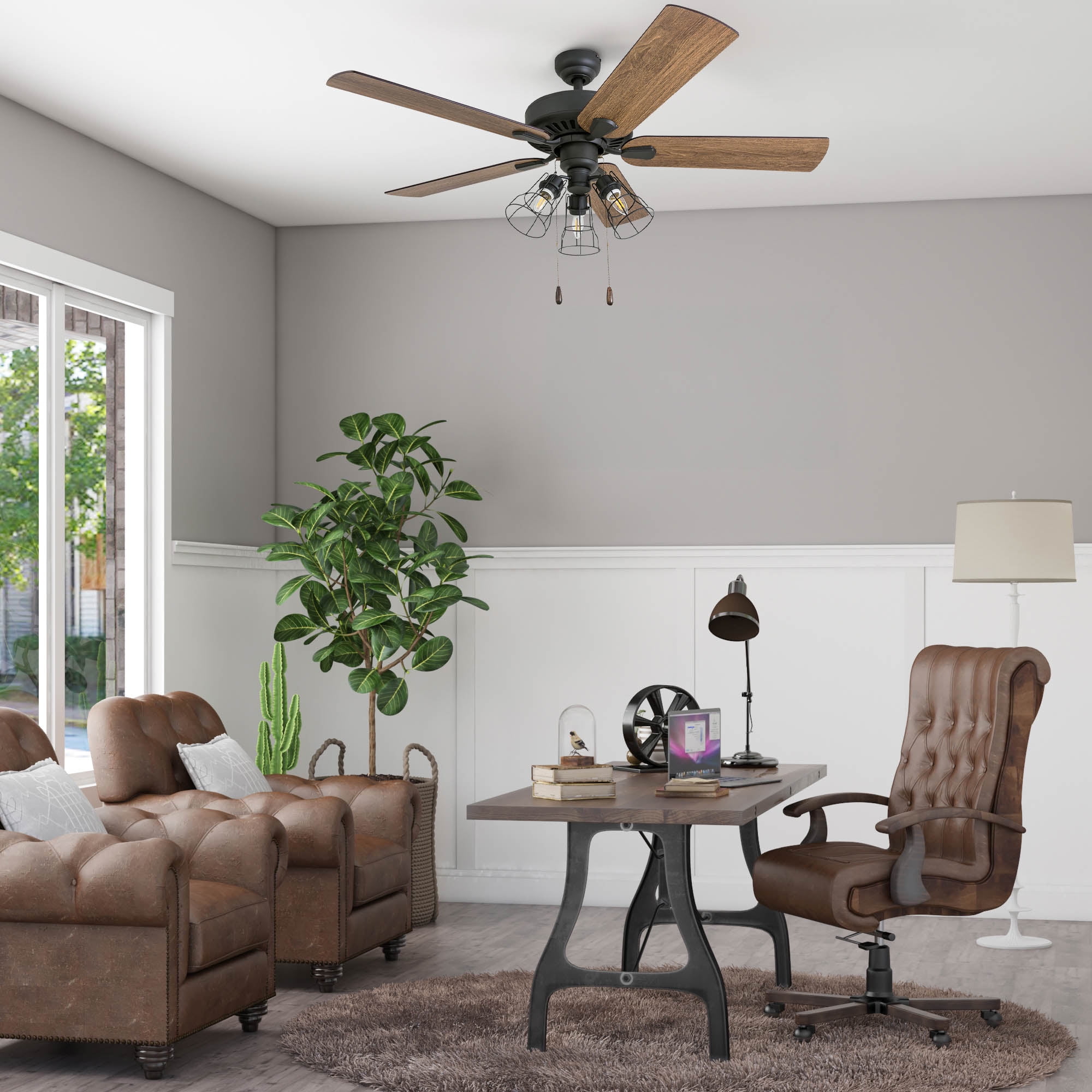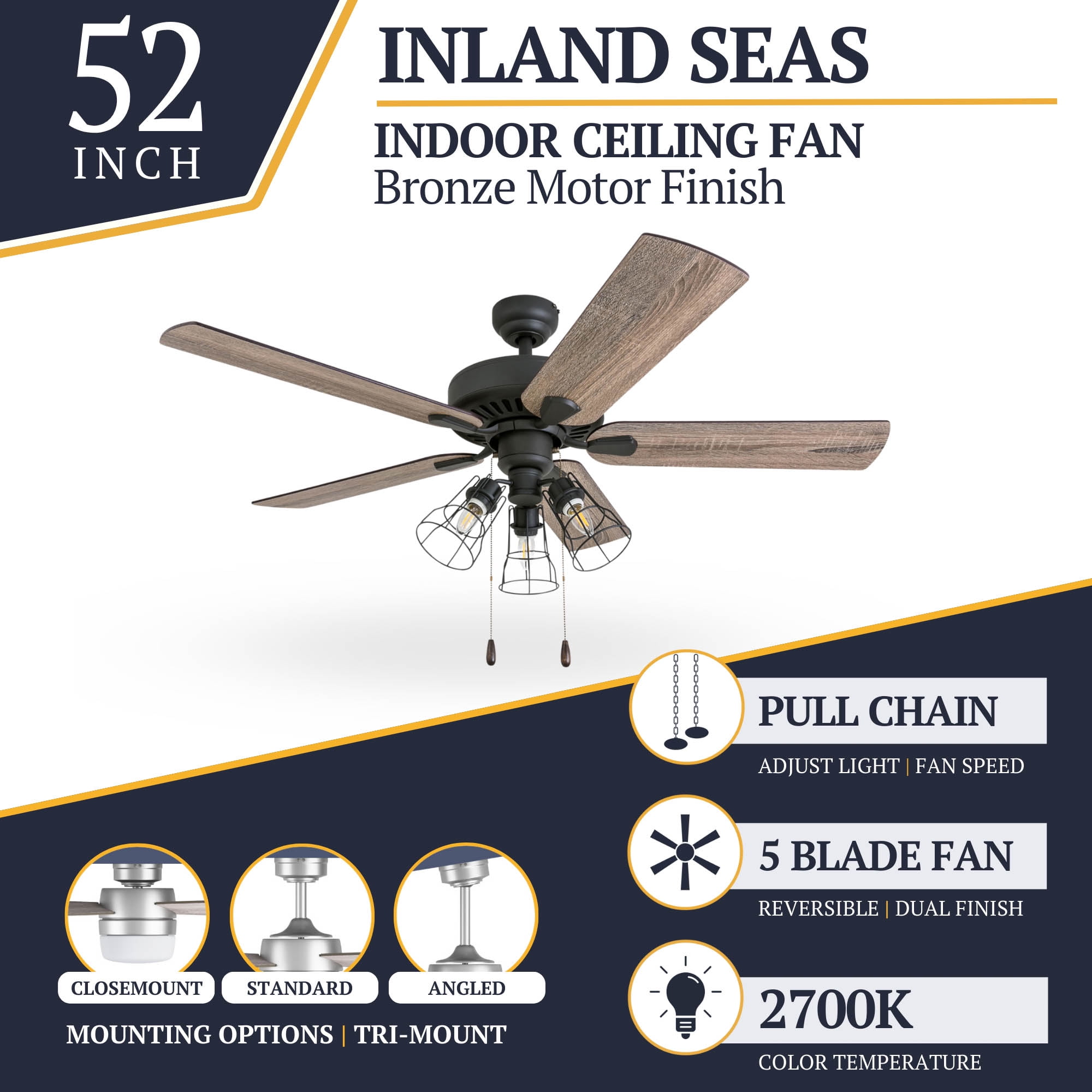 Prominence Home Inland Seas 52″ Bronze Farmhouse Ceiling Fan with 5 Blades, 3 Arm Cage Light Kit, Pull Chains & Reverse Airflow
