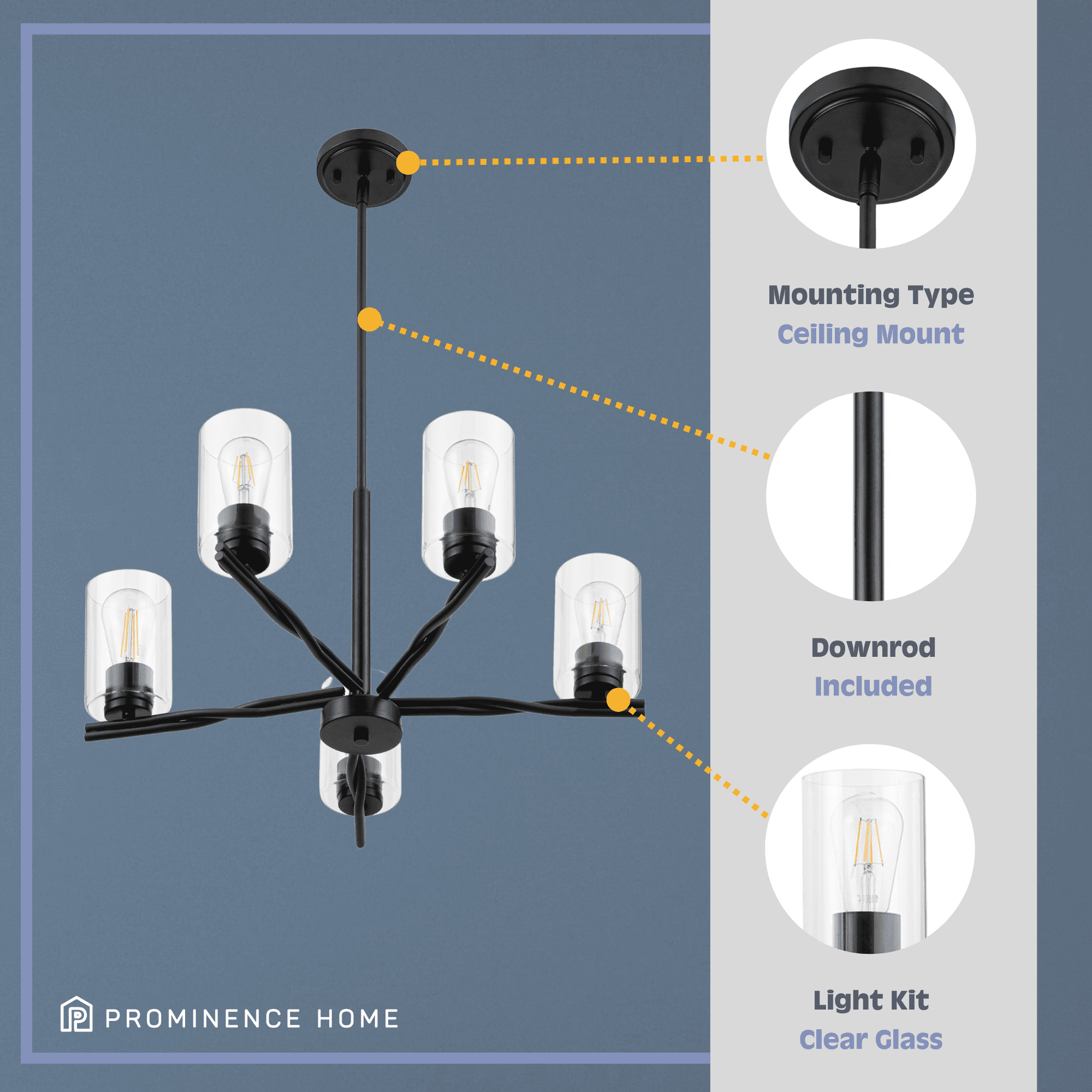 Prominence Home Lantier Matte Black 5-Light Chandelier with Clear Glass