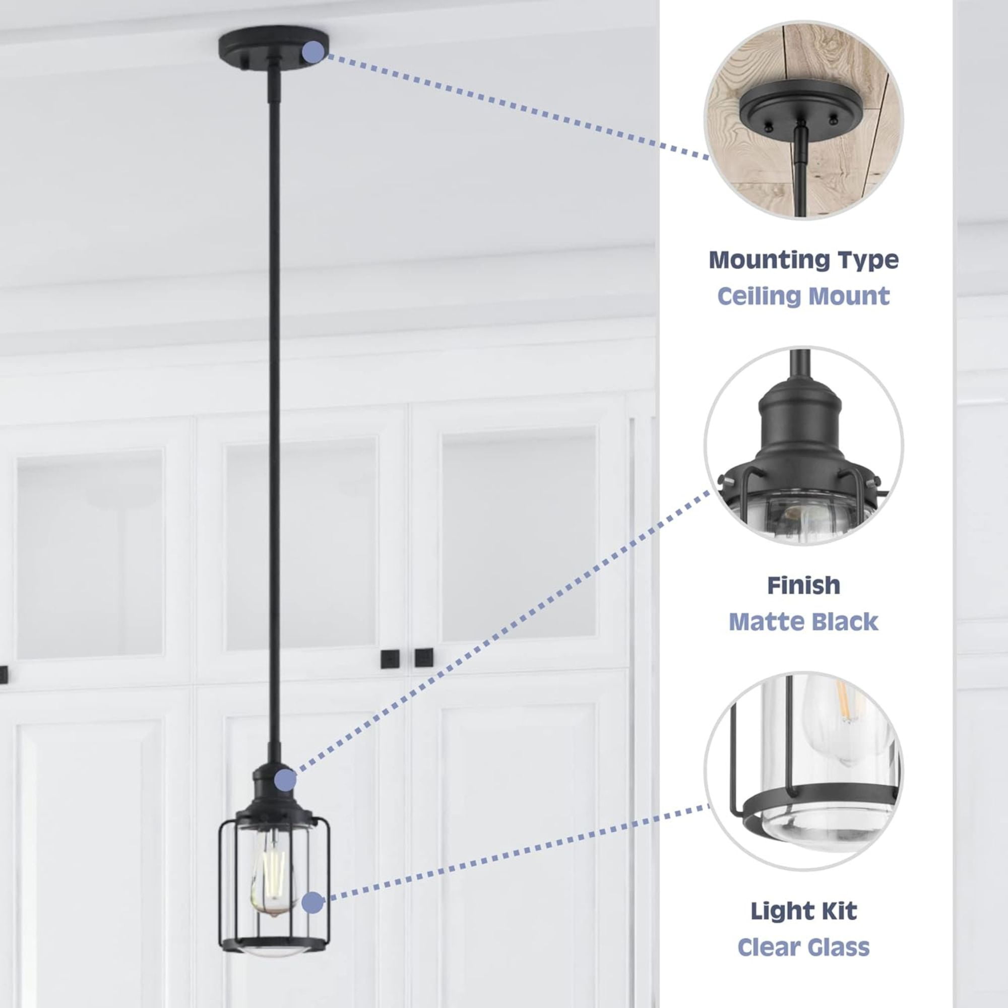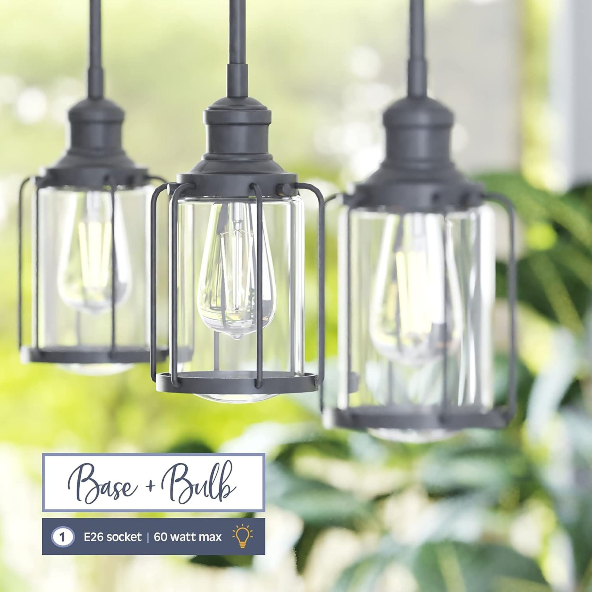 Matte black finish with mixed media accents adds bold industrial flair and timeless vintage charm to kitchens, dining areas, and more Features 1 exposed socket compatible with E26/Medium (Standard) bulbs (60W max, not included), perfect for creating warm, inviting light Comes with comprehensive instructions and a troubleshooting manual for hassle-free setup—great for DIYers and professionals alike Damp-rated for indoor or outdoor use only, ensuring safety and optimal performance in any room throughout your home—from your kitchen and dining room to outside areas that are covered Linear pendant silhouette provides wide, even lighting coverage while serving as a bold, eye-catching centerpiece