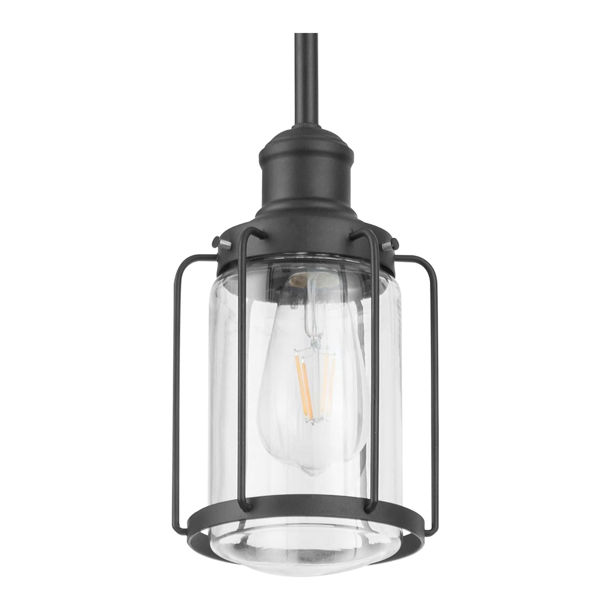 Prominence Home Lincoln Woods Industrial Matte Black LED Pendant Light with Clear Glass Shade