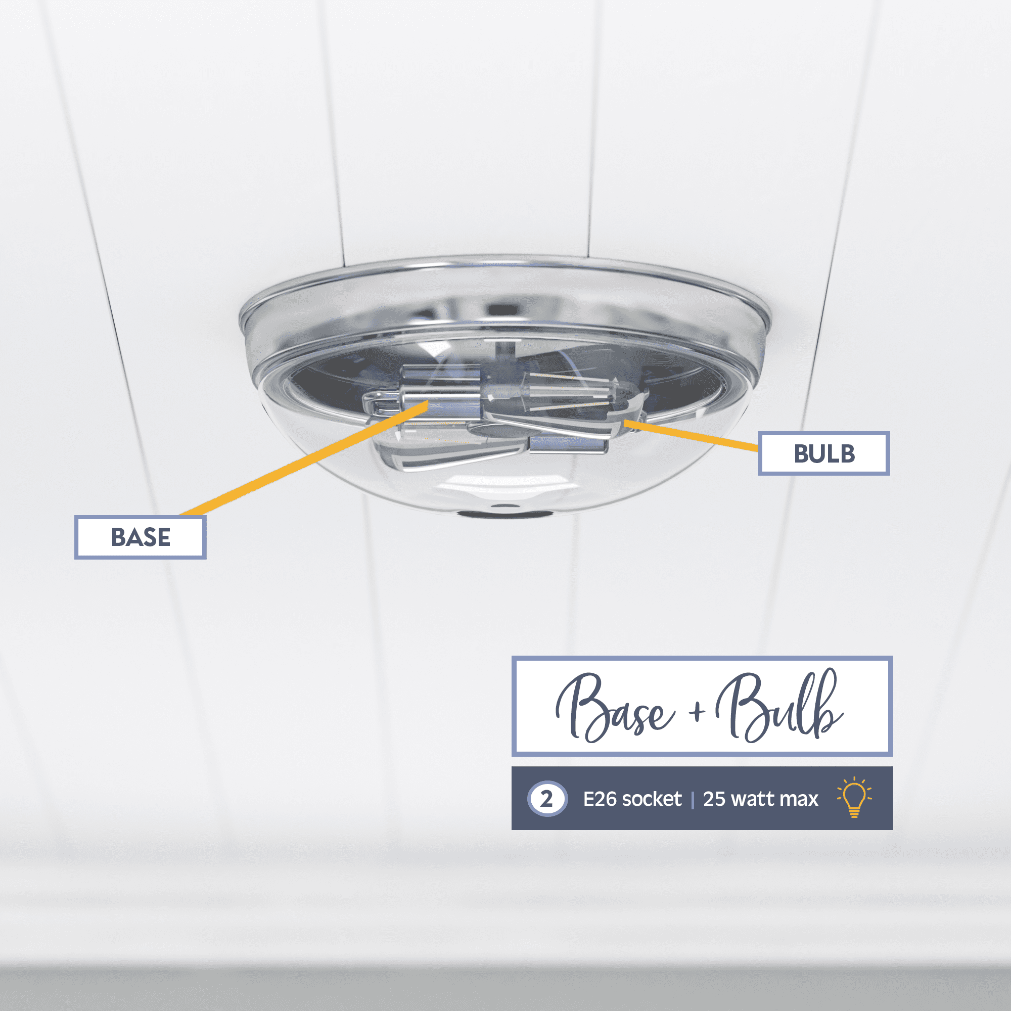 This beautifully crafted, clean-lined fixture will beautifully light your stylish spaces This eye-catching light fixture is damp-rated and perfect for those high-moisture spaces. Bring modern style and beautiful illumination to your home. This fixture uses E26/Medium (Standard) bulbs (not included). The manufacturer recommends not to exceed 25w.