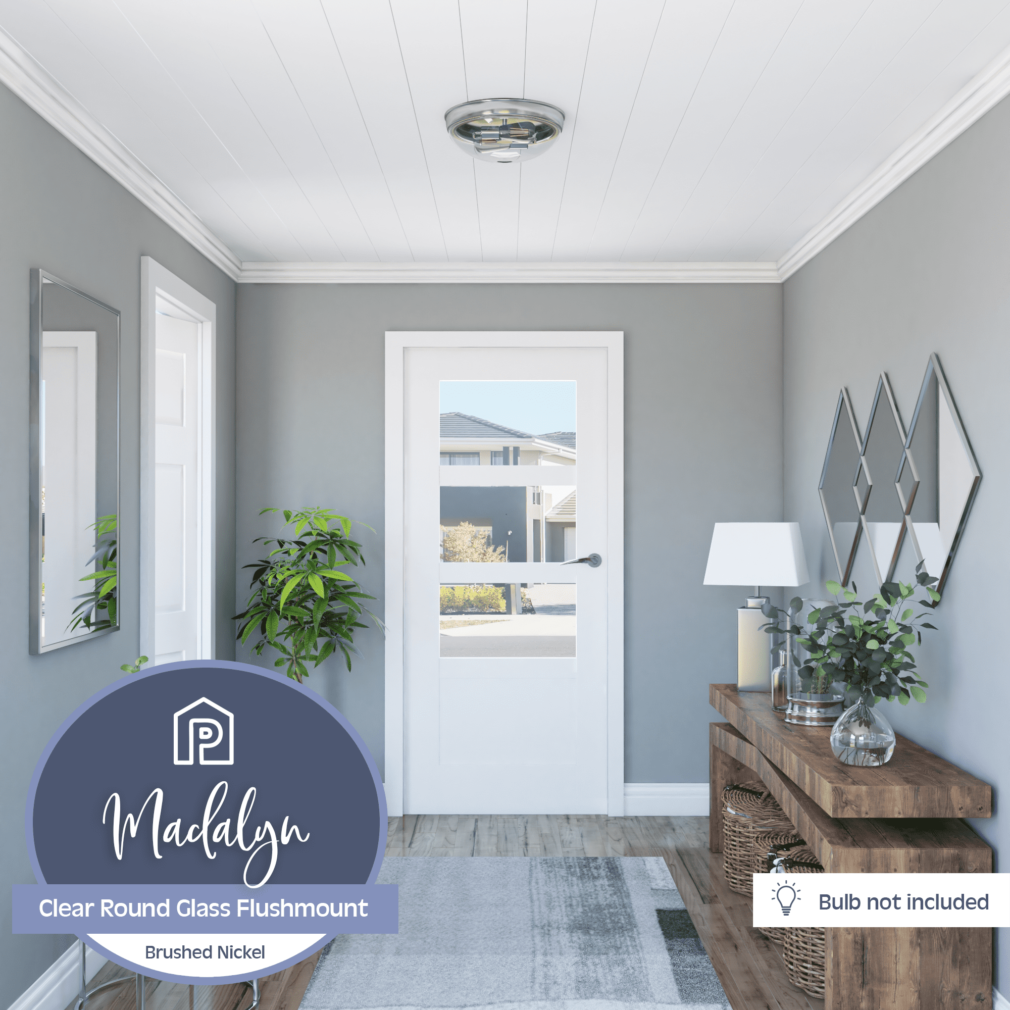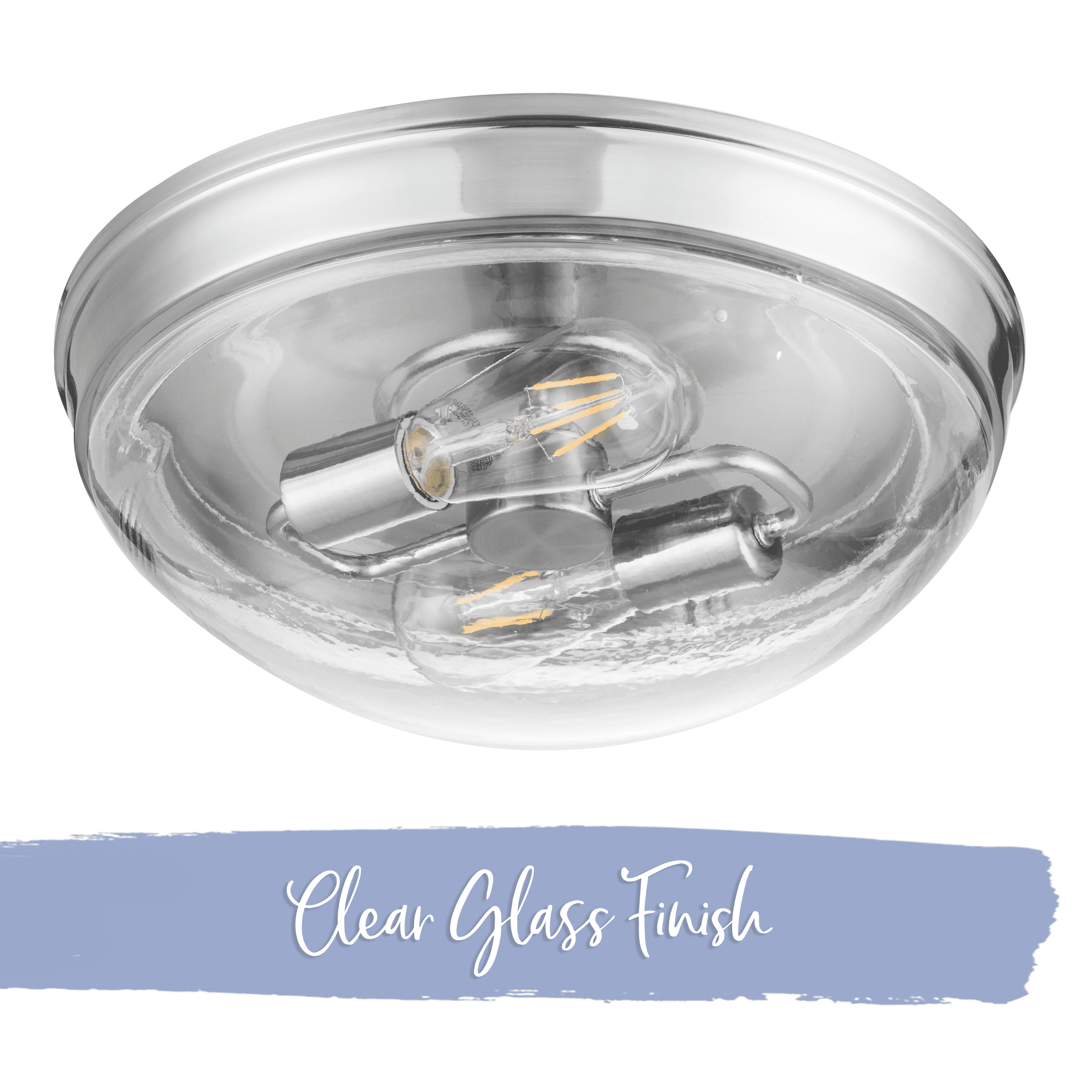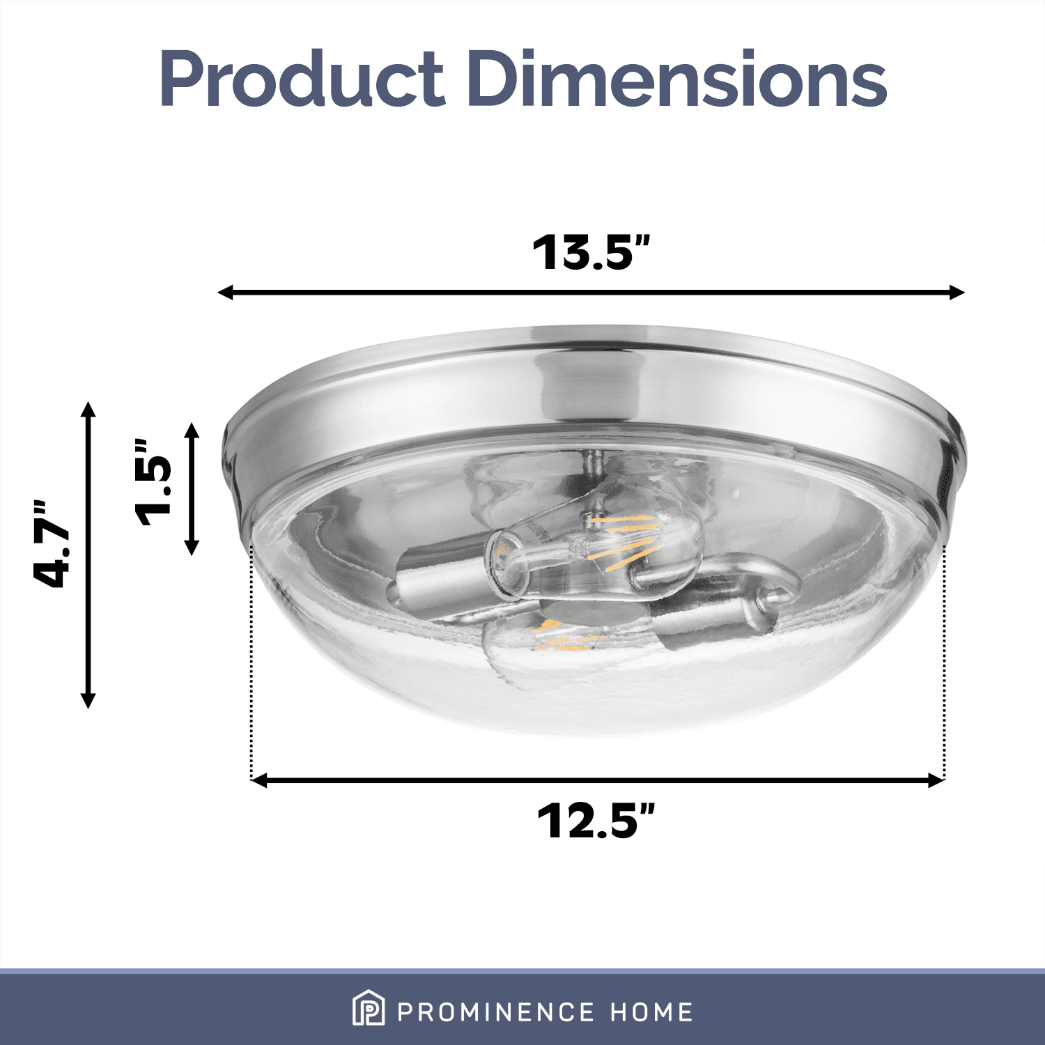 The Prominence Home Madalyn boasts a domed glass shade and a sleek, streamlined design built to complement a variety of styles. The beautiful clear glass of this two-light flush mount fixture provides a beautiful radiant glow where you need it most. Available in brushed nickel or matte black, this fixture will elevate and illuminate your space! This beautifully crafted, clean-lined fixture will beautifully light your stylish spaces This light fixture comes with comprehensive instructions and a troubleshooting manual making it easy to have installed in no time! This eye-catching light fixture is damp-rated and perfect for those high-moisture spaces. Bring modern style and beautiful illumination to your home. Uses E26/Medium (Standard) bulbs (not included). The manufacturer recommends not to exceed 25w.