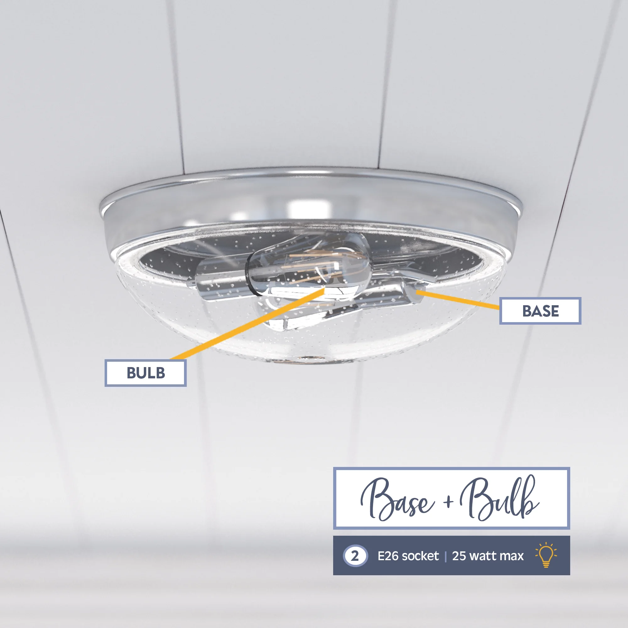 This beautifully crafted, clean-lined fixture will beautifully light your stylish spaces This eye-catching light fixture is damp-rated and perfect for those high-moisture spaces. Bring modern style and beautiful illumination to your home. This fixture uses E26/Medium (Standard) bulbs (not included). The manufacturer recommends not to exceed 25w.