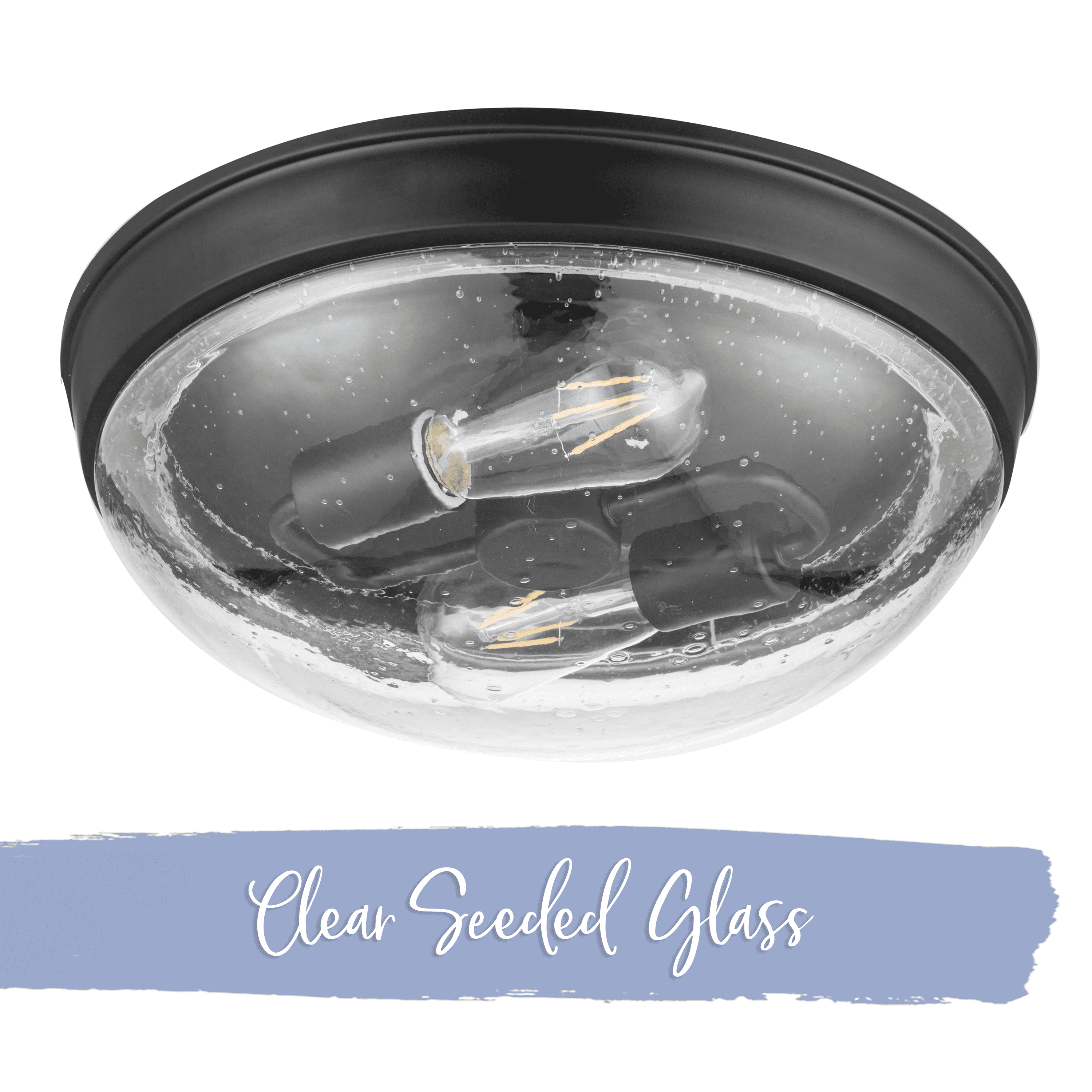 The Prominence Home Madalyn boasts a domed glass shade and a sleek, streamlined design built to complement a variety of styles. The beautiful clear seeded glass of this two-light flush mount fixture provides a beautiful radiant glow where you need it most. Available in brushed nickel or matte black, this fixture will elevate and illuminate your space! This beautifully crafted, clean-lined fixture will beautifully light your stylish spaces This light fixture comes with comprehensive instructions and a troubleshooting manual making it easy to have installed in no time! This eye-catching light fixture is damp-rated and perfect for those high-moisture spaces. Bring modern style and beautiful illumination to your home. This fixture uses E26/Medium (Standard) bulbs (not included). The manufacturer recommends not to exceed 25w.