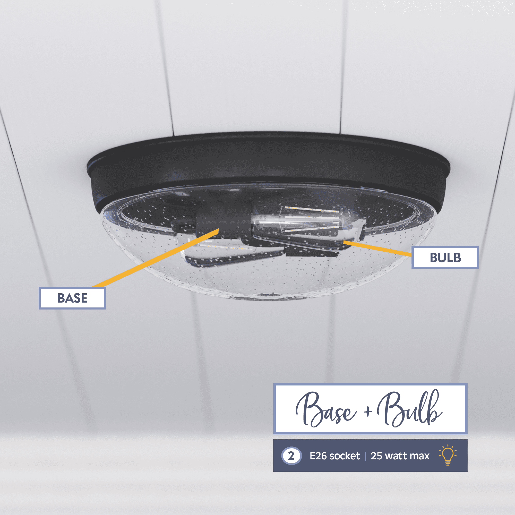 This beautifully crafted, clean-lined fixture will beautifully light your stylish spaces This eye-catching light fixture is damp-rated and perfect for those high-moisture spaces. Bring modern style and beautiful illumination to your home. This fixture uses E26/Medium (Standard) bulbs (not included). The manufacturer recommends not to exceed 25w.