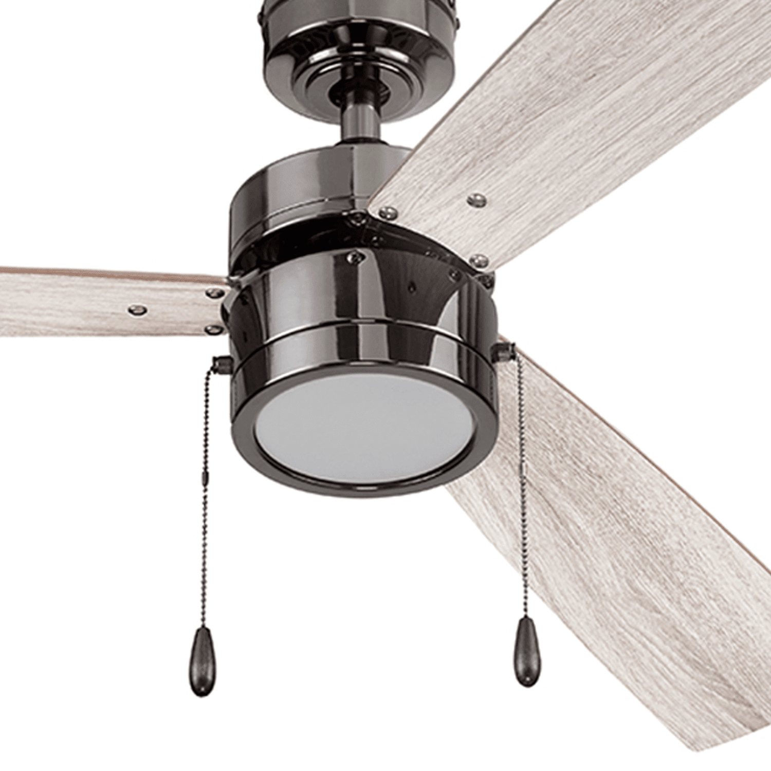 This 52-Inch Ceiling Fan with a quiet, reversible motor is the perfect addition to any room, providing a peaceful indoor environment year-round. The 3-speed reversible motor offers versatile performance, keeping you cool in the summer and circulating warm air in the winter to help reduce energy costs. Ideal for spaces up to 350 square feet, it’s perfect for living rooms, bedrooms, dining rooms, and family rooms. Included with the fan are energy-efficient LED bulbs to brighten up any room in the home or office space while offering long-lasting illumination. The fan is specifically designed for rooms with low ceilings, ensuring optimal air circulation without taking up valuable space. It also features reversible blades in gray oak and light oak, allowing it to seamlessly blend with your existing decor. With a pull chain control for easy operation, this fan is crafted from a combination of wood, glass, and metal in a sleek brushed nickel finish. The fan measures 52 inches long, making it a compact and stylish solution for medium-sized rooms. Installation can be completed in 45 to 60 minutes. Enjoy comfort, energy savings, and stylish, sleek design all in one with this Indoor Ceiling Fan with Quiet, Reversible Motor from Portage Bay, designed to fit your space and enhance your home’s decor.