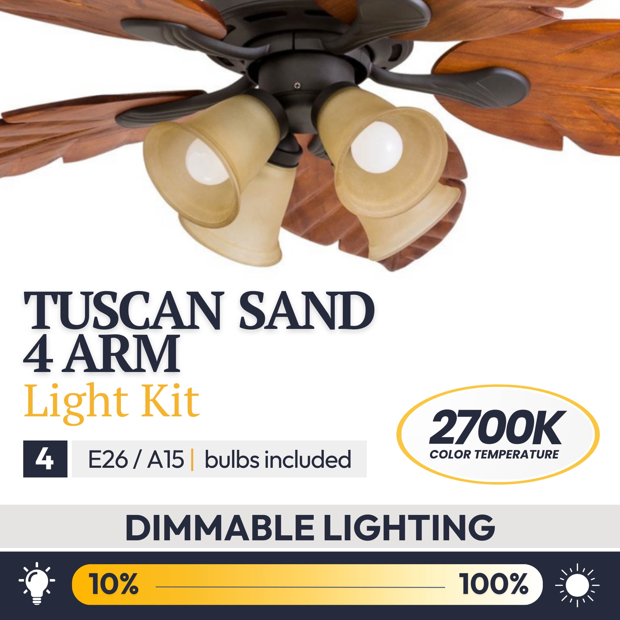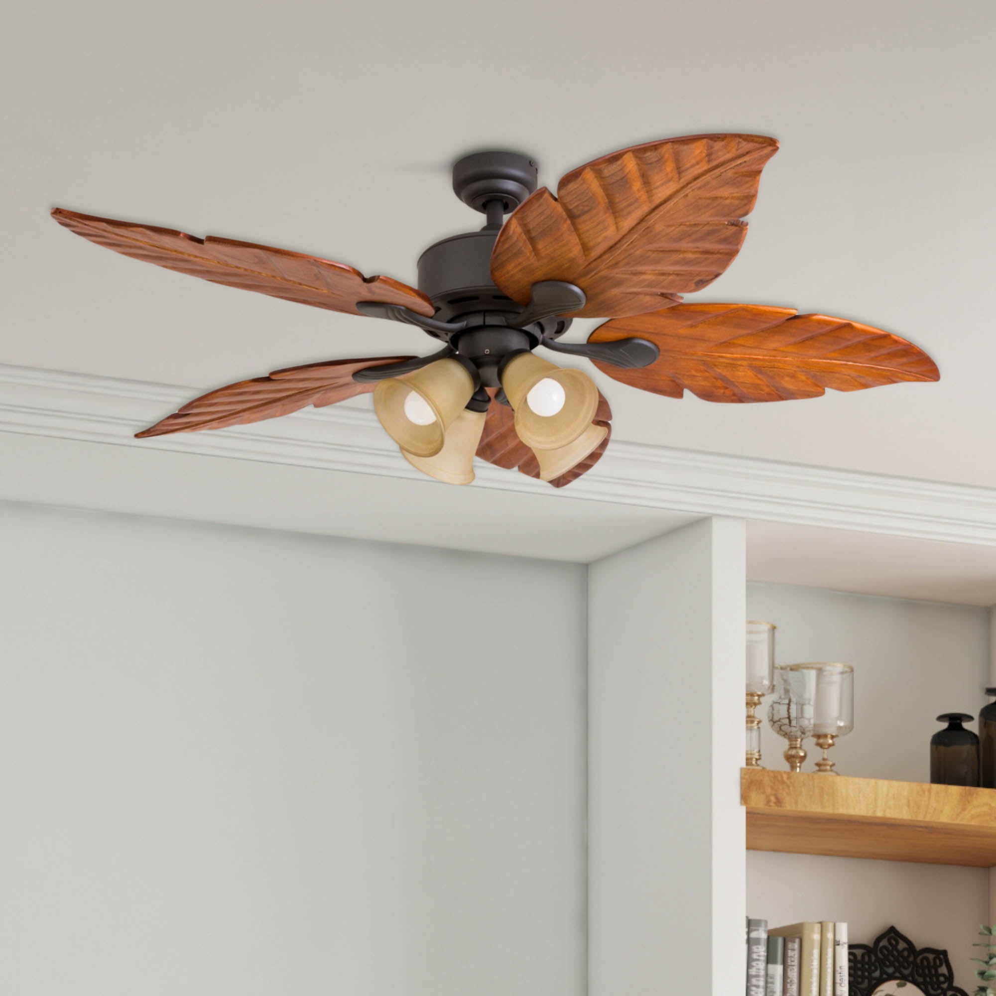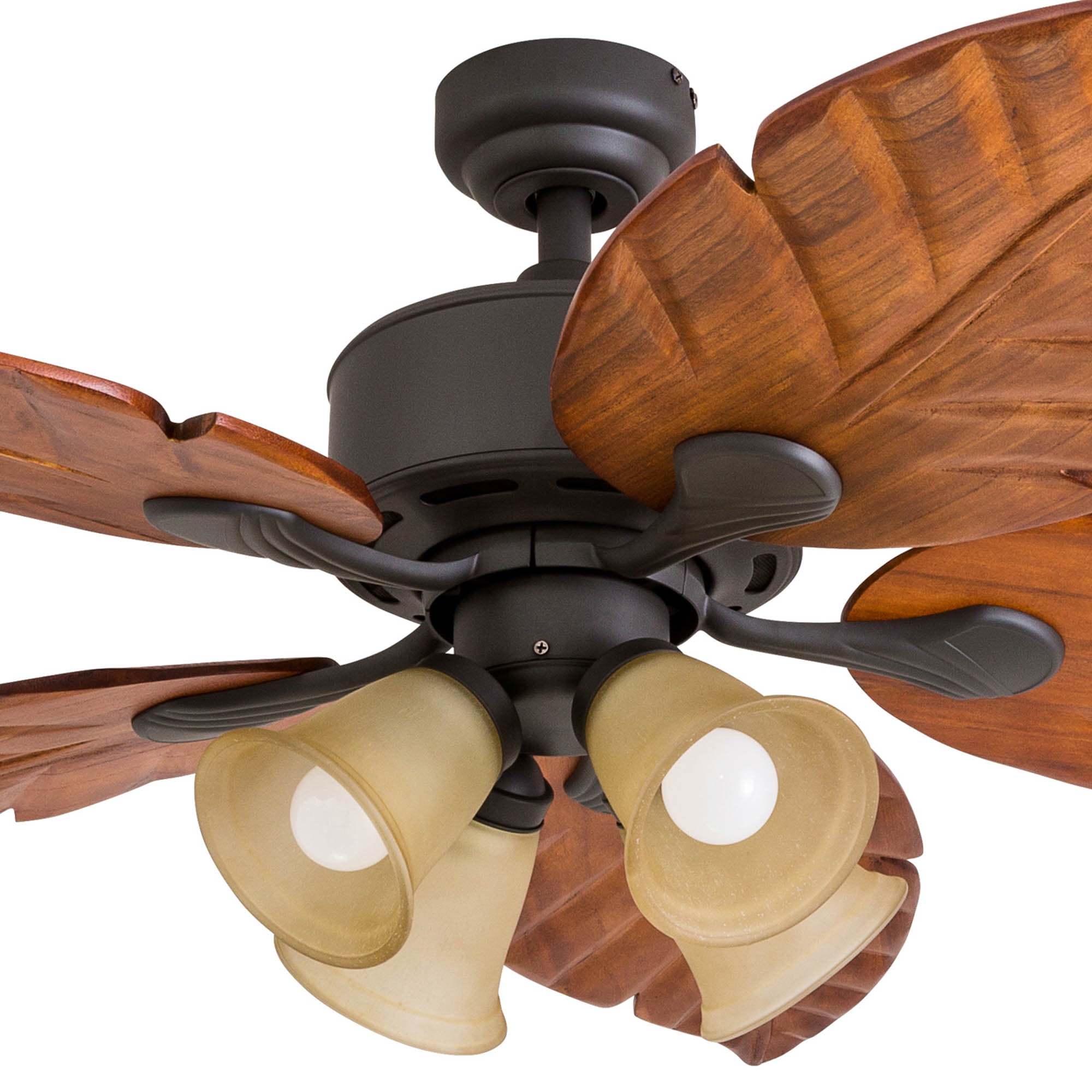 Imagine that slight tropical breeze, the sun beaming down, and not a worry in the world. The Honeywell Royal Palm is ready to take you back to that tropical vacation you never wanted to leave. With its hand-carved wooden blades and warm, bronze finish, this fan totes a very distinct, island-traditional look and subtle beauty. The Tuscan sand stained glass light fixtures hone in on the warm, tropical features and really bring to life the rich finish on the blades with a soft, luminous accent. This fan is ready to make a beautiful statement – don’t be surprised when your guests say so too!
